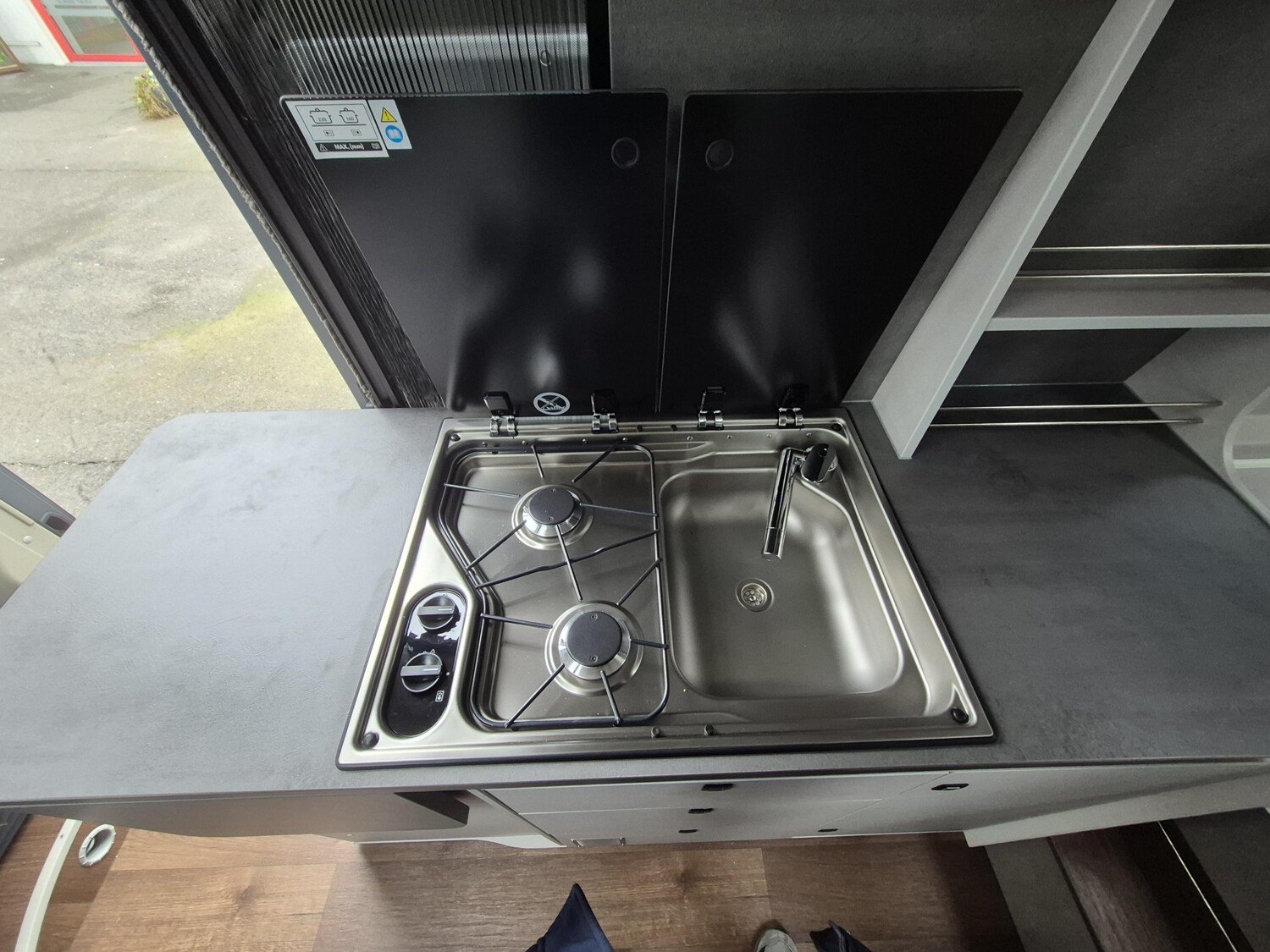 - Premium Ausstattung (Klimaautomatik, Captain Chair drehbar, Induktives Laden, Radlaufverbreiterungen, Alufelgen, Lederlenkrad, Radiovorbereitung inkl. Lautsprecher, DAB-Antenne, Cup-Holder, Digitales Cockpit, Nebelscheinwerfer, Techno Trim Amaturenbrett, Lenkrad mit Bedienelementen, Spiegel el. verstell- und beheizbar, USB Ladeanschluss, Verdunkelung Fahrerhaus, Trittstufe, Verstärkte Lichtmaschine, Beifahrerairbag, 90l Tank, Ladebooster, Seitenwindassistent, Allwetterreifen, Traction+, Standheizung Diesel (Aufbau), Paket Safety (Notbremsassistent, Aufmerksamkeitsassistent, Verkehrsschilderkennung, Intelligenter Geschwindigkeitsassistent, Adaptive Geschwindigkeitsregelanlage), Paket Vision ( 360 Grad Parksensoren, Toter Winkel Assistent und hintere Querverkehrserkennung, 10" Infotainment mit Navigation, Touchscreen, DAB, Bluetooth, Elektrisch anklappbare Außenspiegel, Digitaler Außenspiegel, Rückfahrkamera, Regen- und Lichtsensor, Spurhalteassistent und Spurhaltezentrierung, ESC/ABS/Hill-Decent-Control))