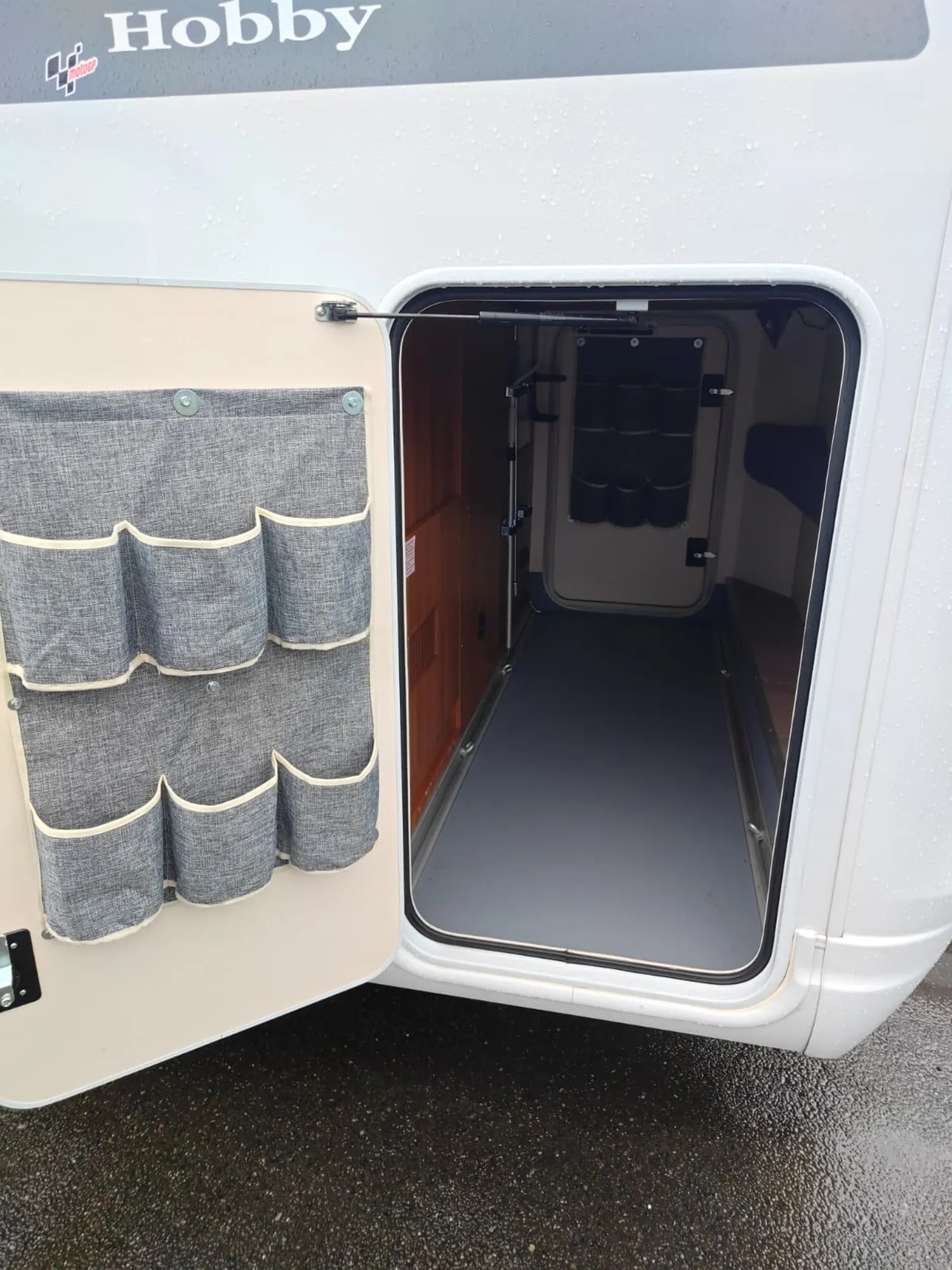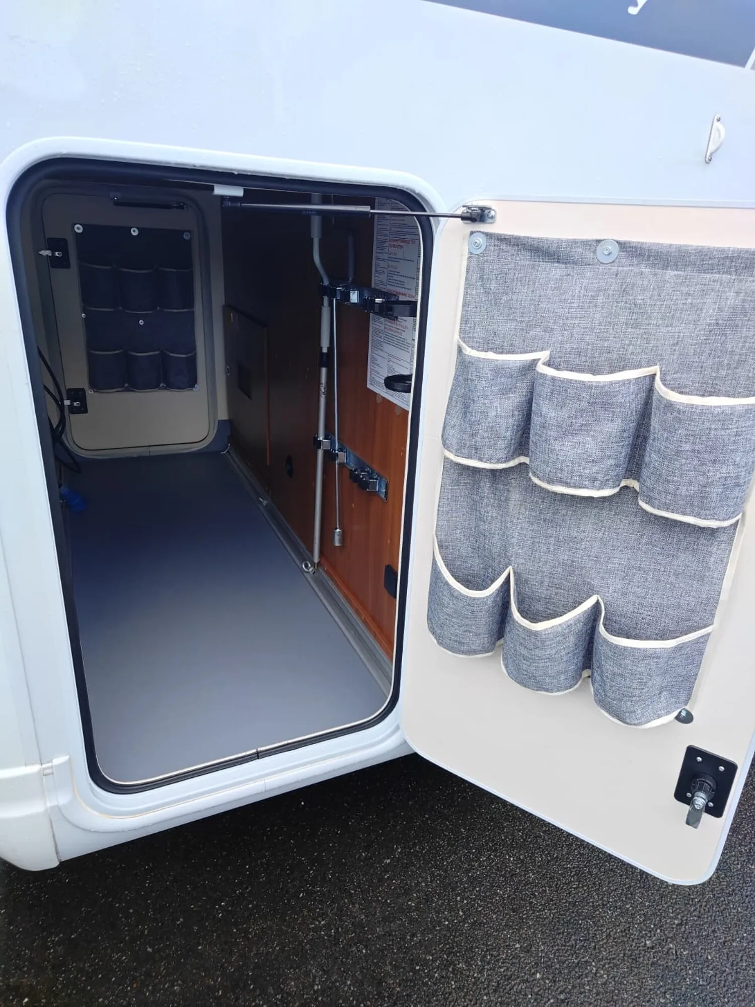 - Aufbautür mit einem Fenster inkl. Verdunkelungsplissee, einem Mülleimer, einer Fliegenschutztür und einer elektrischen Trittstufe