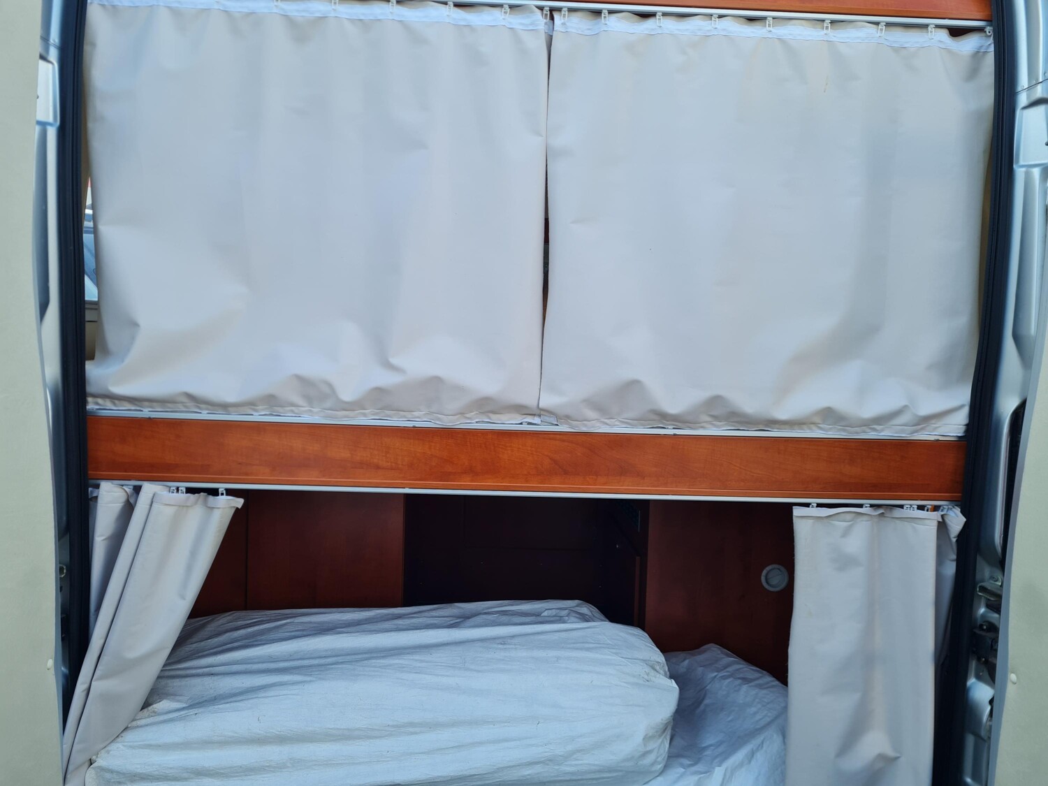 - Doppelbett mit Stauraum darunter und Dachstauschrenken
