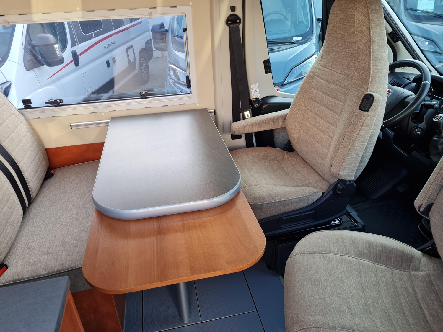 - Seitensitzgruppe mit einem verstellbaren Tisch inkl. drehbarer Tischerweiterung umbaubar zur Liegefläche