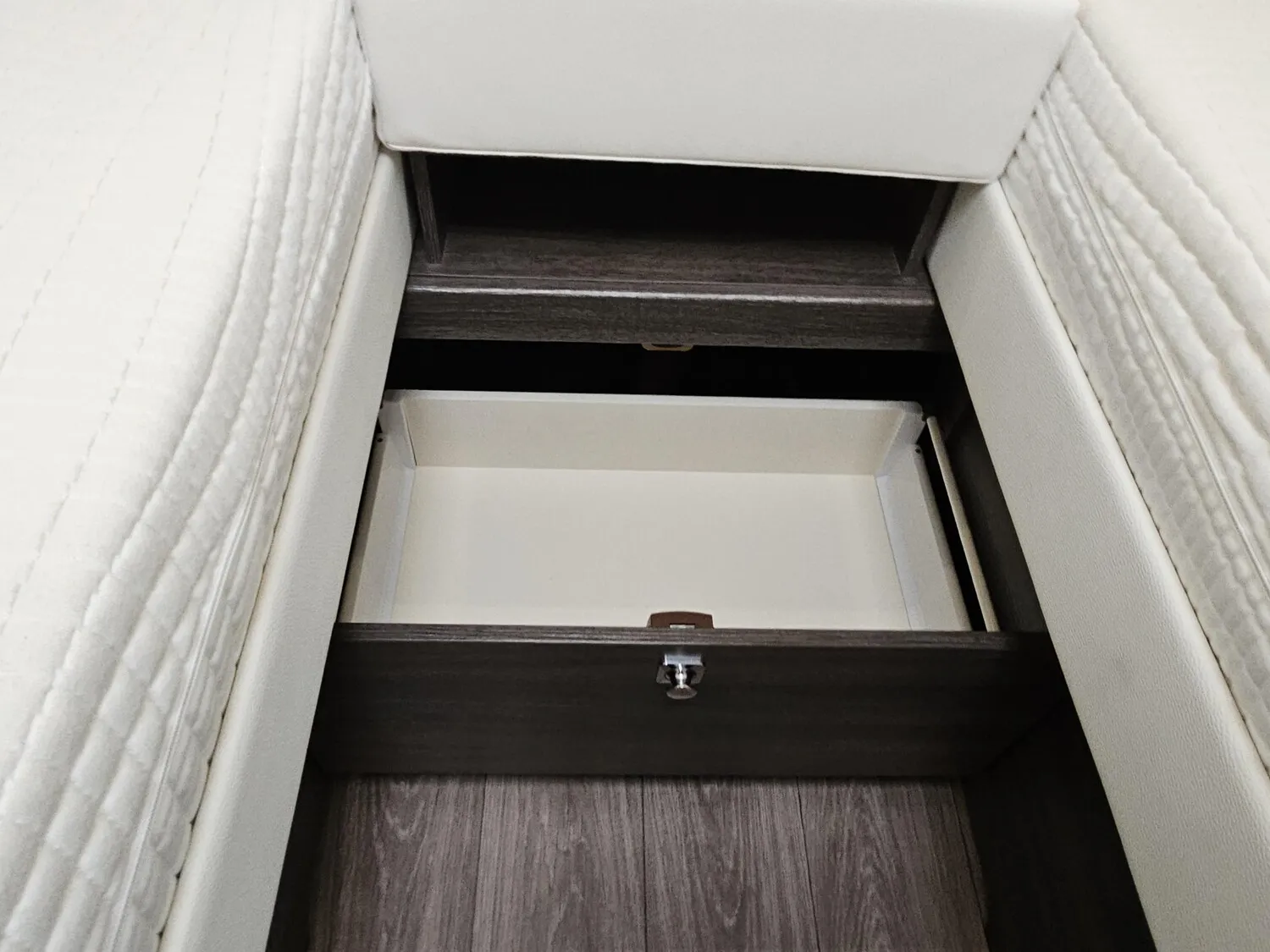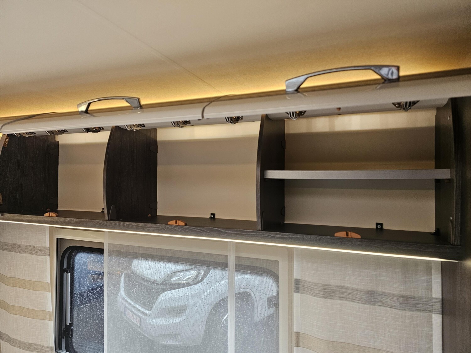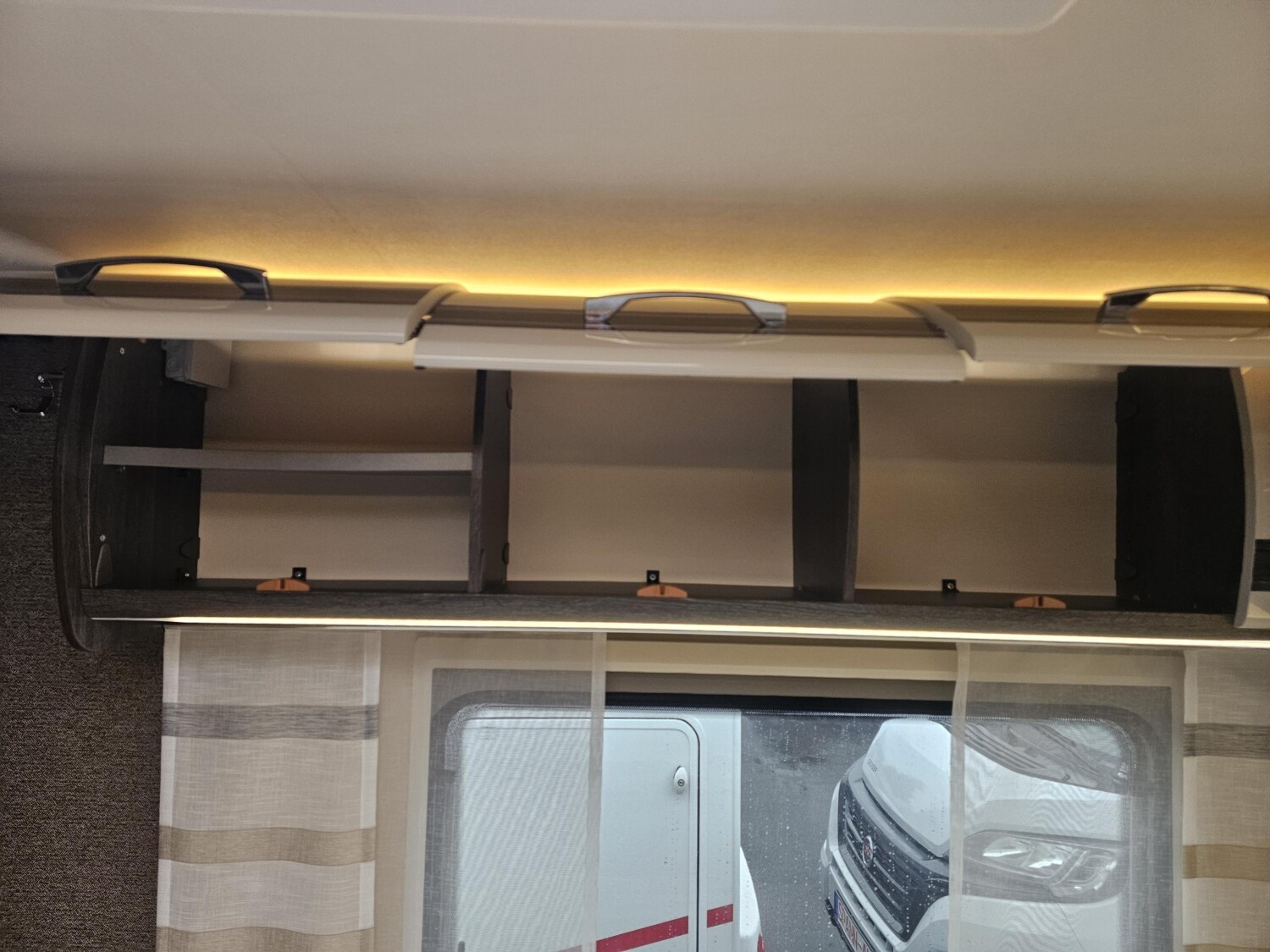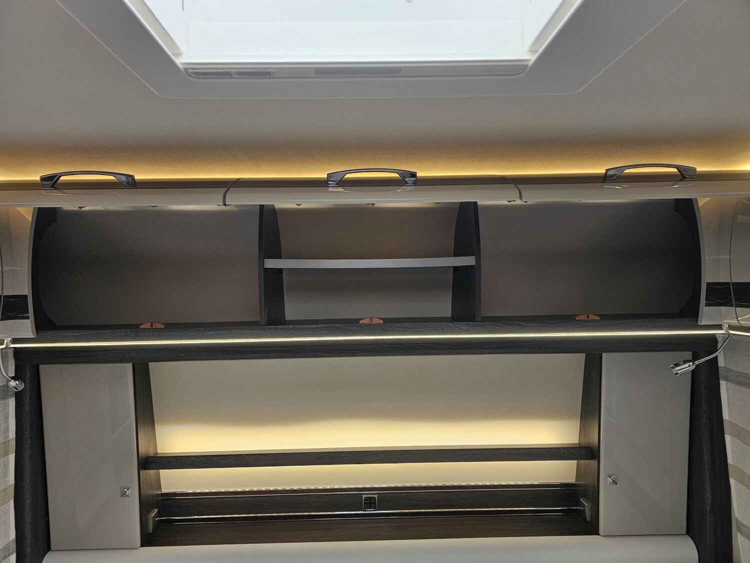 - Einzelbetten im Heck mit einer Trennschiebewand zum Wohnbereich