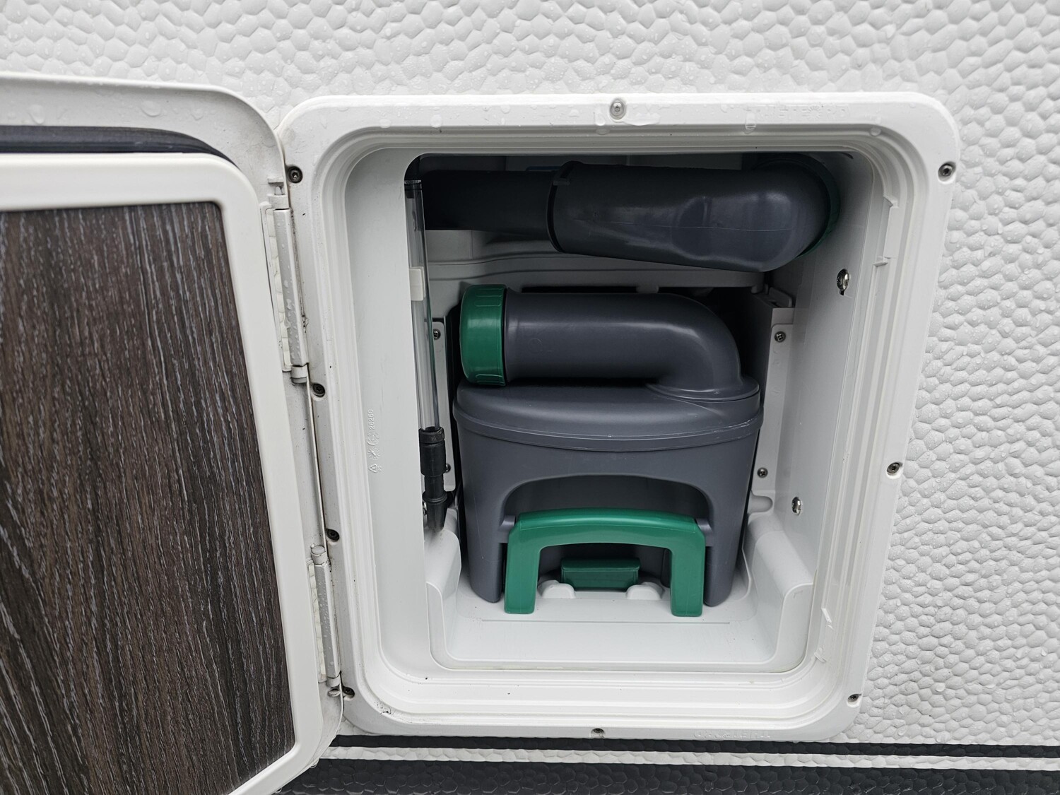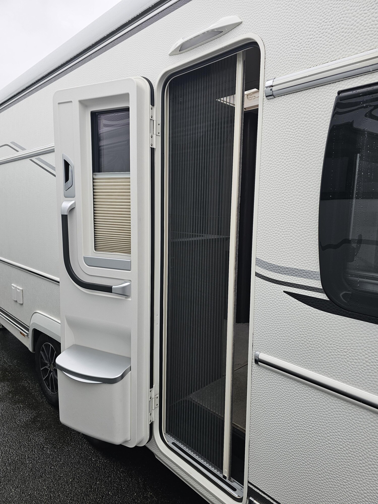 - Eingangstür mit einem Fliegenschutz, einem Abfallbehälter und einem Fenster inkl. Verdunkelung