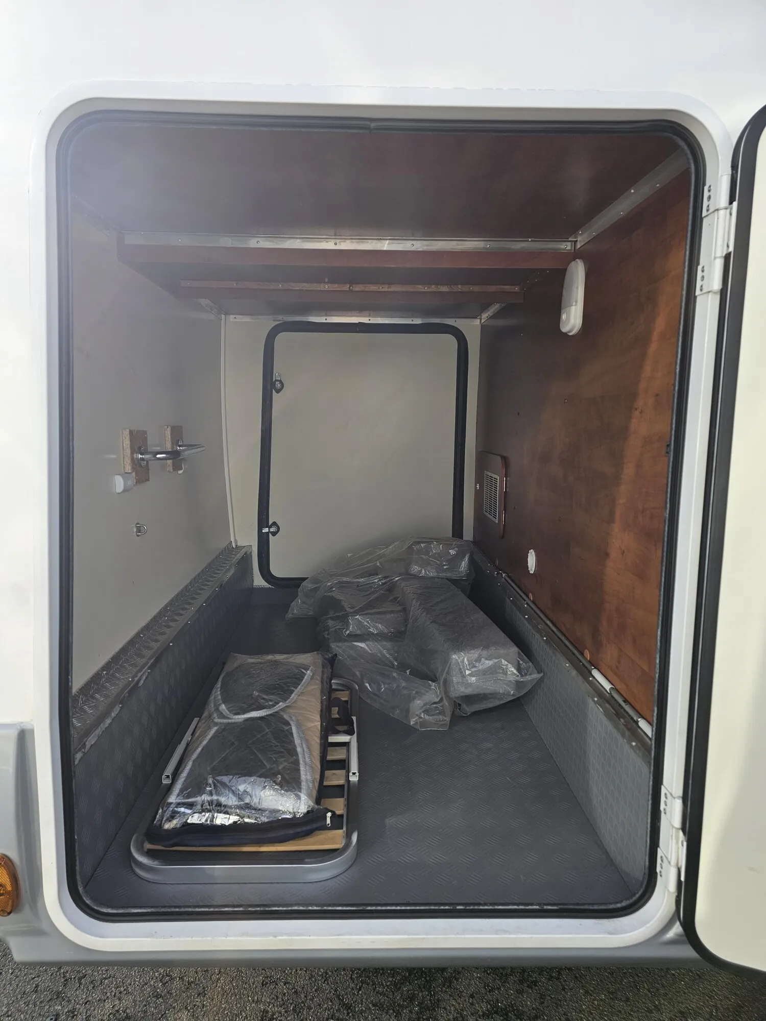 - Aufbautür mit einem Fenster, Abfallbehälter, Fliegenschutz und tiefen Einstieg