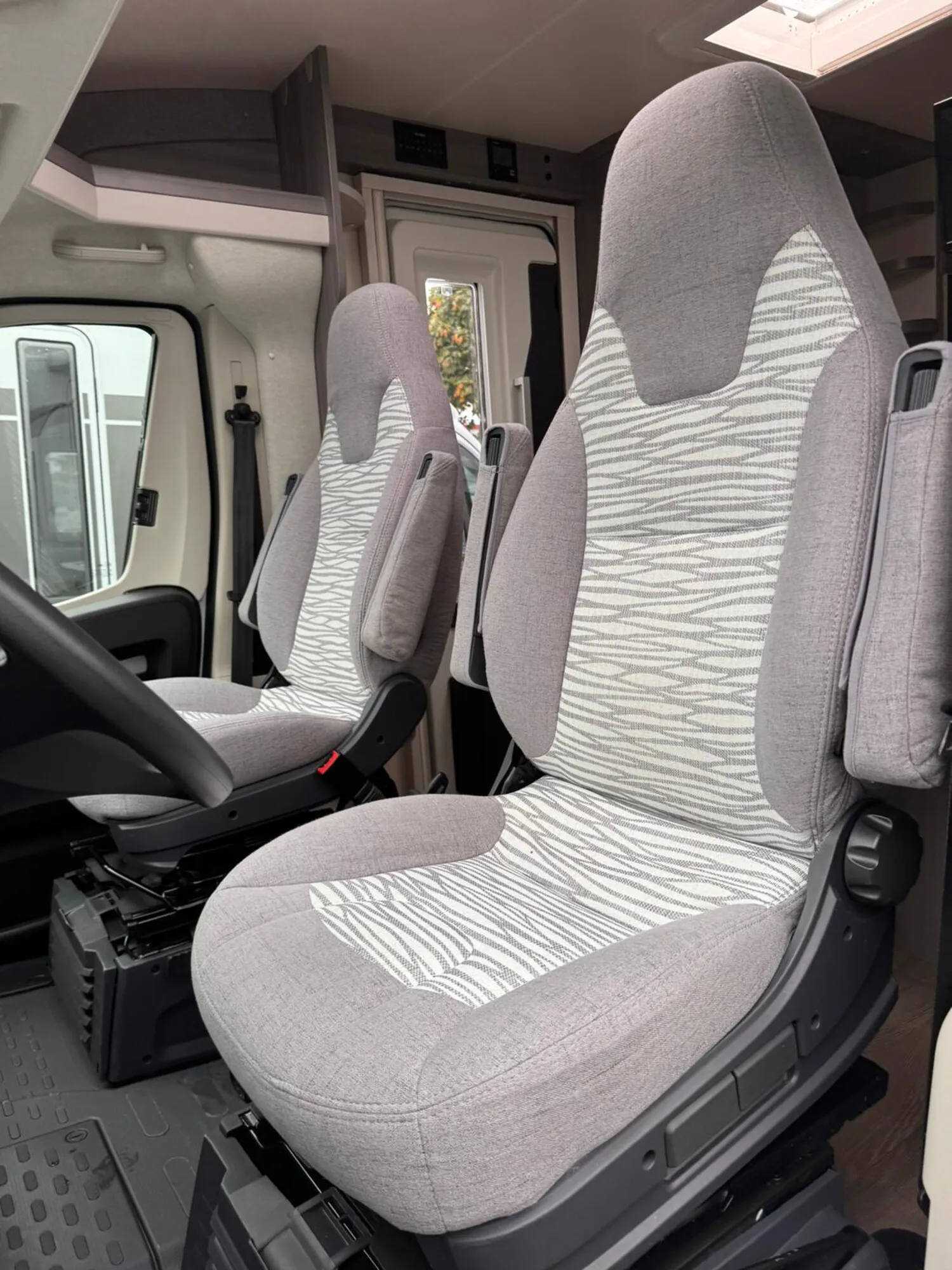 - Drehbare Pilotensitze mit Wohnraumstoff bezogen