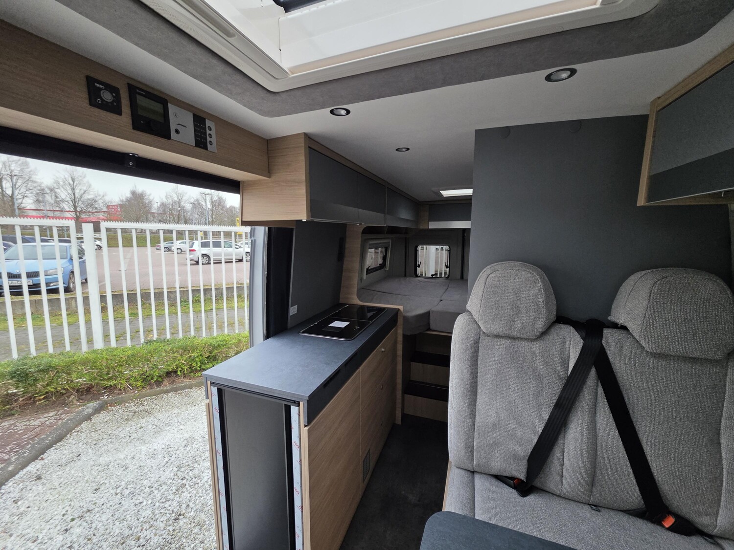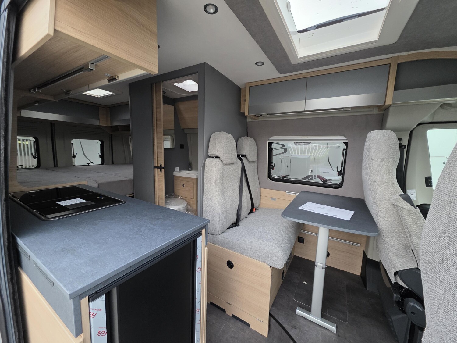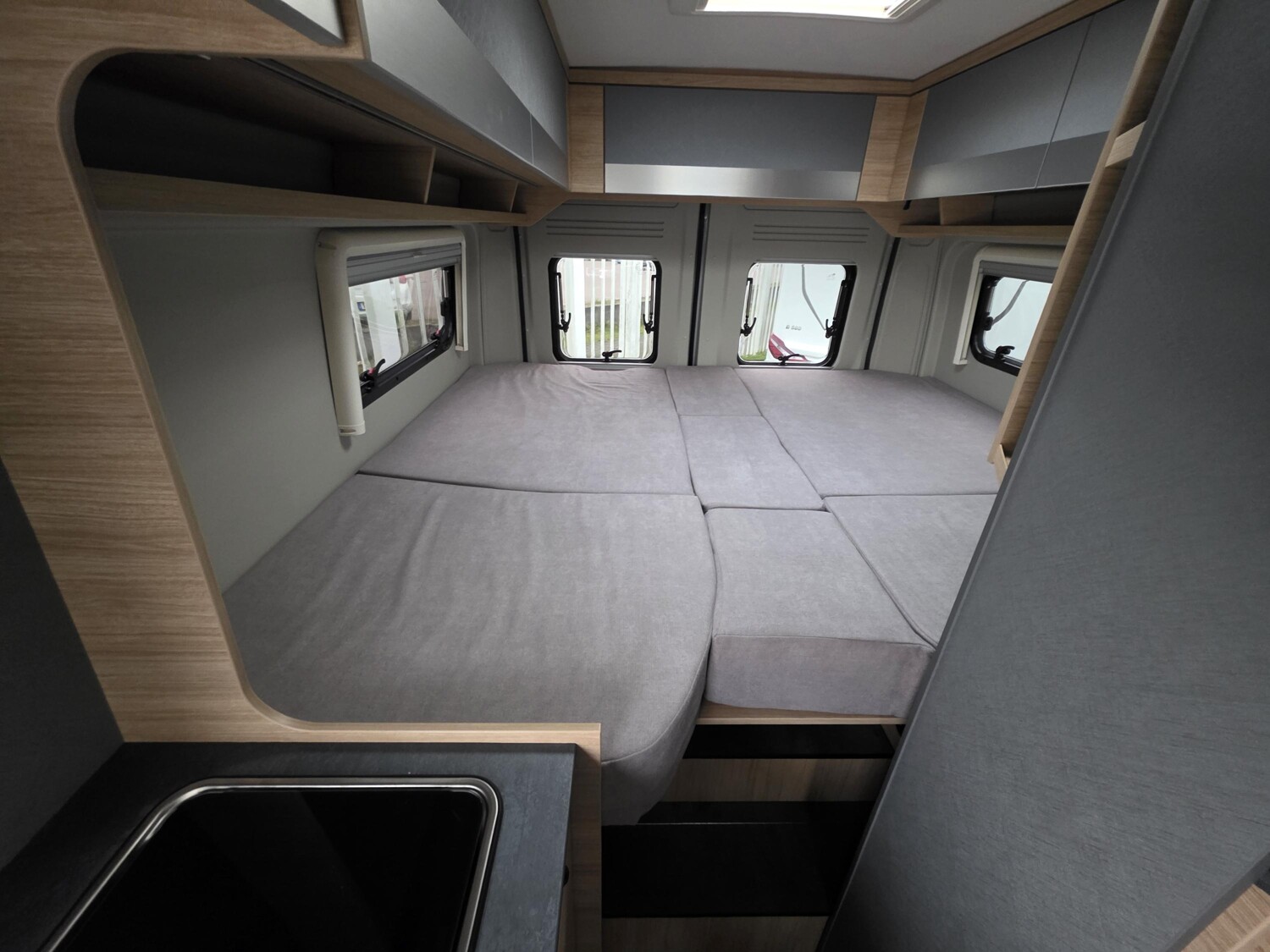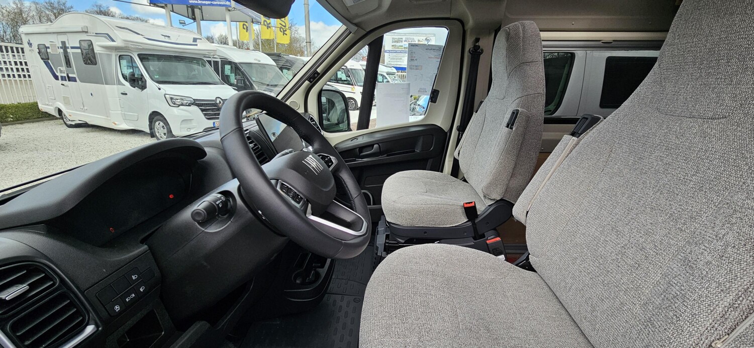- Plus-Ausstattung (Klimaautomatik, Captain Chair drehbar, Induktives Laden, Radlaufverbreiterungen, Alufelgen, Lederlenkrad, Radiovorbereitung inkl. Lautsprecher, DAB-Antenne, Cup-Holder, Digitales Cockpit, Nebelscheinwerfer, Techno Trim Amaturenbrett, Lenkrad mit Bedienelementen, Spiegel el. verstell- und beheizbar, USB Ladeanschluss, Verdunkelung Fahrerhaus, Trittstufe, Verstärkte Lichtmaschine, Beifahrerairbag, 90l Tank, Sonderpolster Silver, Ladebooster, Seitenwindassistent, Allwetterreifen, Traction+, Toilettenfenster)
