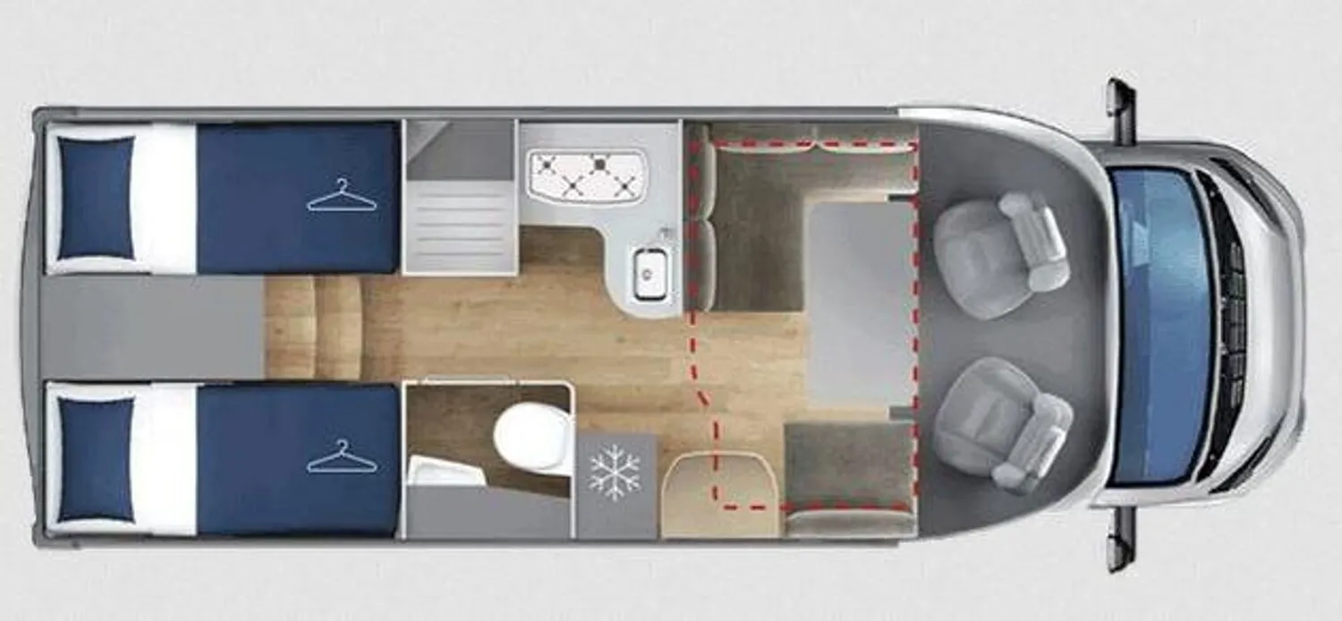 - Einzelbetten im Heck inkl. Staufächer unter den Betten und Bettverbreiterung