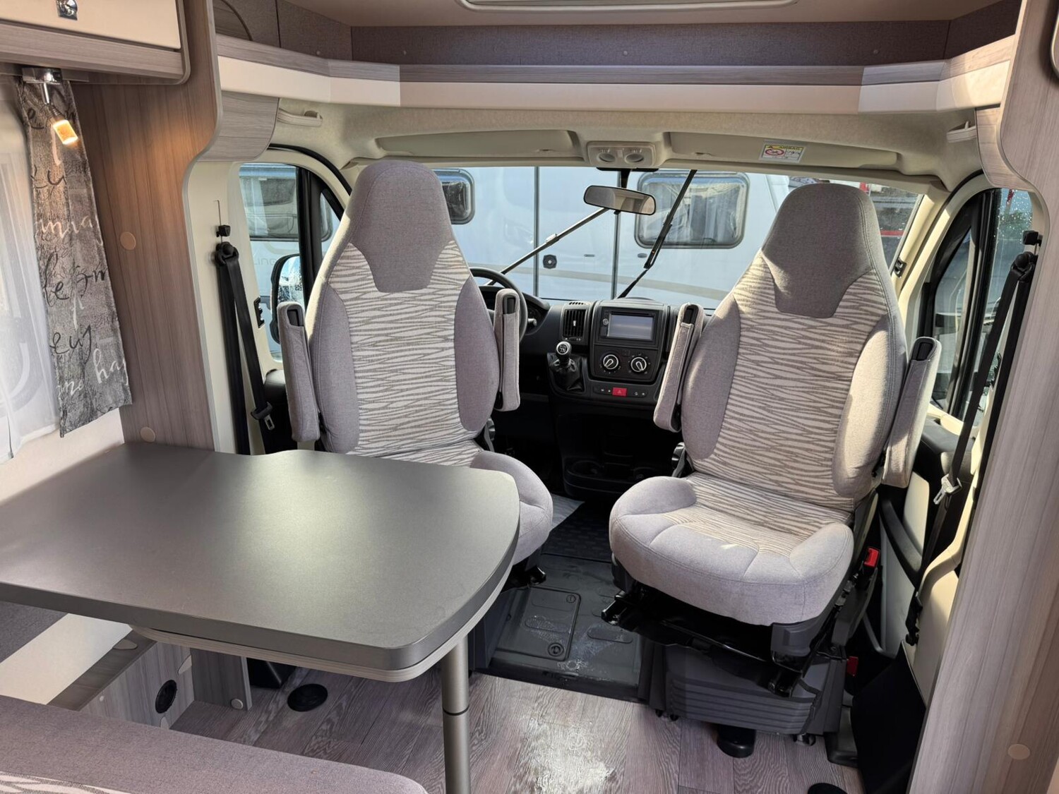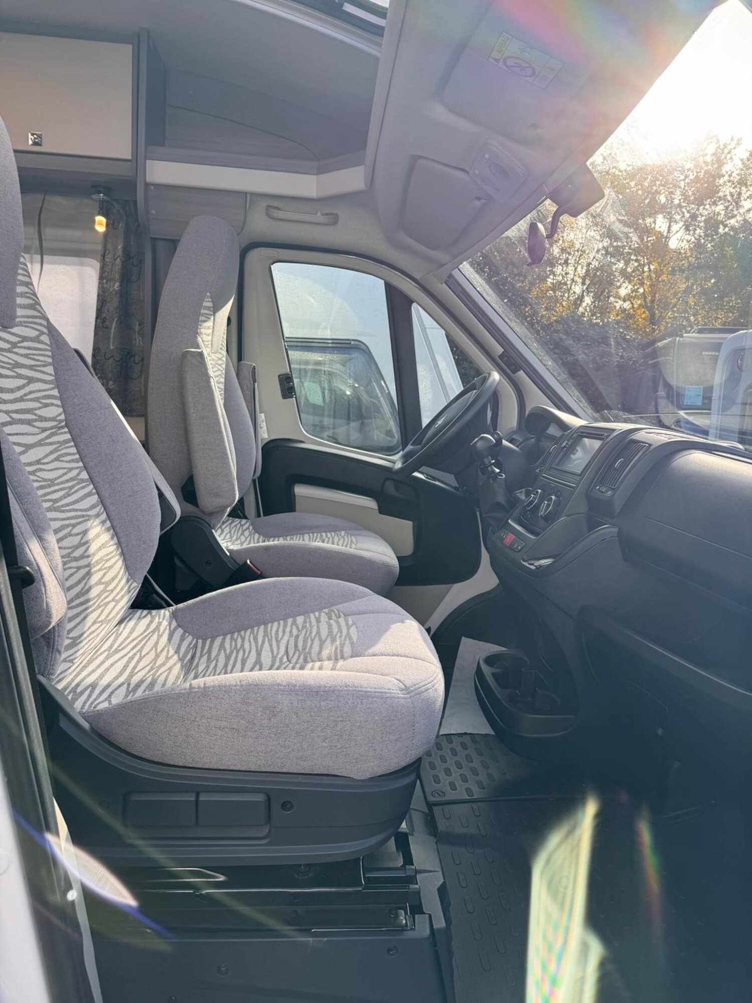- Drehbare Pilotensitze mit Wohnraumstoff bezogen