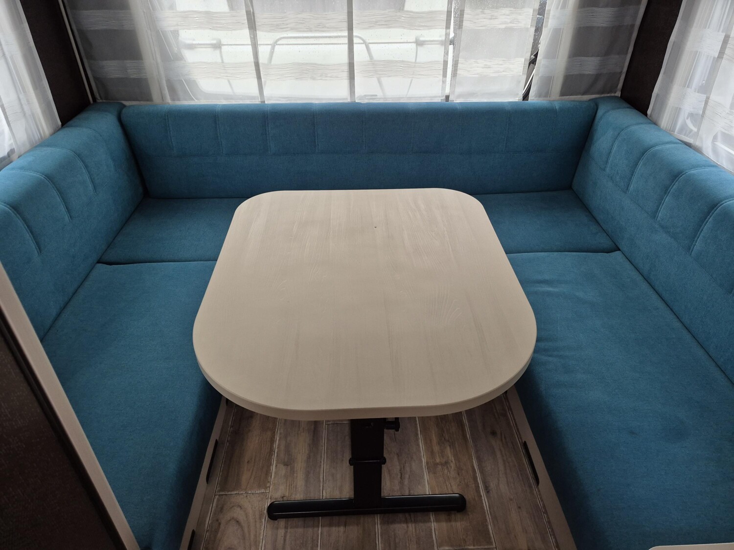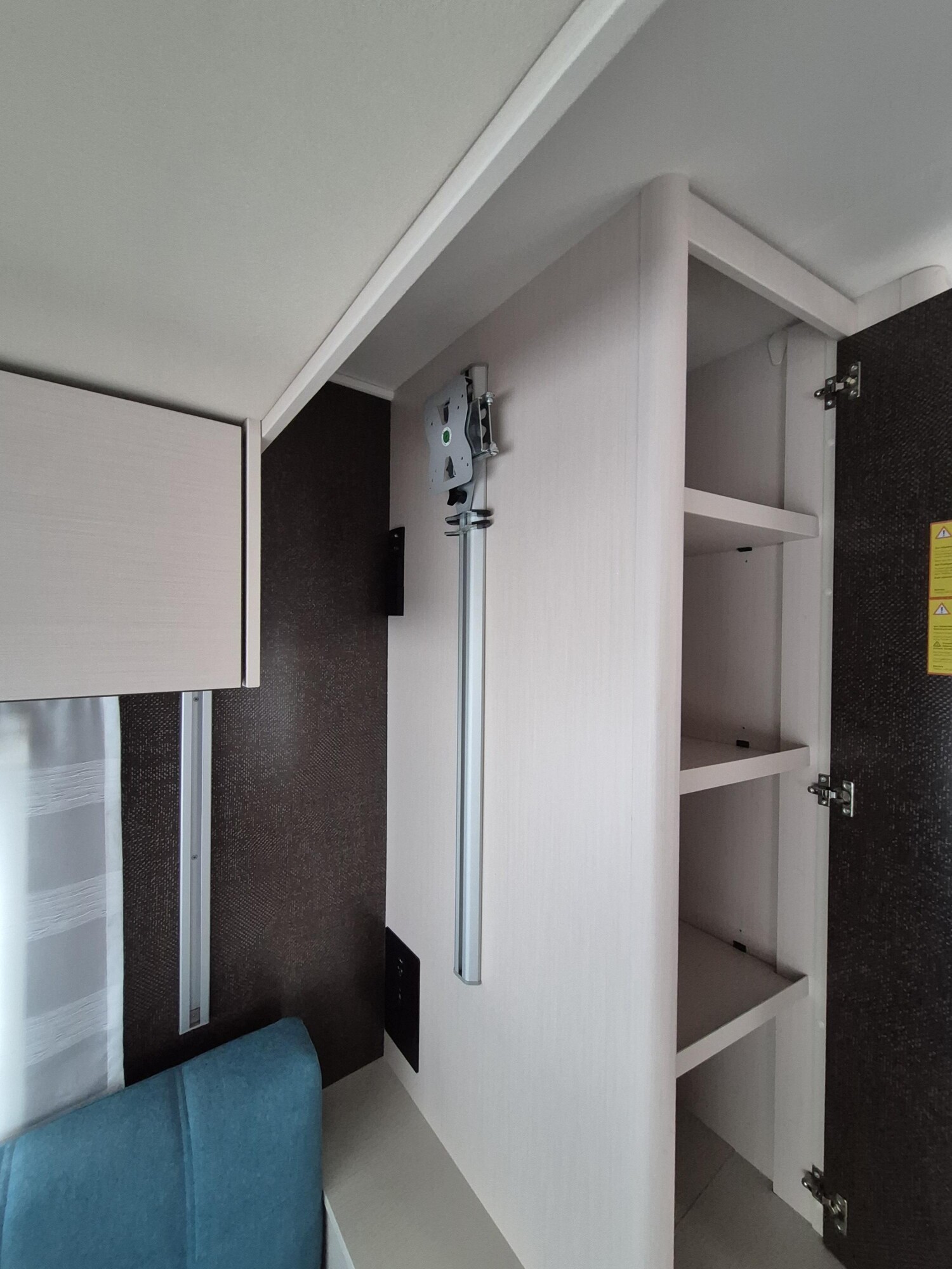 - Rundsitzgruppe mit einem höhenverstellbaren Tisch, TV vorbereitung sowie Stauschränken und Staufächern