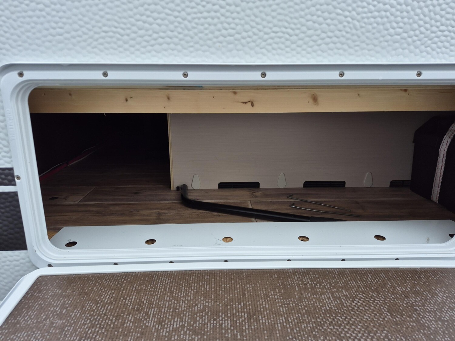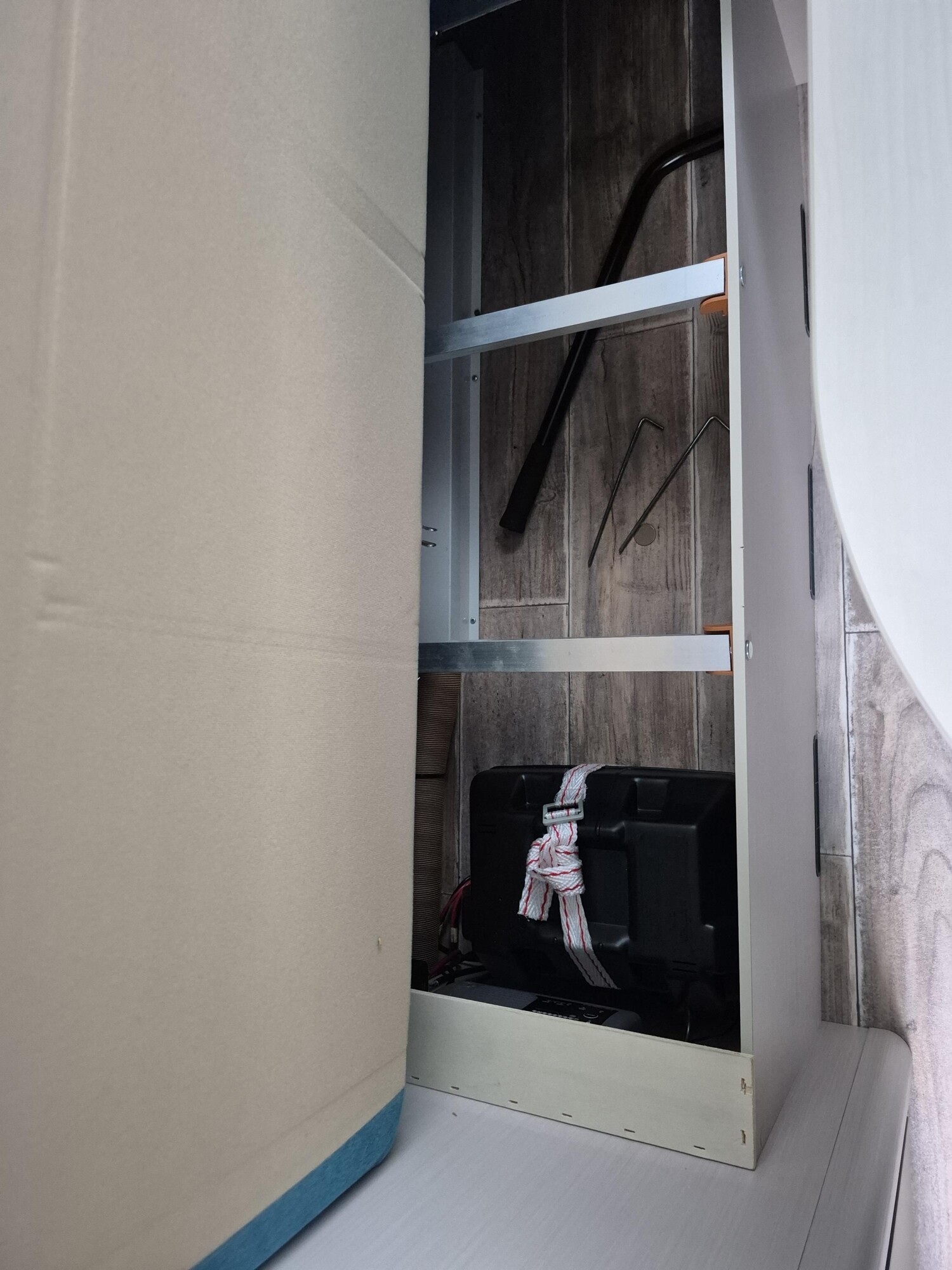 - Nasszelle mit einer Cassetentoilette, einem Waschbecken und einem Stauschrank
