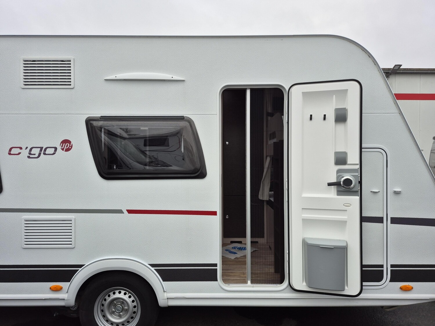 - Eingangstür mit einem Mülleimer und einem Fliegengitter