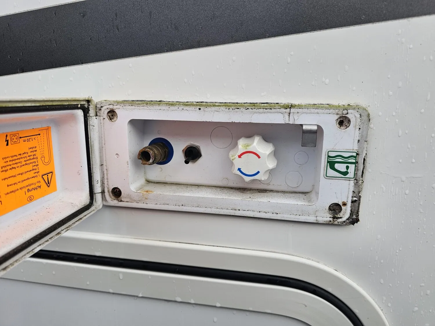 sep. Dusche mit einem Holzrost, seperate Thetford Toilette, Waschbecken, Seitenfenster, Spiegel und Stauschränke
