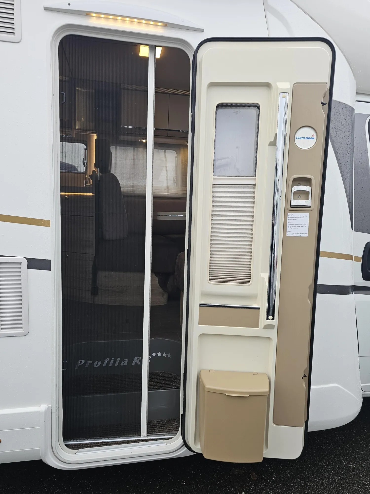 Aufbautür mit einem Fenster, Abfalleimer und Fliegenschutz