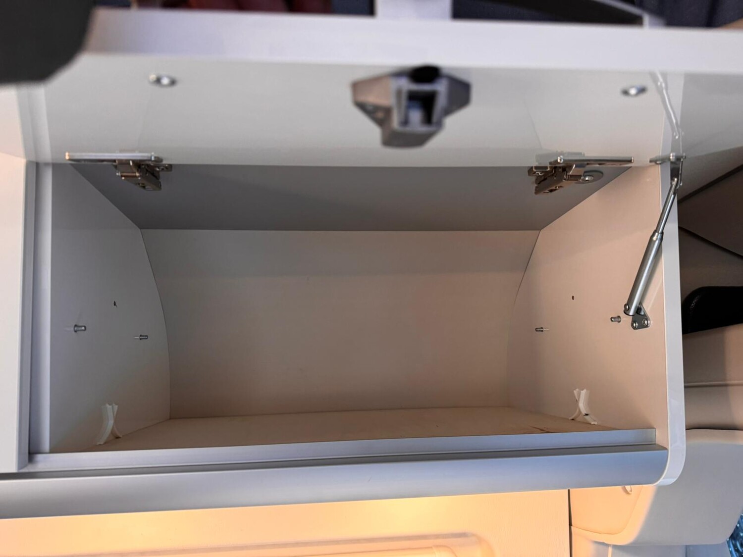 - Küchenzeile mit einem 2-Flammkocher und einer Spüle inkl. Abdeckung, einem Kompressorkühlschrank inkl. kleinem Eisfach, einer zusätzlichen Zapfstelle neben dem Waschbecken 2x 20 l, einer Utensilientasche, USB-Anschluss und einer Steckdose, Stauschränken und Schubladen
