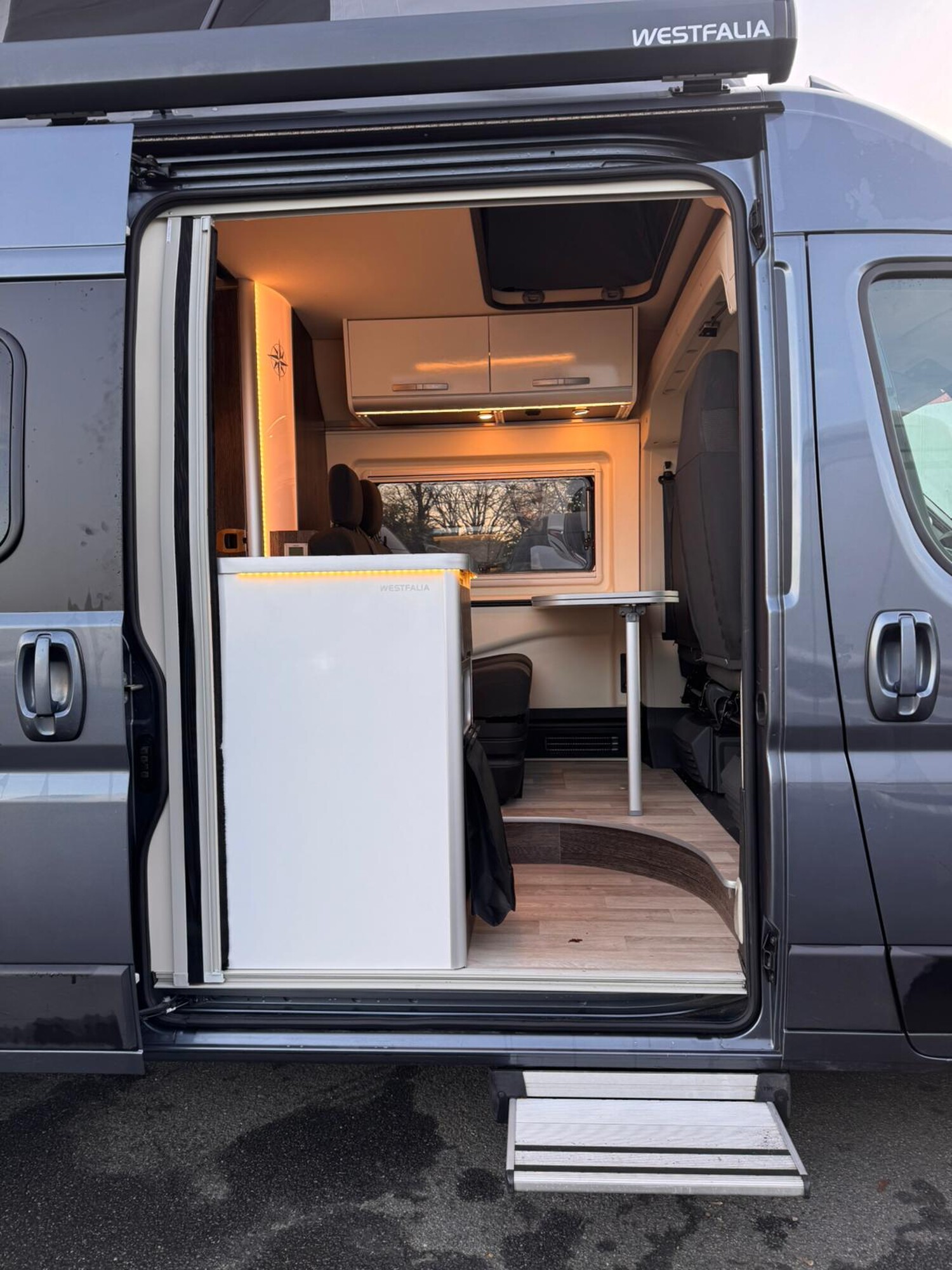 - Aufbautür mit einer elektrischen Trittstufe und einer Fliegenschutztür