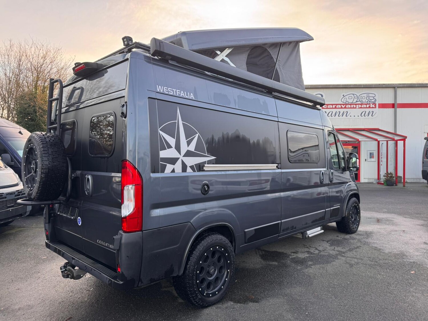 - TV inkl. drehbarer Halterung im Heckbereich des Fahrzeugs