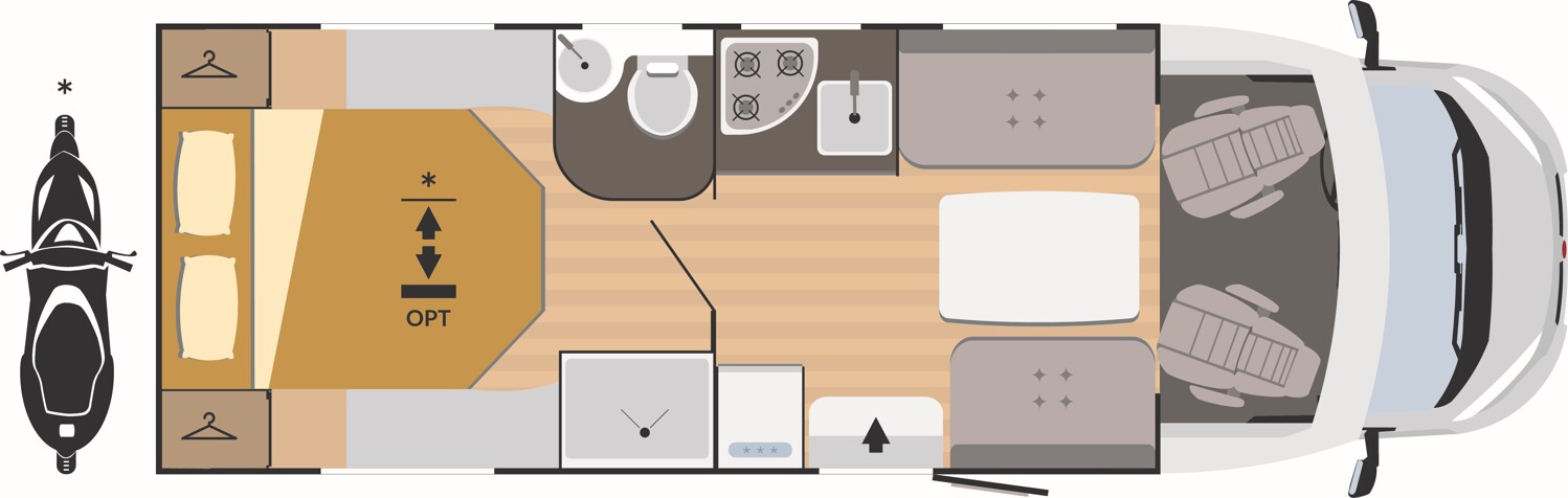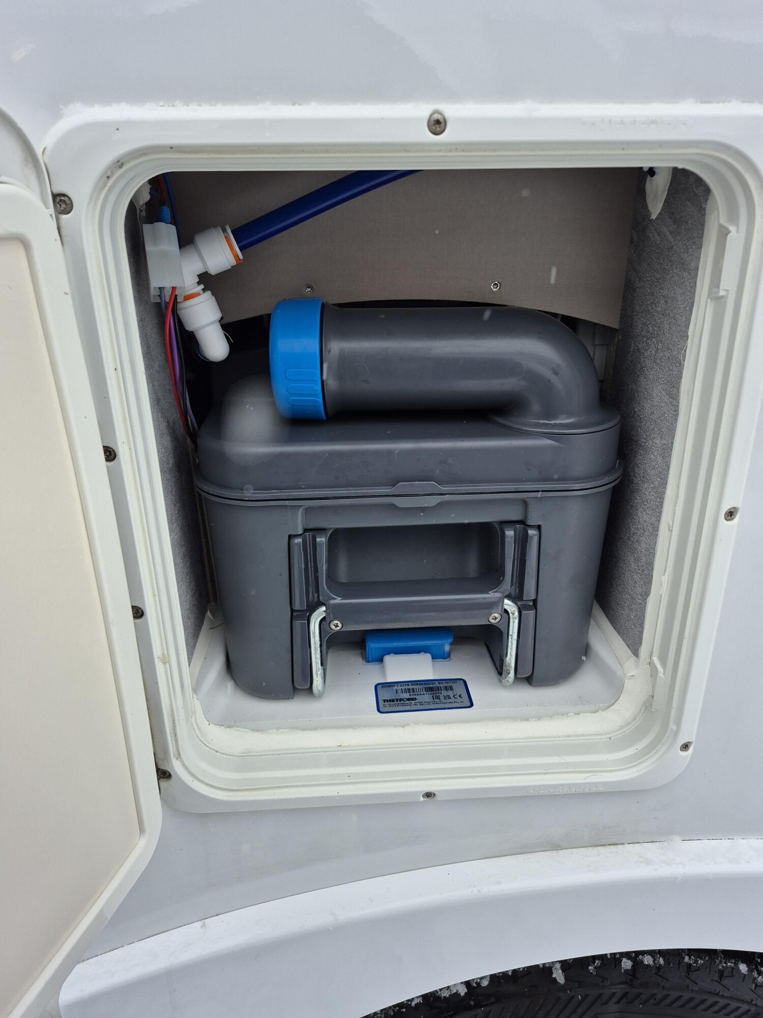 - Nasszelle mit einer Thetford Toillette, einem Waschbecken, einem kleinen Staufach und einer seperaten Dusche