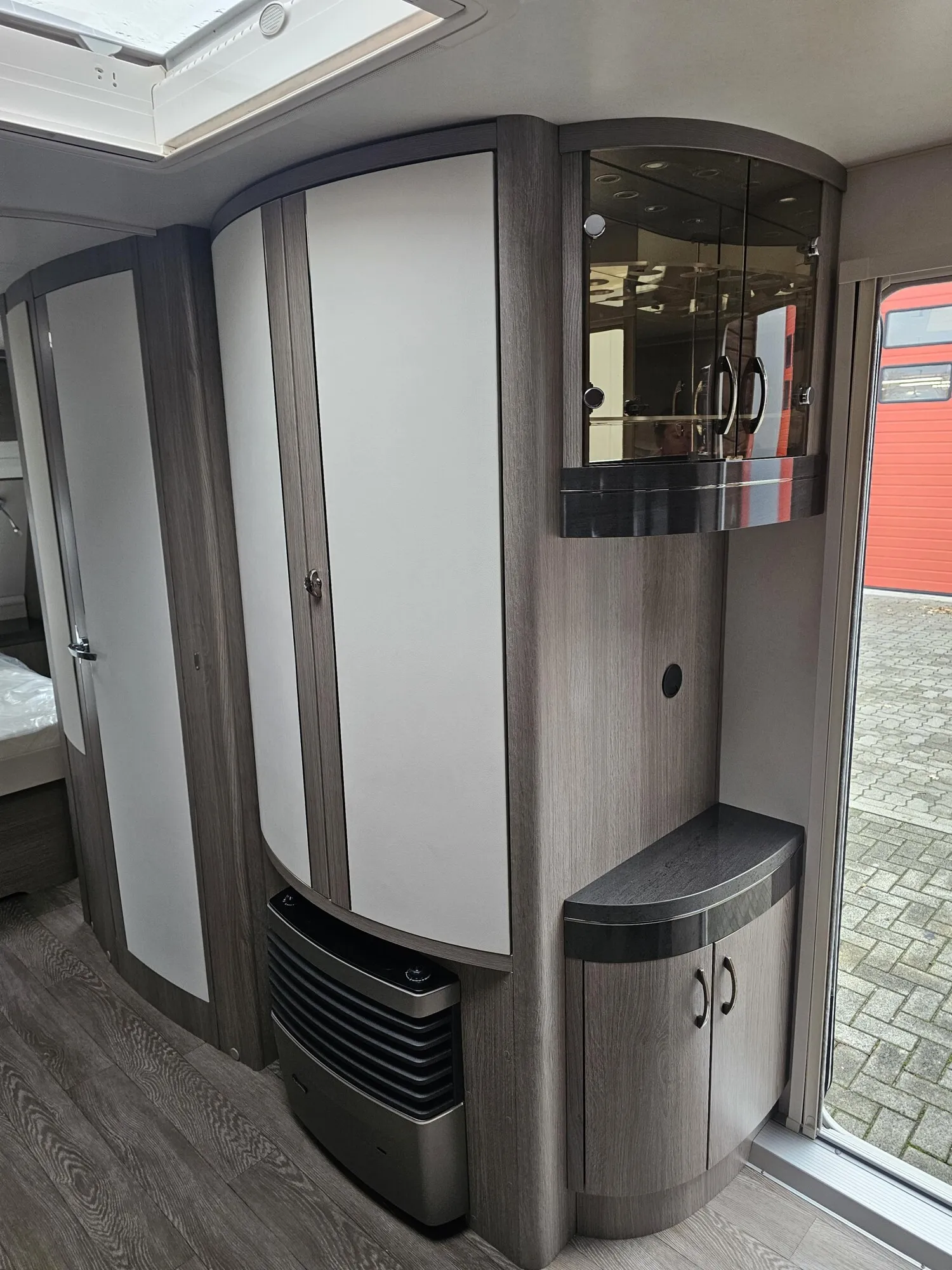 - Queensbett um Bug mit Leselampen, Staufächern und Dachstauschränken