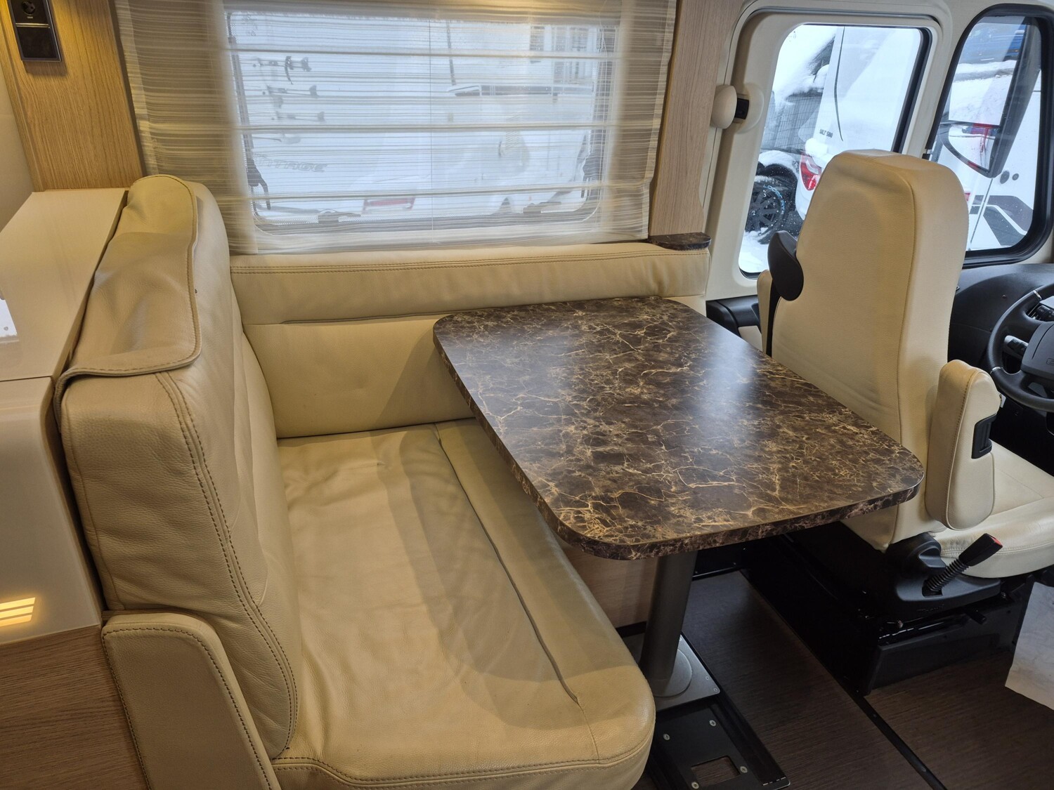 - L-Sitzgruppe mit einem zusätzlichen Sitz, einem verstellbaren Tisch, Verstauschränken