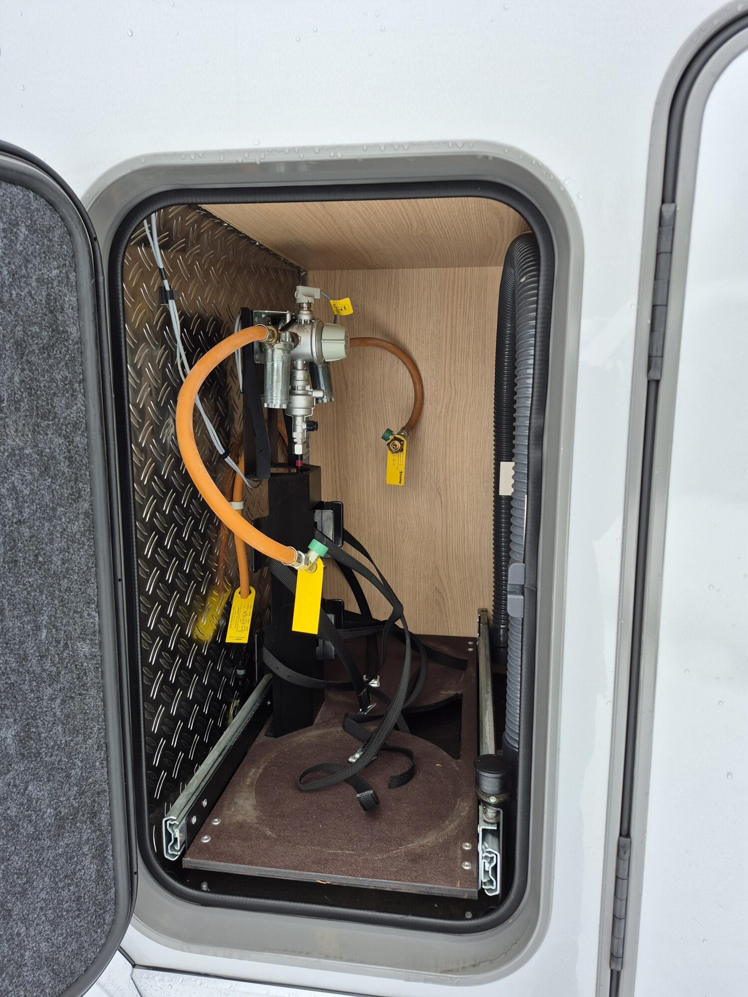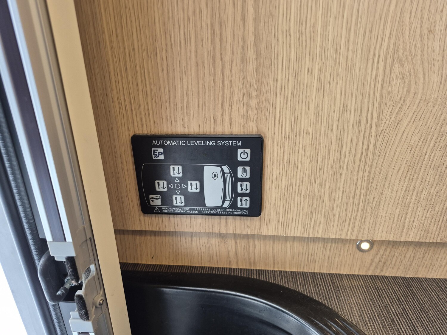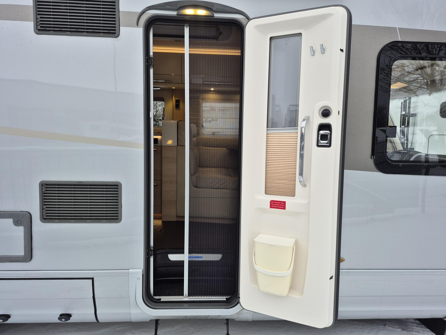 - Aufbautür mit elektrischer Trittstufe, einem Abfalleimer, einem Fliegenschutzgitter und einem Fensterplissee