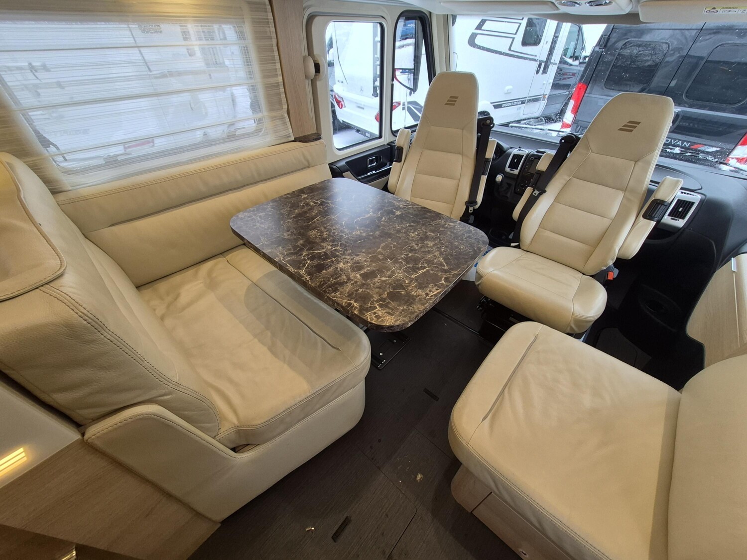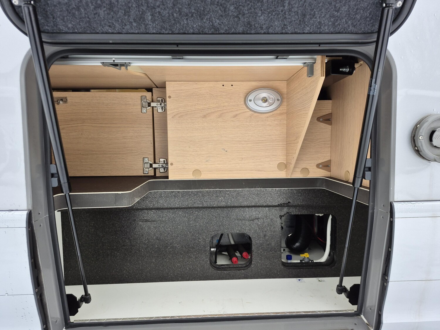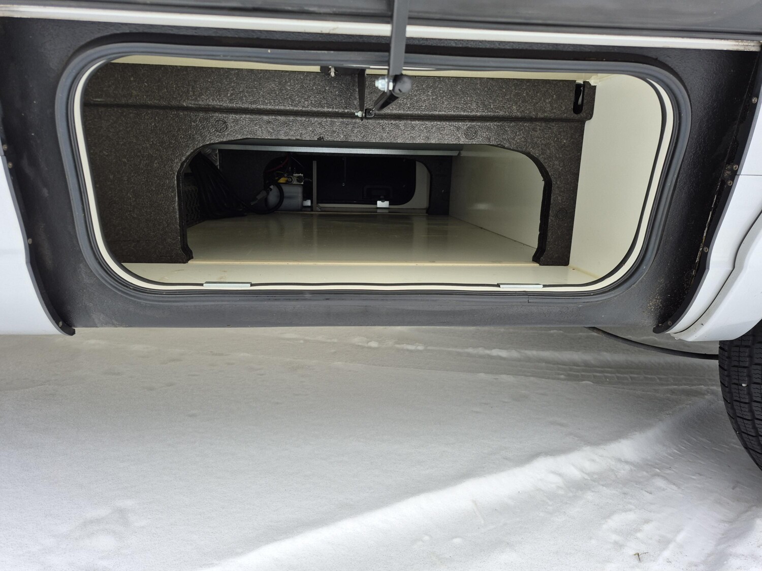 - Aufbautür mit elektrischer Trittstufe, einem Abfalleimer, einem Fliegenschutzgitter und einem Fensterplissee