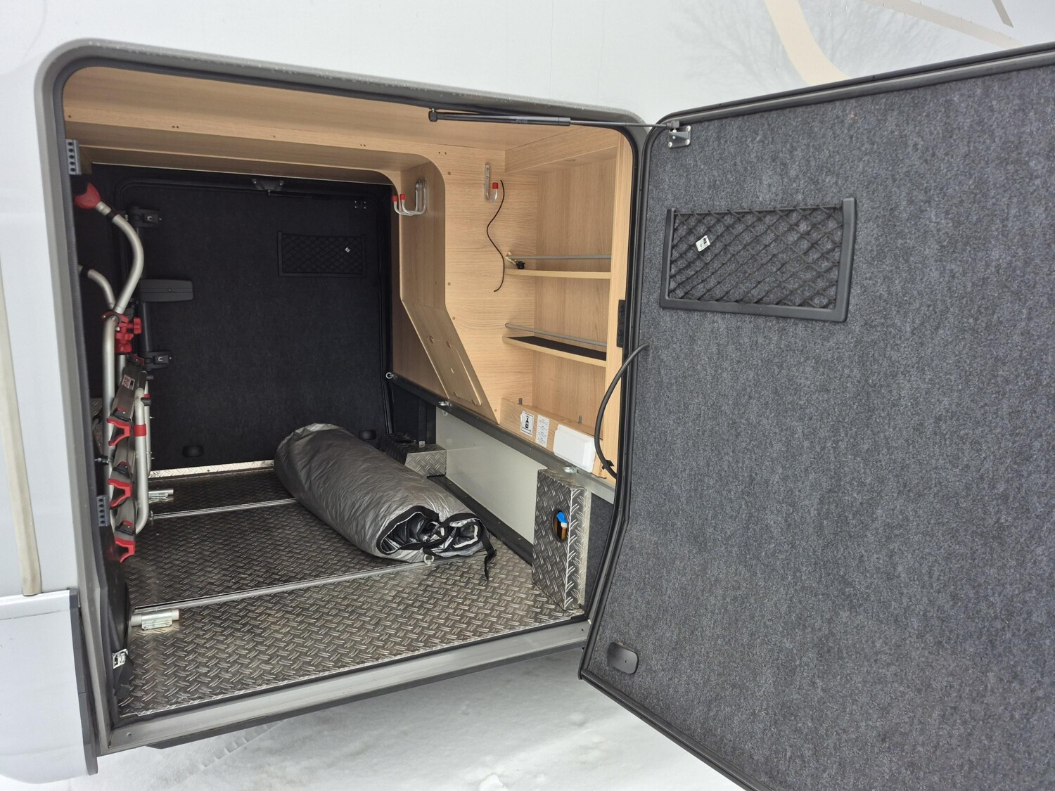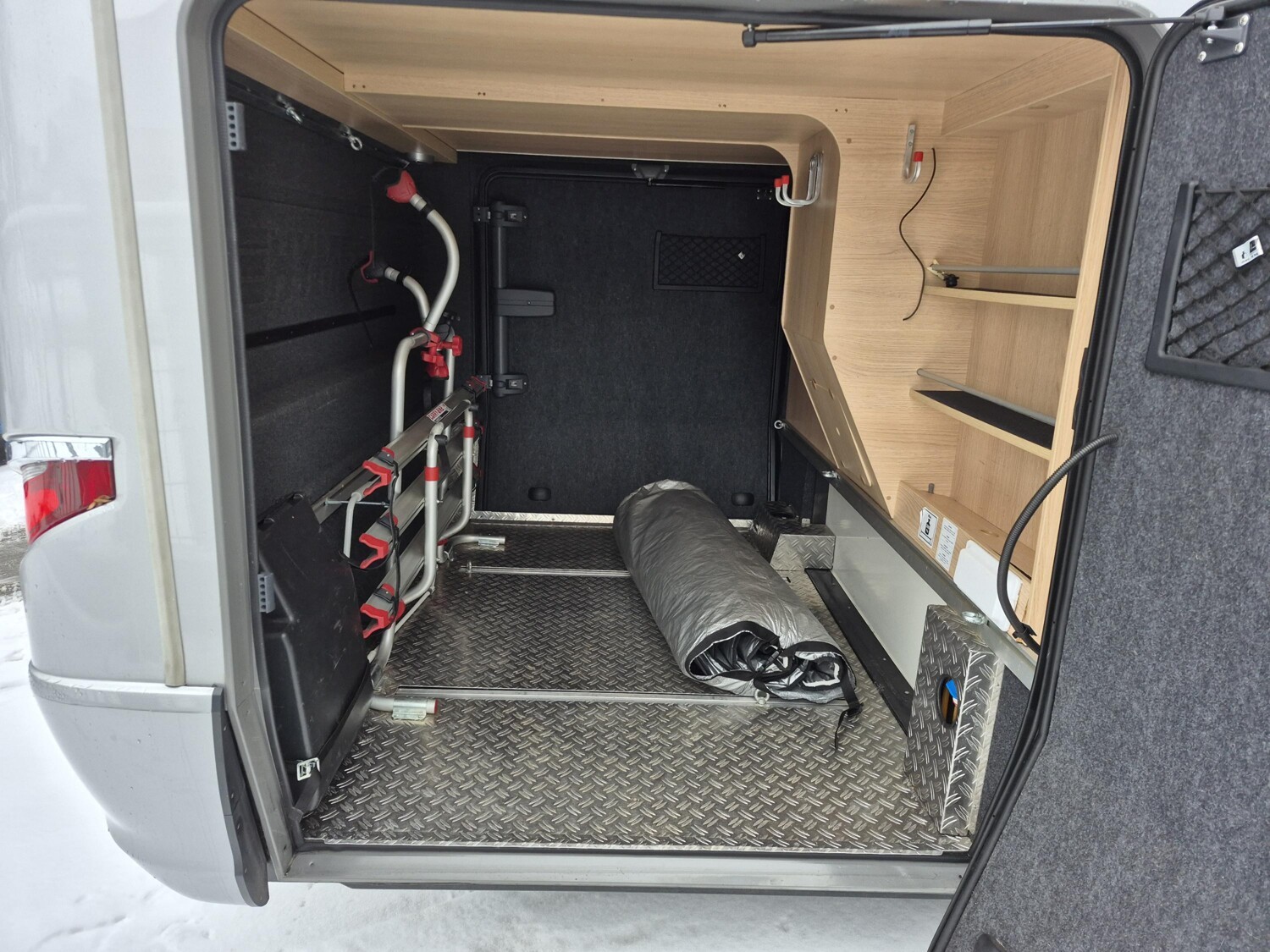 - Große Heckgarage mit integriertem Fahrradträger für 3 Räder