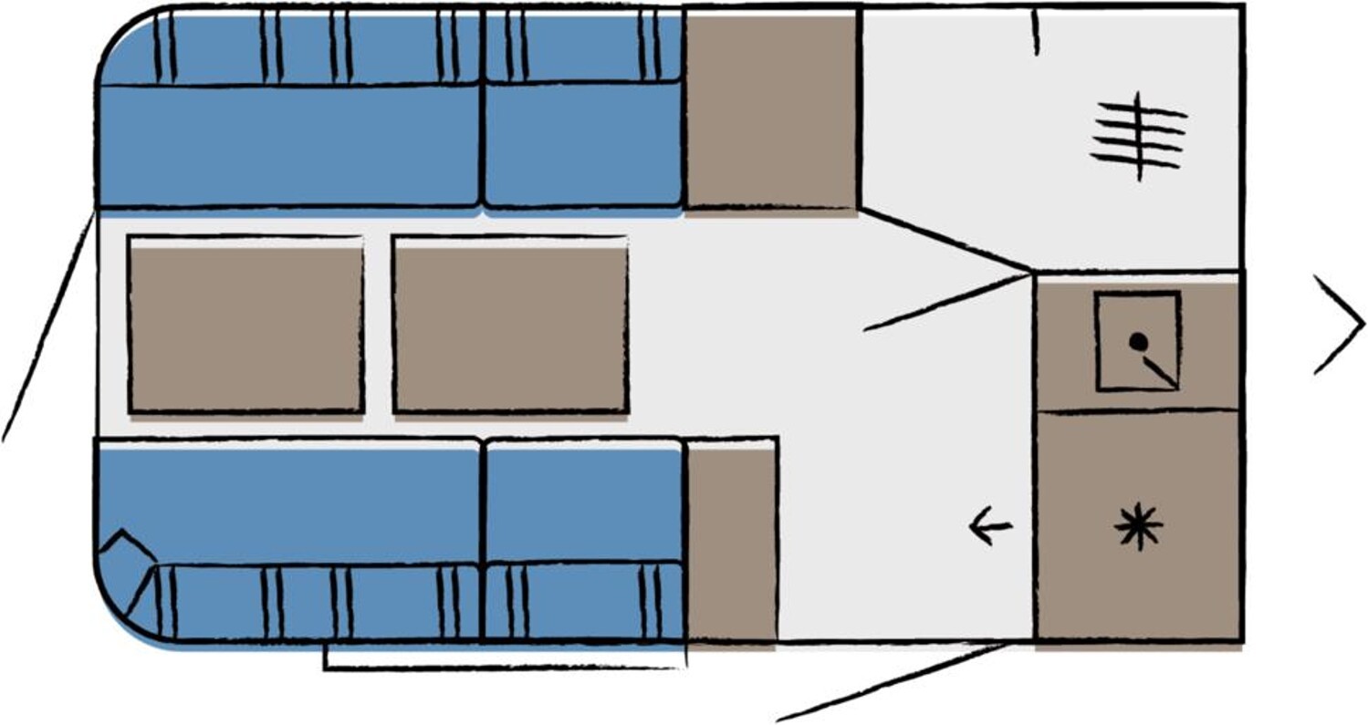 - Zweiteilige Tür im Heck mit Bullauge
