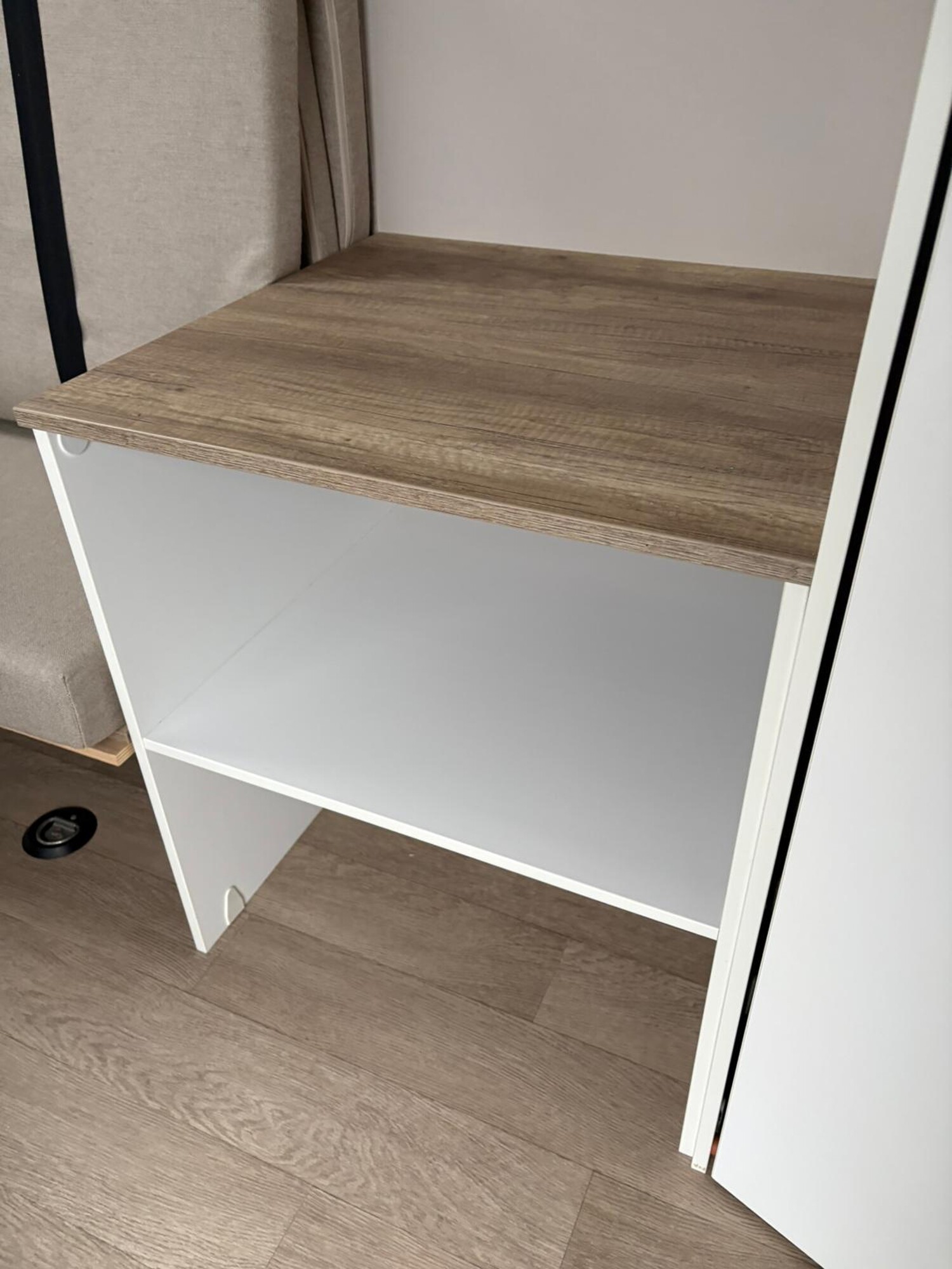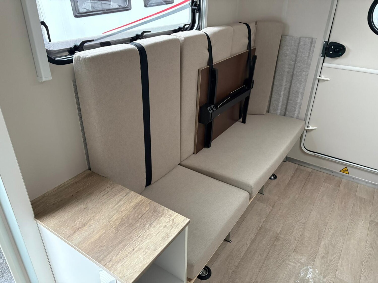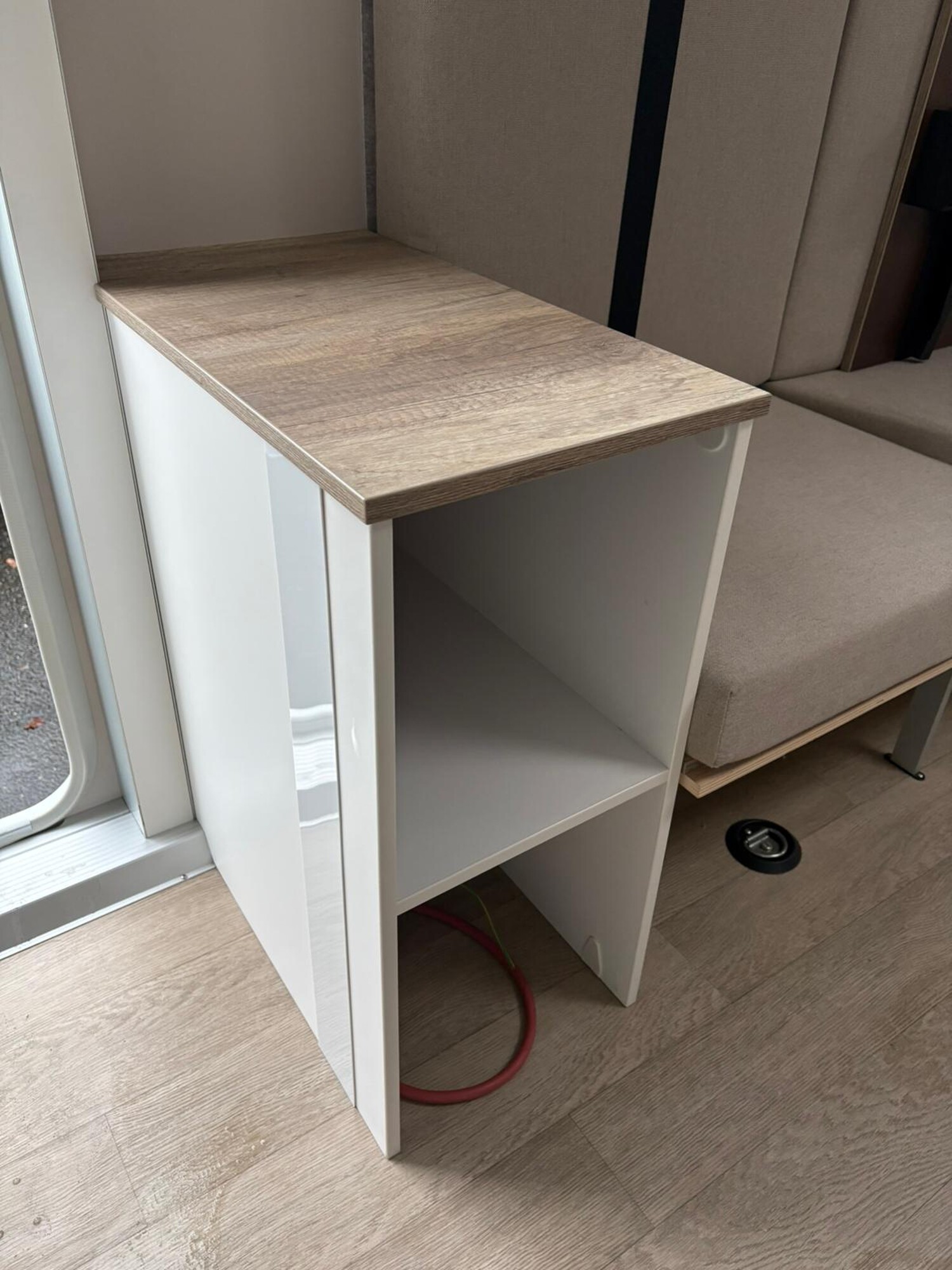- Stauschränke oberhalb und neben der Sitzgruppe