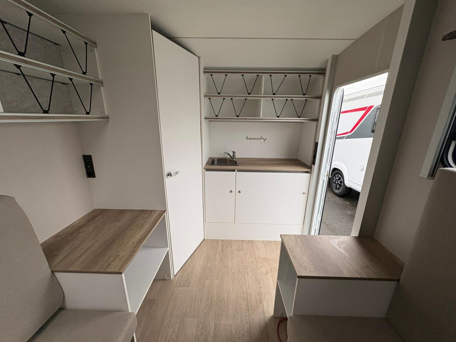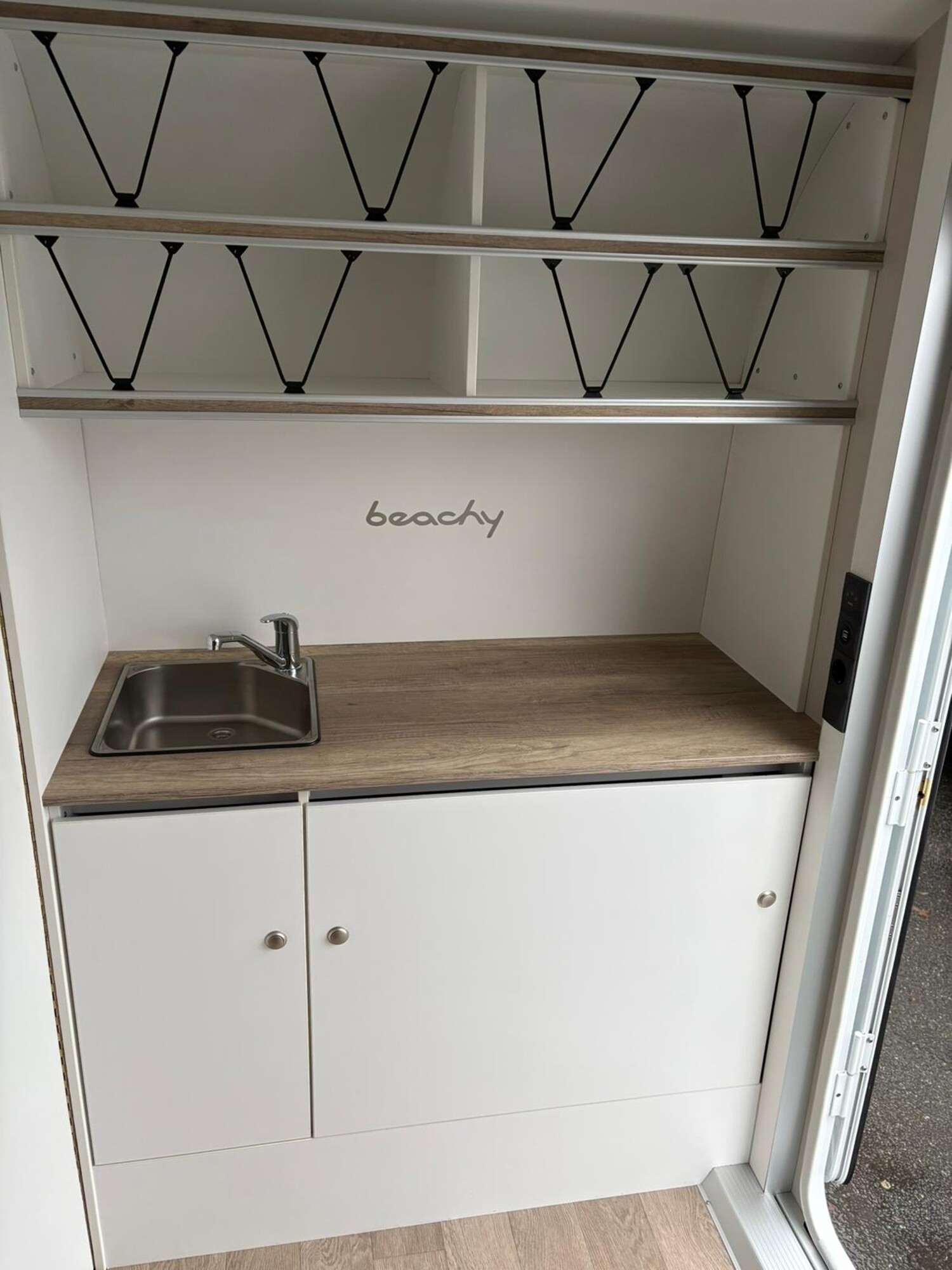 - Küchenzeile mit Spüle, Schublade inkl. Kühlbox, Soft-Close, Push-Lock Verschlüssen und Staufläche oberhalb der Küchenzeile