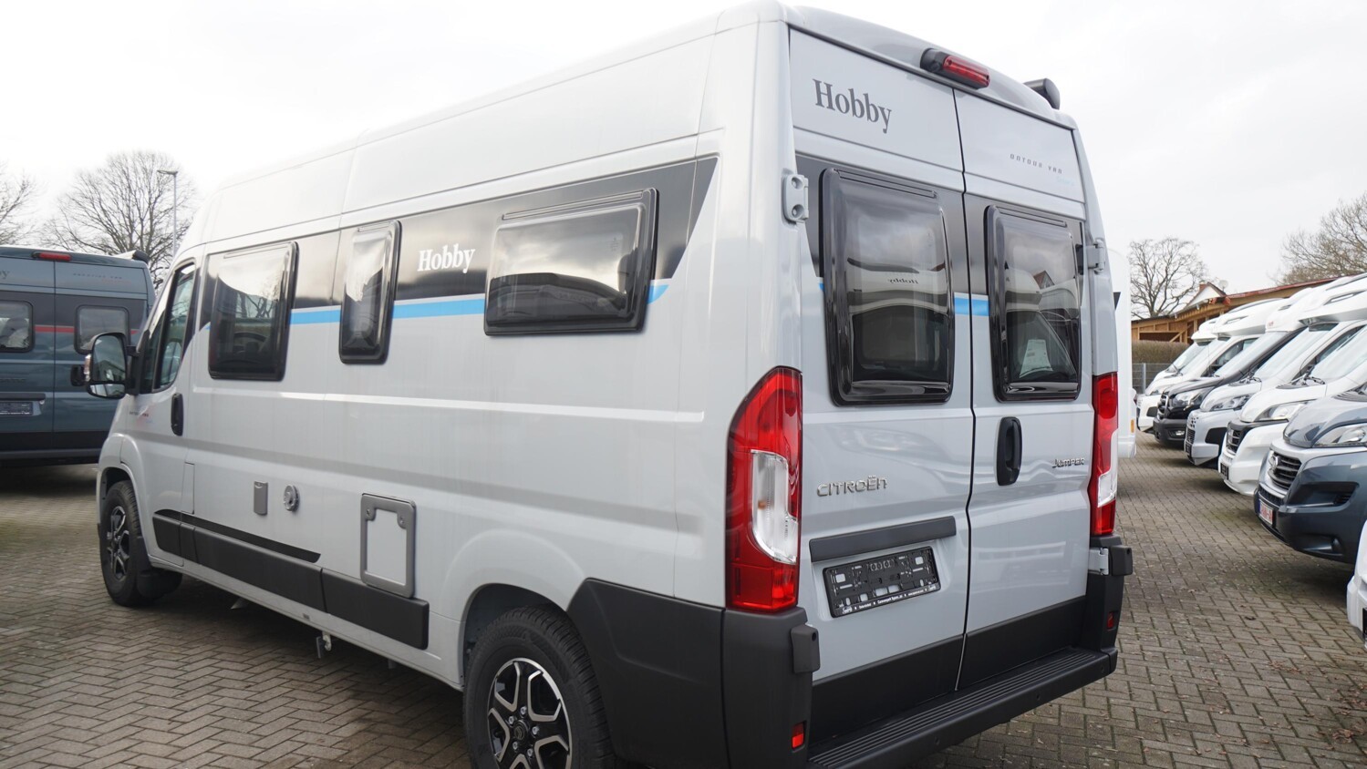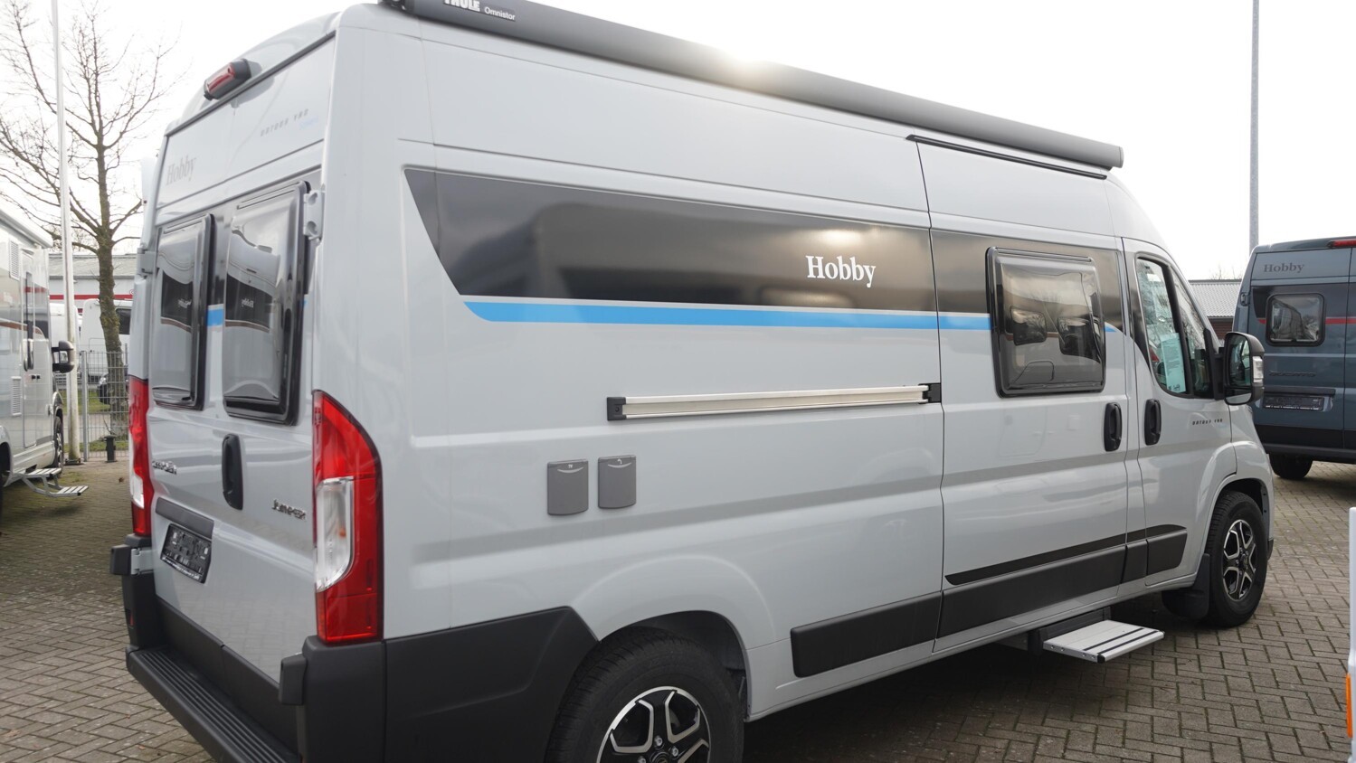 - Hobby Solaris Paket (Lackierte Stoßfänger inkl. Skid-plate, Nebelscheinwerfer, Fußmatten im Fahrerhaus, Abwassertank, 90 Liter, beheizt, Vorhängefenster, austellbar, doppelt verglast, getönt, Heck links, Zusatzsteckdosen (1 x 12 V / 2 x 230 V / 2 x Kombi USB A / C), Lithium-Batterie SUPER B Epsilon, 12 V / 100 AH inkl. HeizelementBüttner Solaranlage POWER BLACK LINE 260 Watt inkl. Solarregler, Außensteckdose 230 V inkl. SAT-/TV-Anschluss, LCD-Bedienpanel TRUMA Combi CP Plus, Ambientebeleuchtung, Sonderbeklebung Kotflügel)