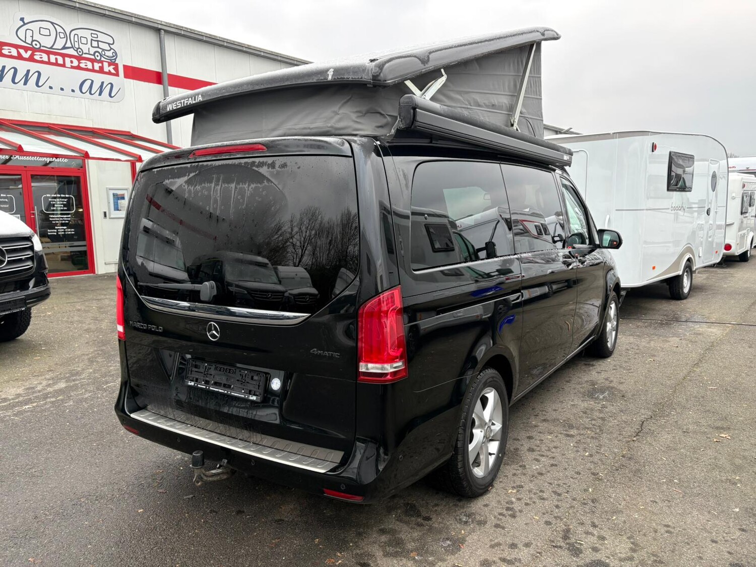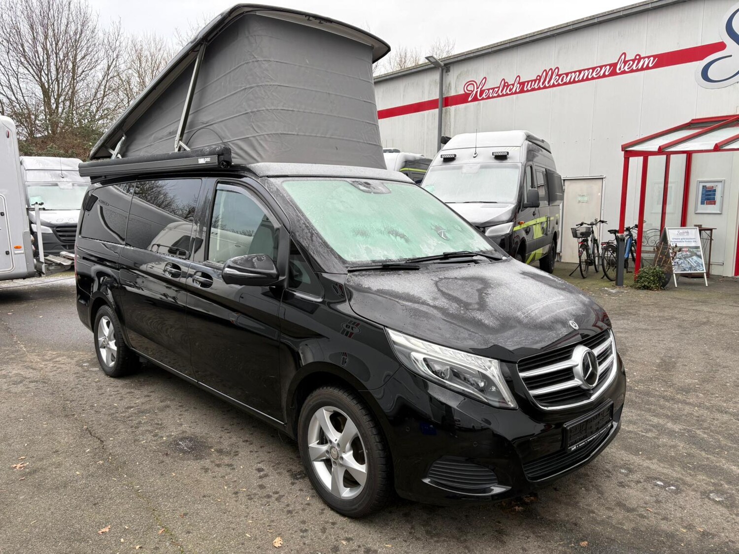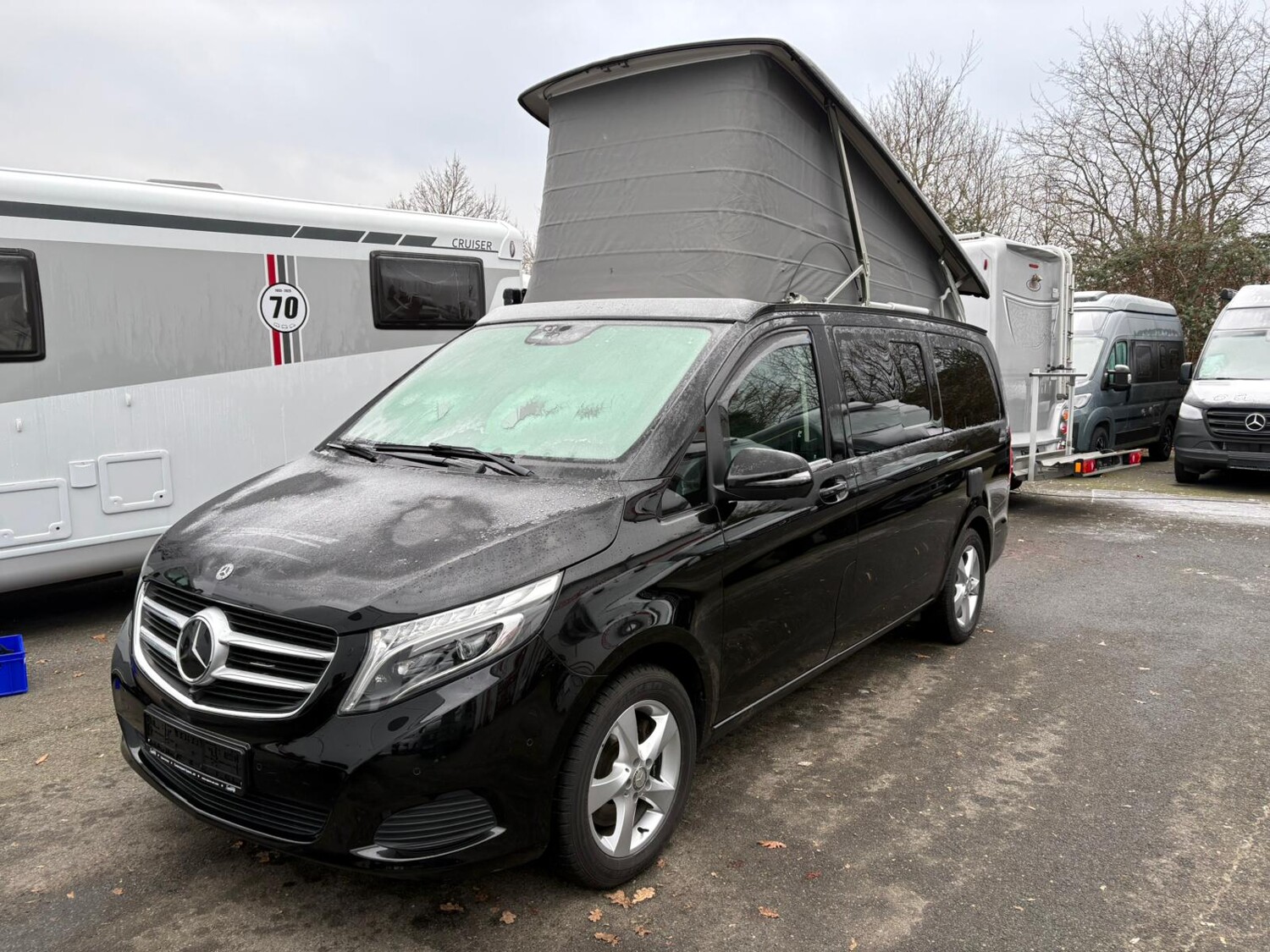 Ambiente-Beleuchtung Fahrgastraum, Anhängerkupplung abnehmbar (2500 kg), Audio-Navigationssystem COMAND Online, Auszugssystem im Heckbereich, Automatik-Getriebe 7G, Campingtisch und Stühle, Fahrassistenz-Paket (Bergabfahr, Berganfahr, Verkehrszeichen, Totwinkel, Abstandswarner), Fahrwerks-Dämpfungssystem Agility Control, Infotainment-System Remote Online, Aufstelldach Easy-Up elektro-hydraulisch, Klimaautomatik Fond (Tempmatik), Komfort-Klimaautomatik Thermotronik, Kraftstoff-Filter mit Wasserabscheider, Lastenverankerung / Verzurrösen, LM-Felgen´17 mit Ganzjahresreifen, Markise Fiamma Gehäuse anthrazit, Park-Paket mit 360° Kamera, Scheibenwaschanlage beheizt, Schiebe-/Hebedach (Glas) elektrisch vorn, Polsterung Leder Lugano, Tempomat mit Abstandsregelung Distronic Plus, Zusatzheizung (Warmwasser) mit Zeitschaltuhr