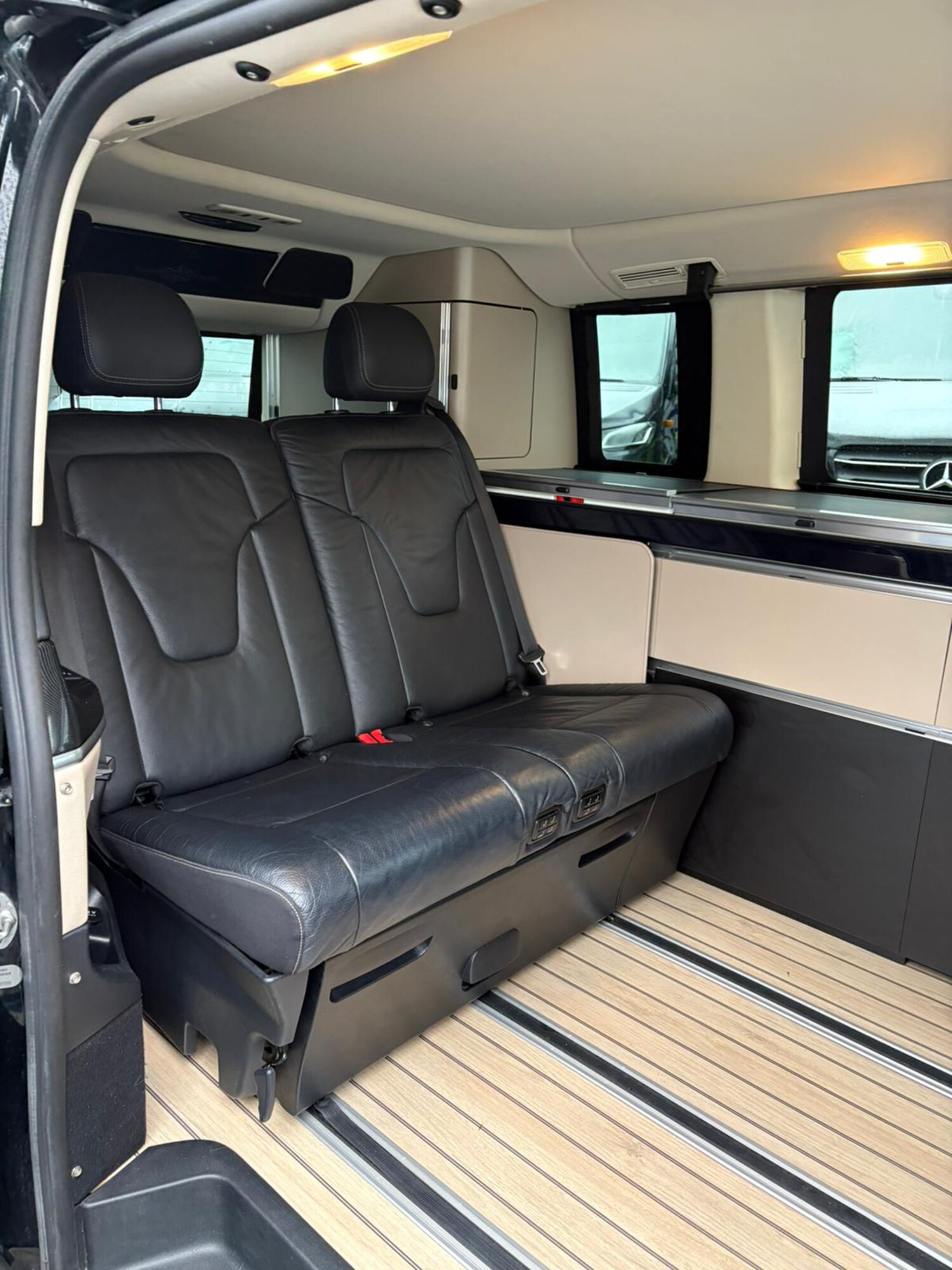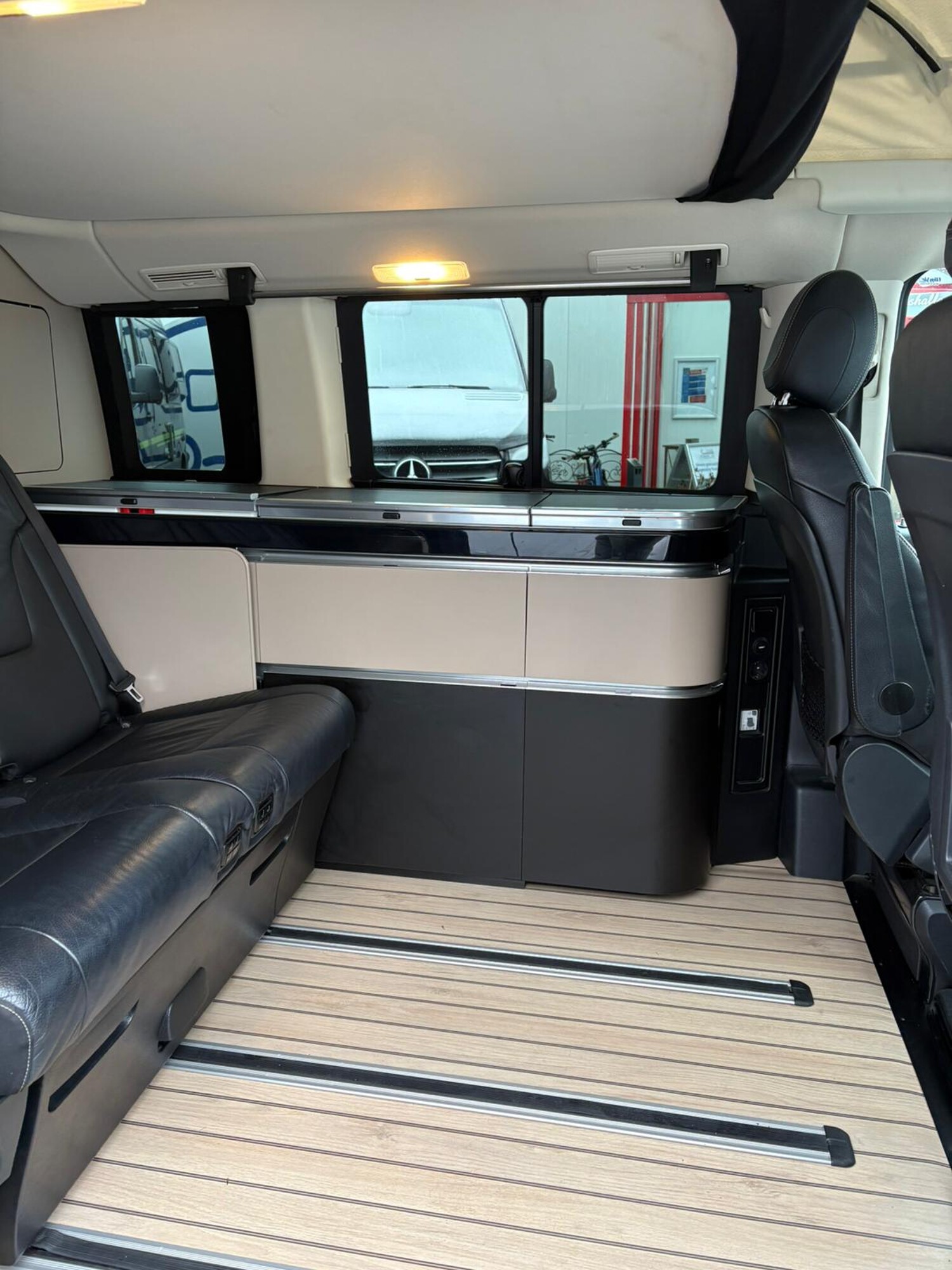Allradantrieb, Ablagenetze an Vordersitzlehnen, Außenspiegel elektr. verstell-, heizb- und anklappbar, BlueEfficiency-Paket, Bodenbelag Fahrgastraum TPO in Yachtbodenoptik, Teppich im Fahrerraum, Einschaltautomatik für Fahrlicht, Einstiegsleisten mit Schriftzug Mercedes-Benz (beleuchtet), Berganfahr-Assistent, Attention-Assist (Müdigkeitserkennungs-Sensor), Seitenwind-Assistent, Fenster hinten elektrisch ausstellbar, Feststellbremse elektrisch, Intelligent Light System LED, Komfortbeleuchtung im Fahrgast-/Laderaum, Kommunikationsmodul Mercedes me connect (Internetbasierende Dienste), Kopf-Airbag-System, Kopf-Schulter-Airbag Fahrer-/Beifahrerseite, Kraftstofftank vergrößert, Lenkrad verstellbar, Lenkrad mit Multifunktion inkl. Reiserechner, Mercedes-Benz Notrufsystem, Reifendruck-Kontrollsystem, Scheibenwischer mit Regensensor, Vordersitze mit Sitzheizung, Lendenwirbelstützen und Armlehnen, Spiegel-Paket, Sport-Paket Exterieur, Steckdosen (USB, 12V/ 230V) im Lade-/Fahrgastraum 2-fach, Verglasung hinten abgedunkelt / Schwarzglas, Vlies-Batterie 92 Ah, Warmluftkanal zum Lade-/Fahrgastraum, Küchenzeile mit Waschbecken, 2-Flammkocher und Kühlbox