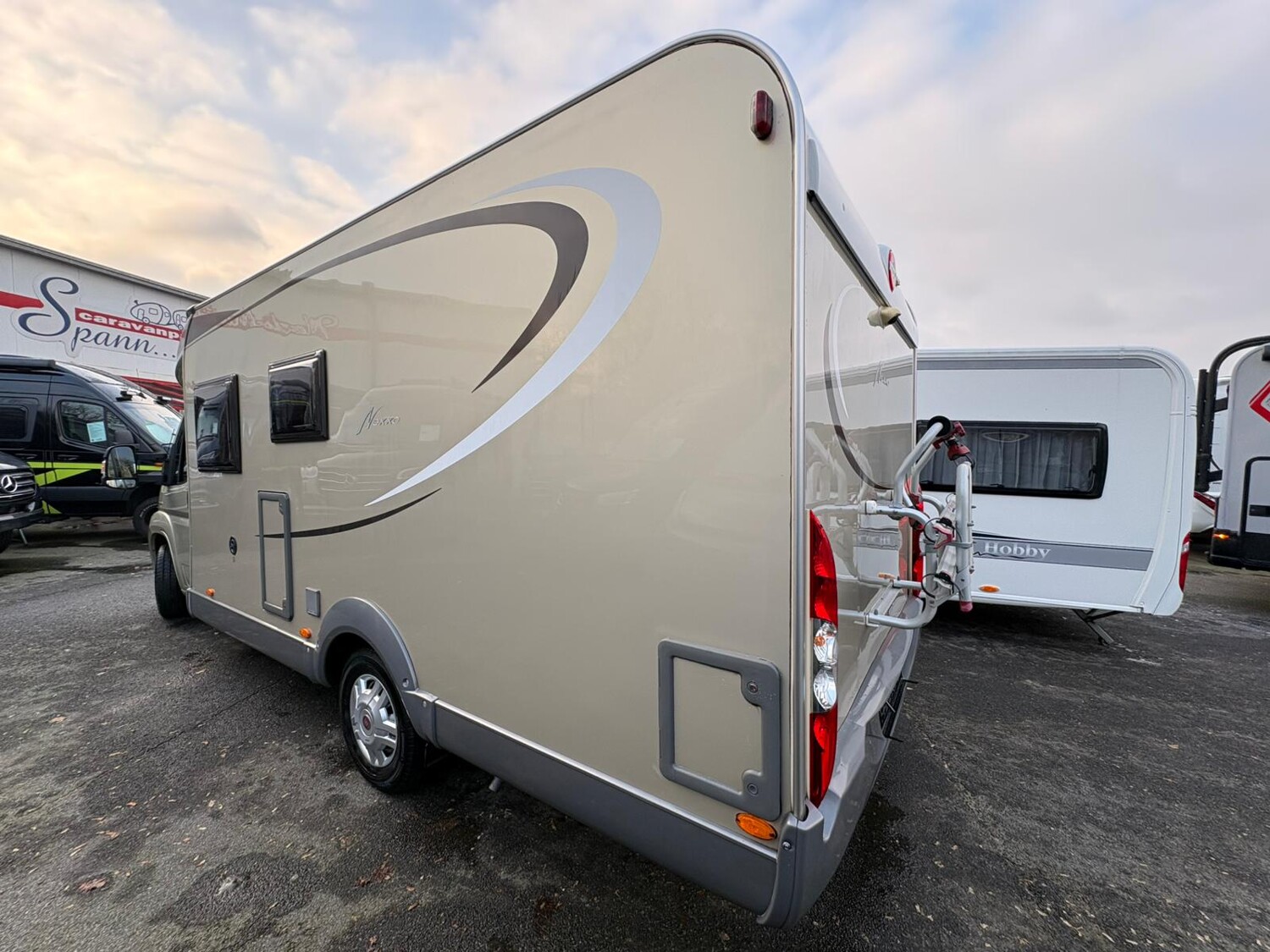 - Französisches Bett im Heck mit Leselampen und Stauschränken, Staufläche darunter