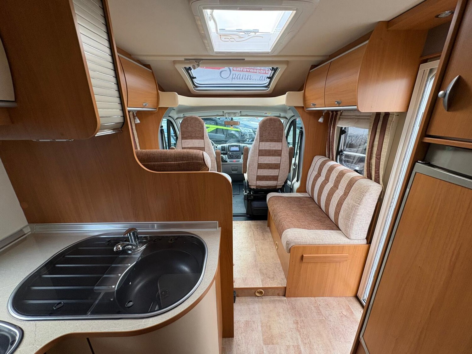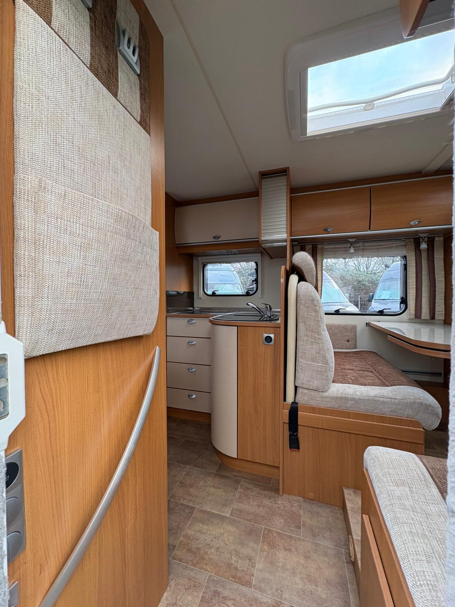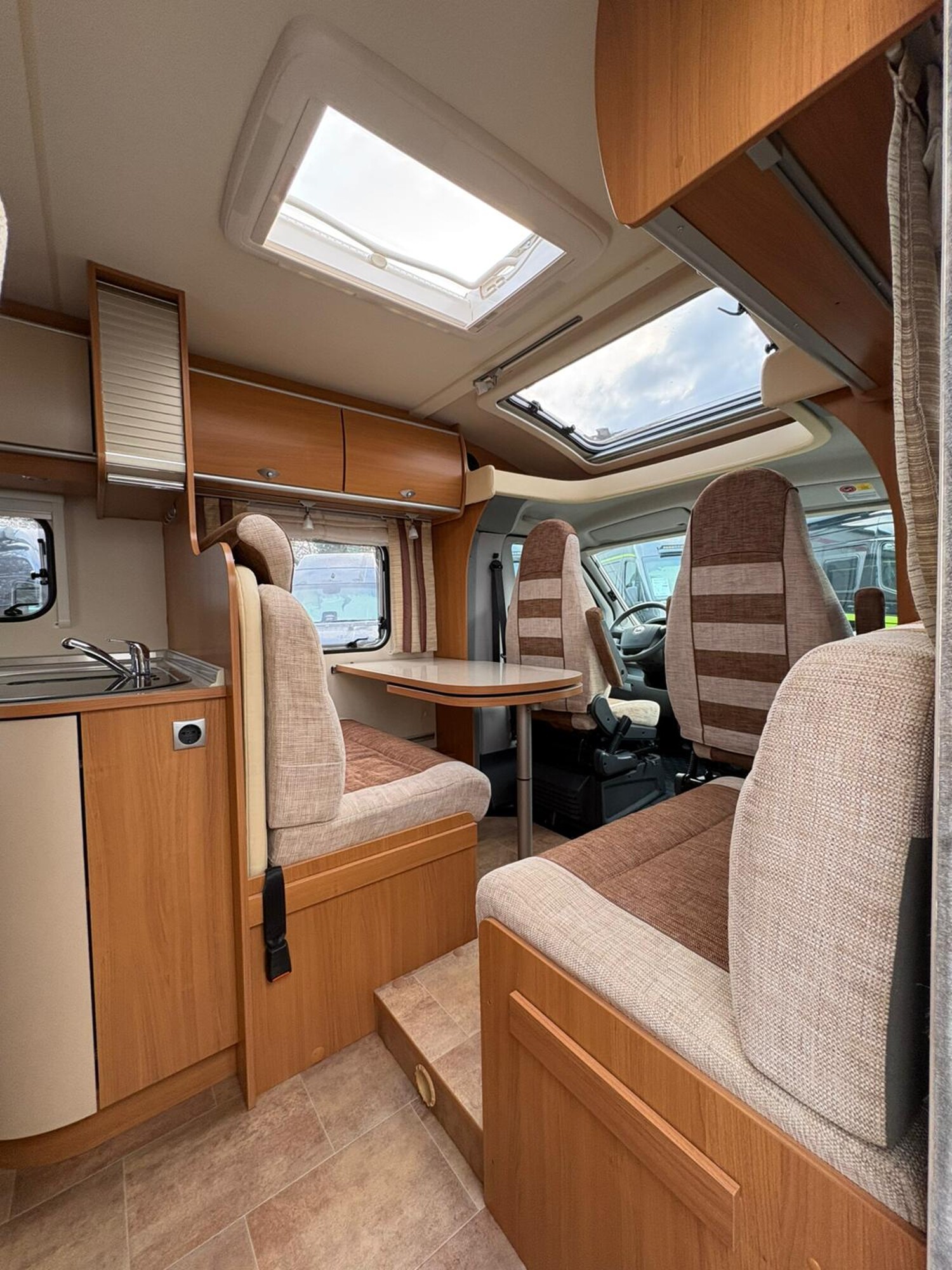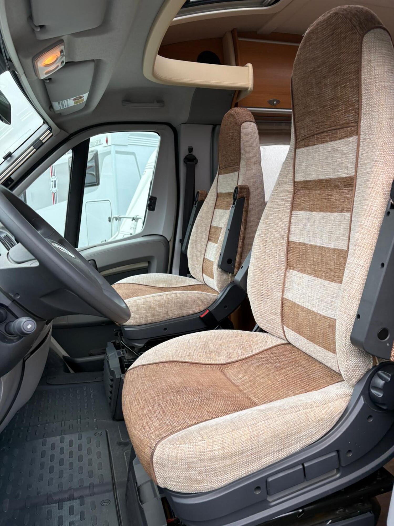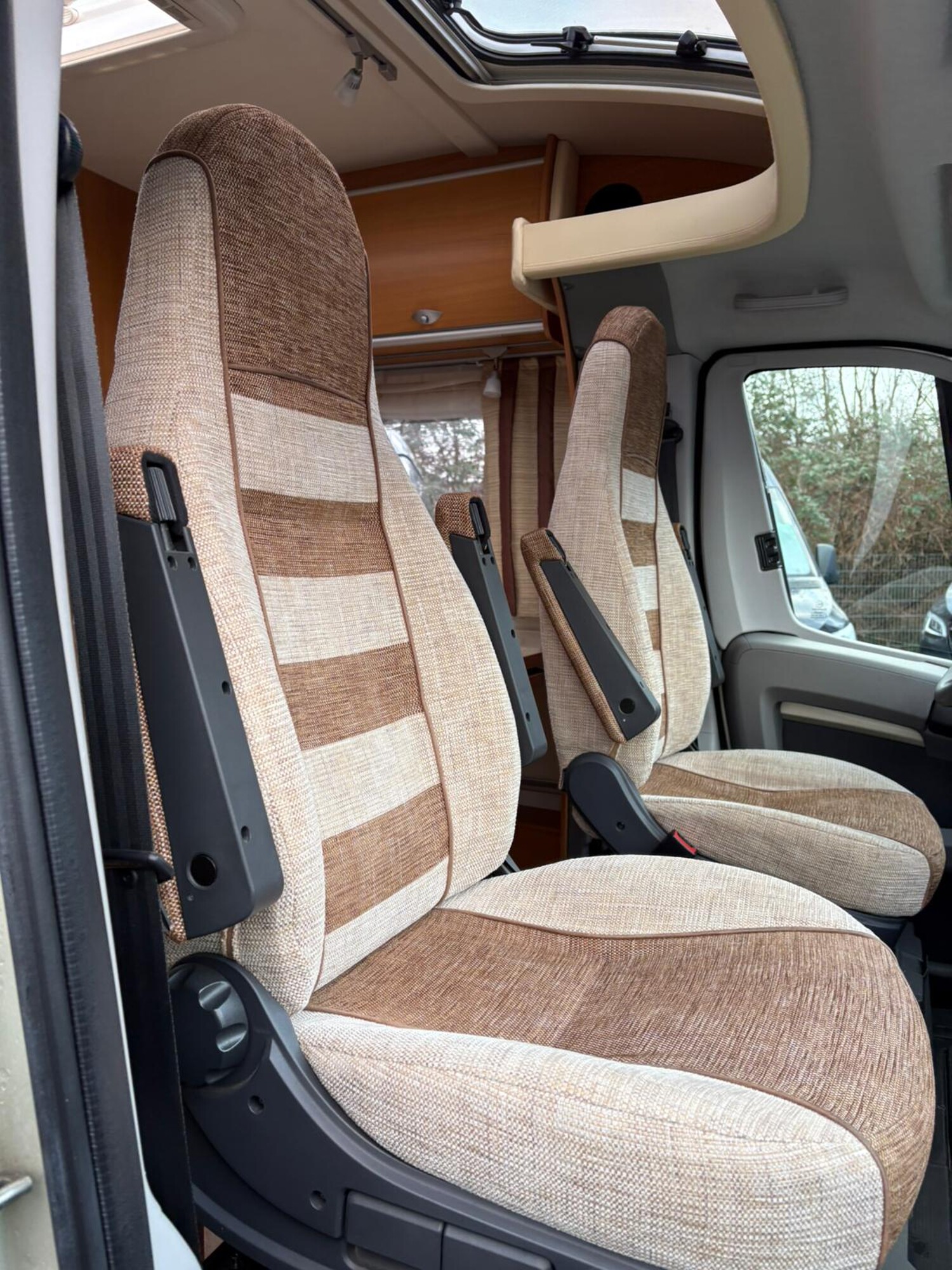 - Drehbare Pilotensitze mit Wohnraumstoff bezogen