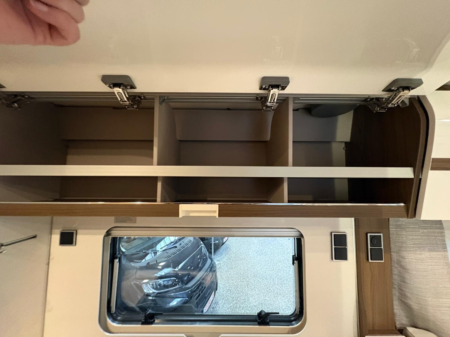 - Elektrischer Rollladen im Bug inkl. Sichtschutzrollo für Frontschreibe (von unten nach oben zuziehbar) und Sonnenblendenfunktion