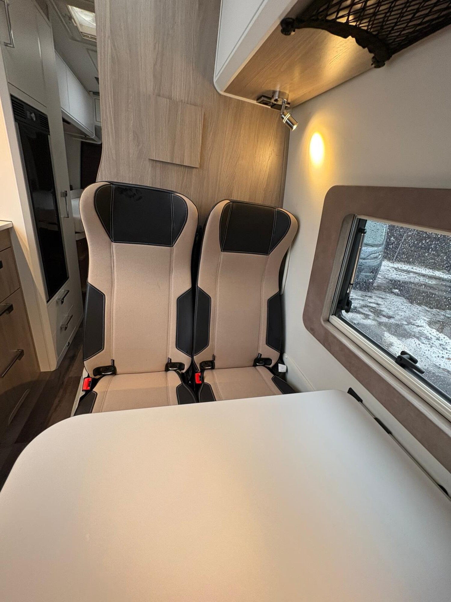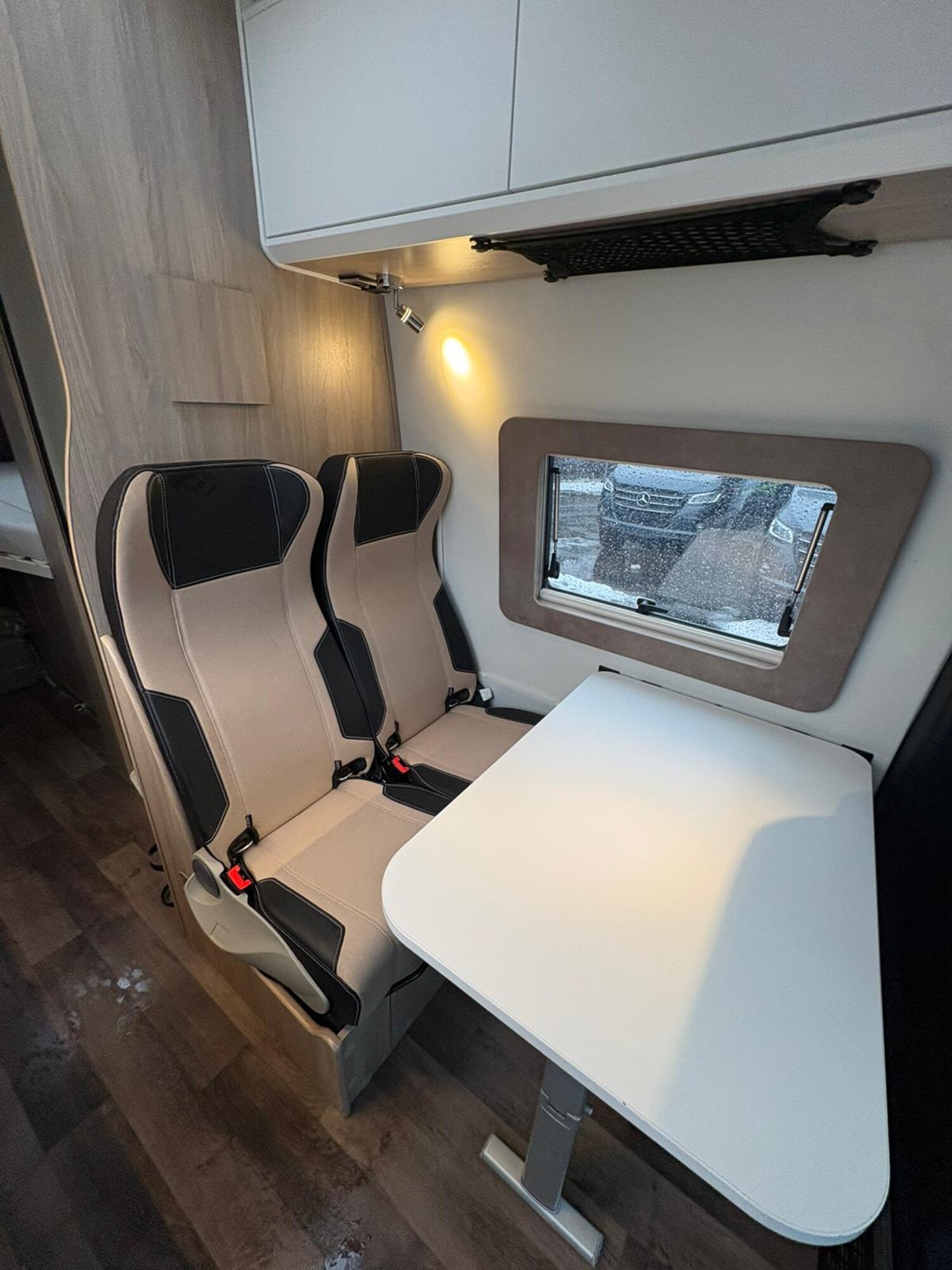 - Seitensitzgruppe mit einem Tisch, Leselampe, Stauschränke