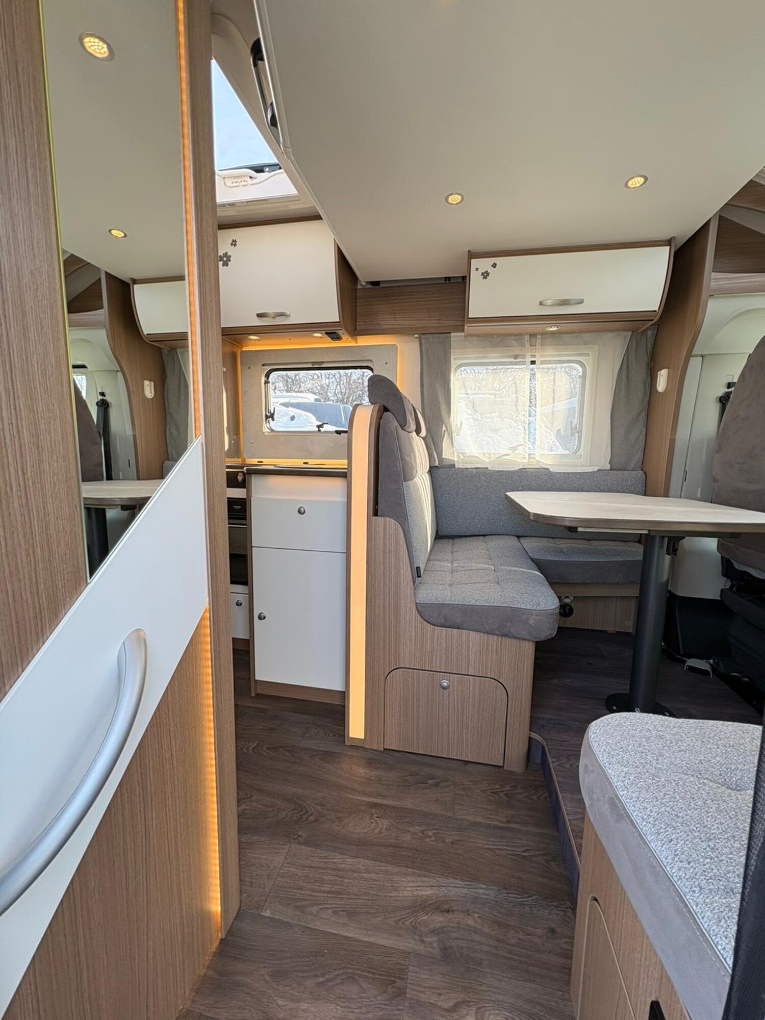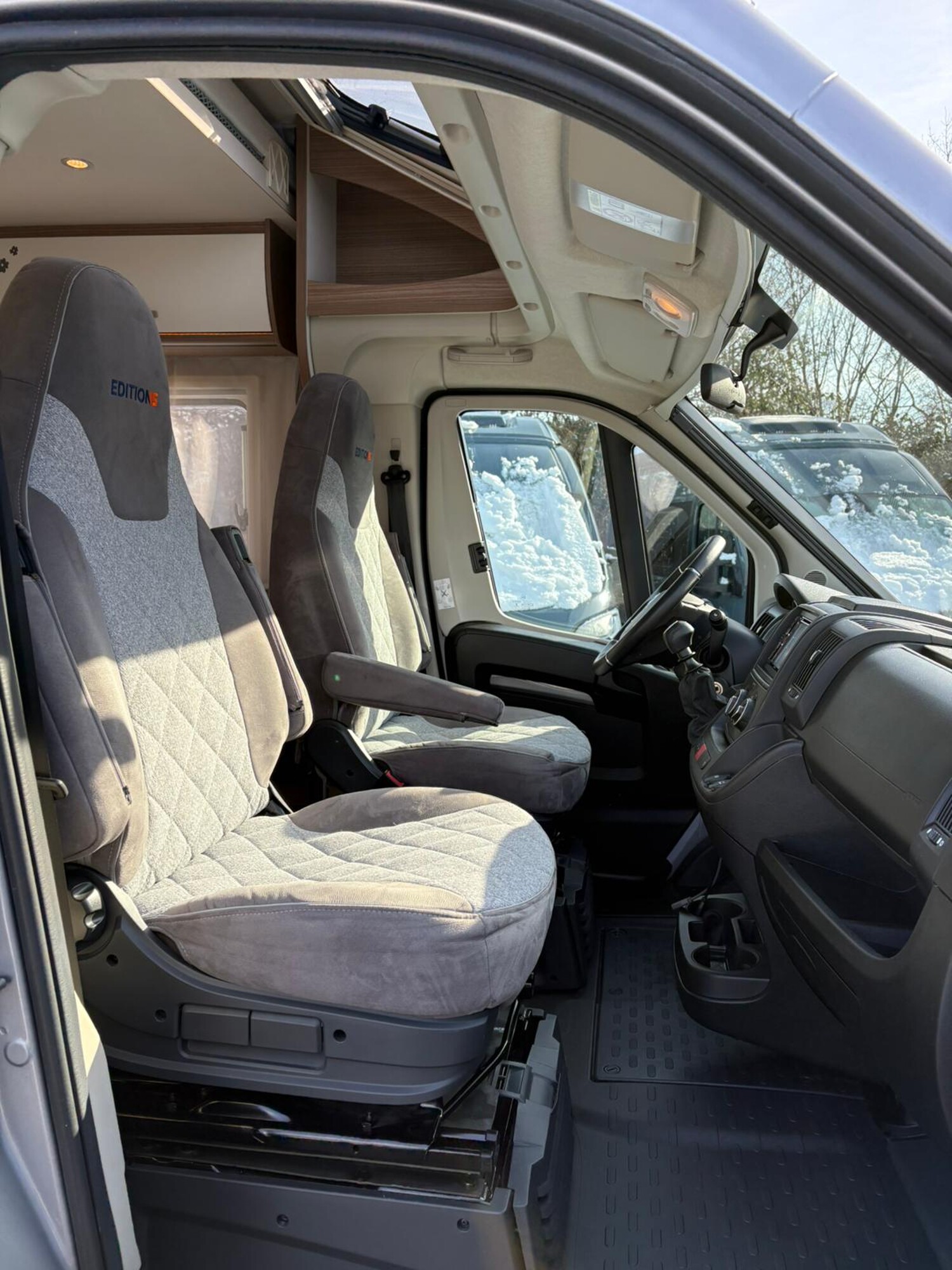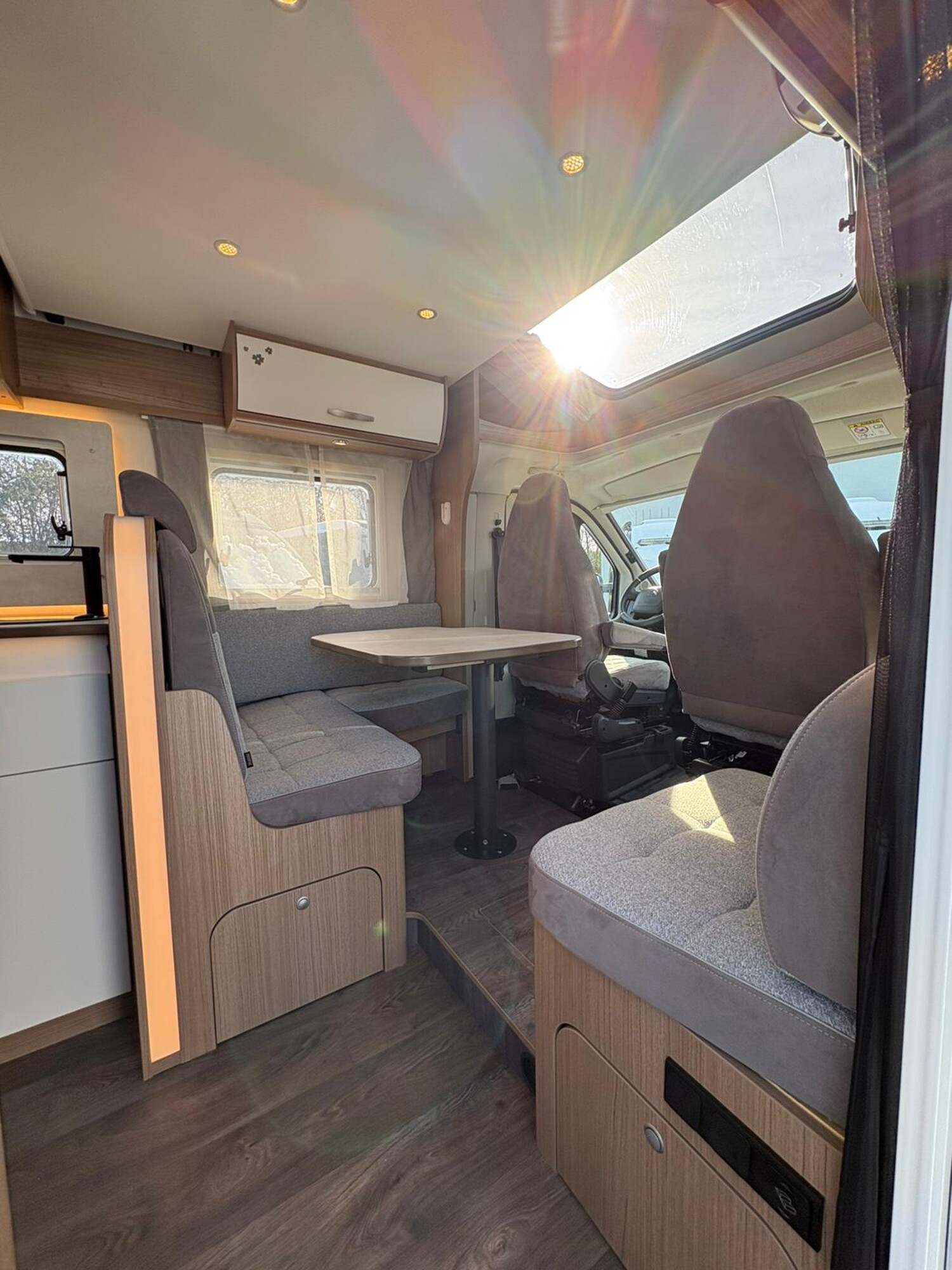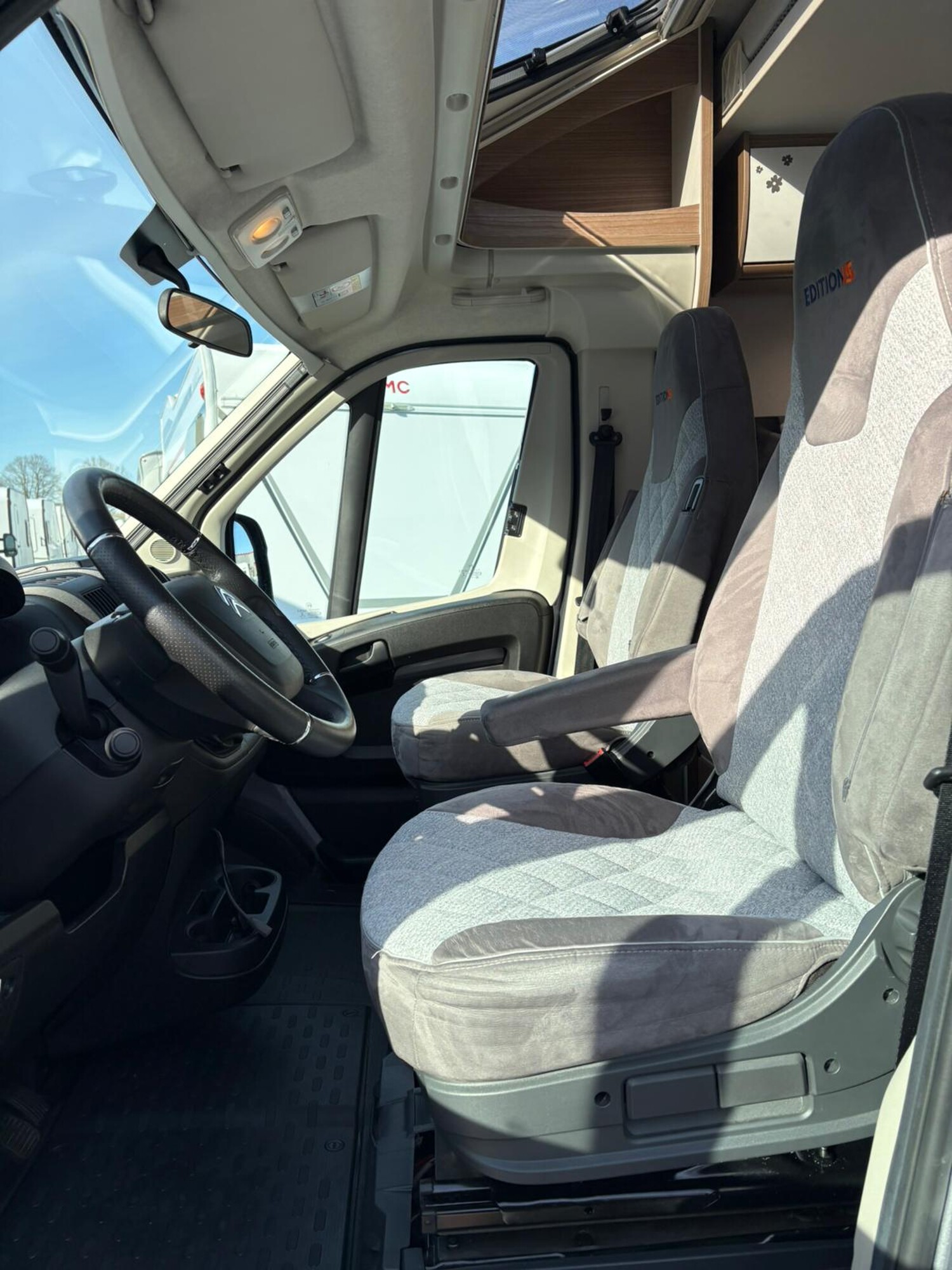 - Basic Paket (Außenspiegel elektrisch und beheizt, Radiovorbereitung mit Lautsprechern, DAB Antenne integriert im Außenspiegel, Beifahrersitz höhenverstellbar, Panormadachhaube über Sitzgruppe, Klarglasdachhaube 40 x 40 cm, Duschraumverkleidung, Spiegel mit indirekter Beleuchtung und Garderobenhaken, Captain Chair mit Bezügen, Zusätzliche Steckdose im Dachschrank über dem Küchenblock, Steckdose in der Garage)