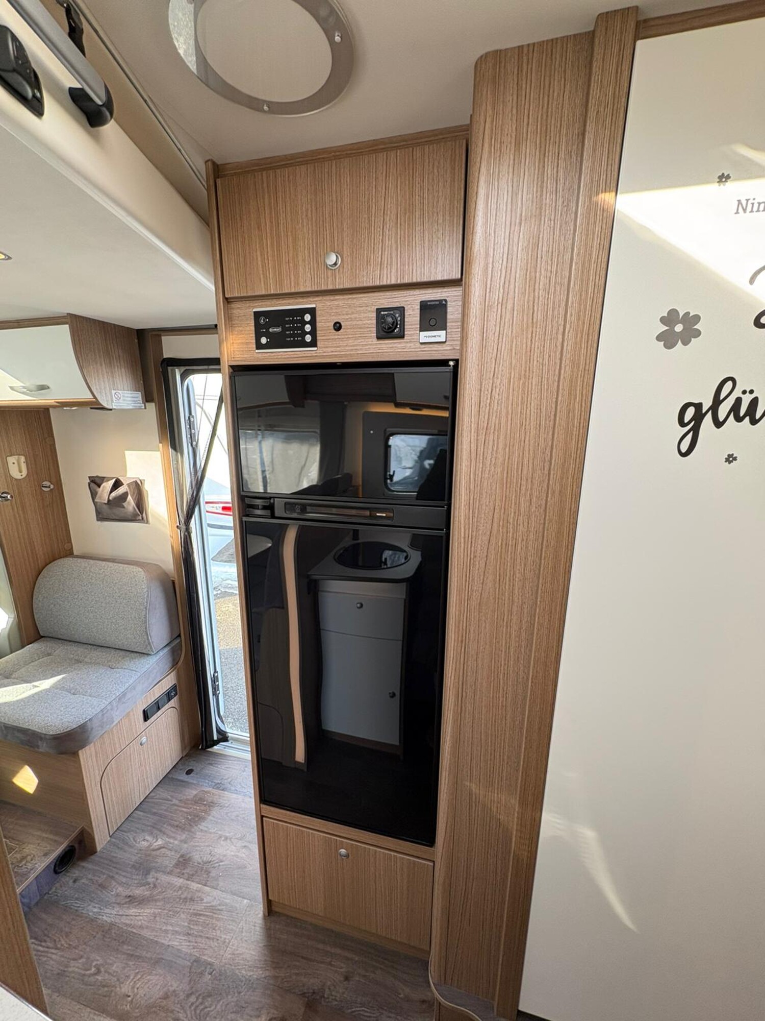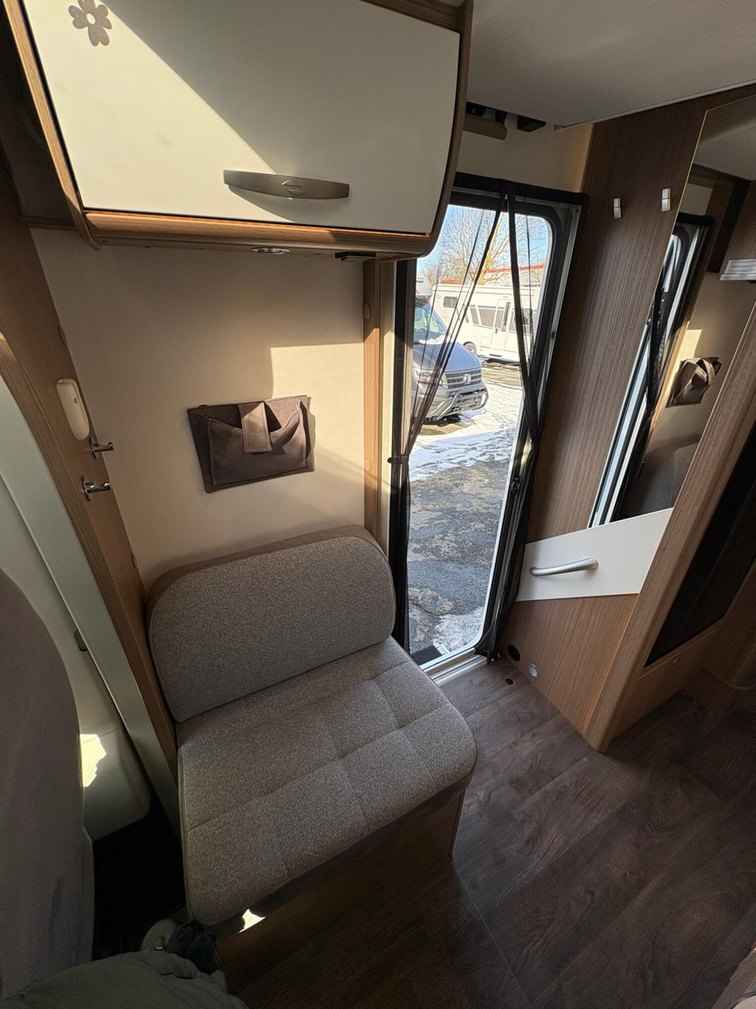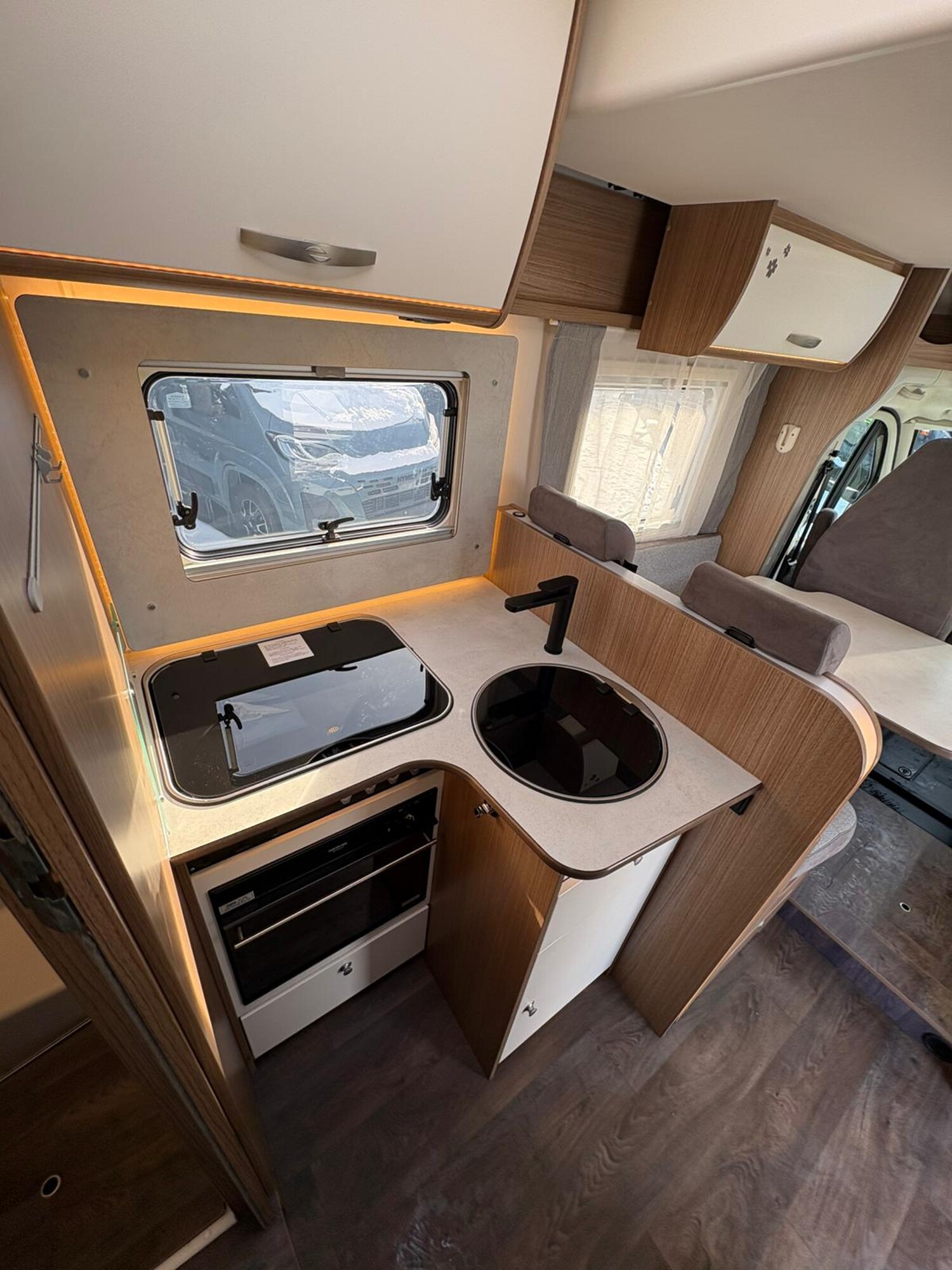 - Basic Paket (Außenspiegel elektrisch und beheizt, Radiovorbereitung mit Lautsprechern, DAB Antenne integriert im Außenspiegel, Beifahrersitz höhenverstellbar, Panormadachhaube über Sitzgruppe, Klarglasdachhaube 40 x 40 cm, Duschraumverkleidung, Spiegel mit indirekter Beleuchtung und Garderobenhaken, Captain Chair mit Bezügen, Zusätzliche Steckdose im Dachschrank über dem Küchenblock, Steckdose in der Garage)