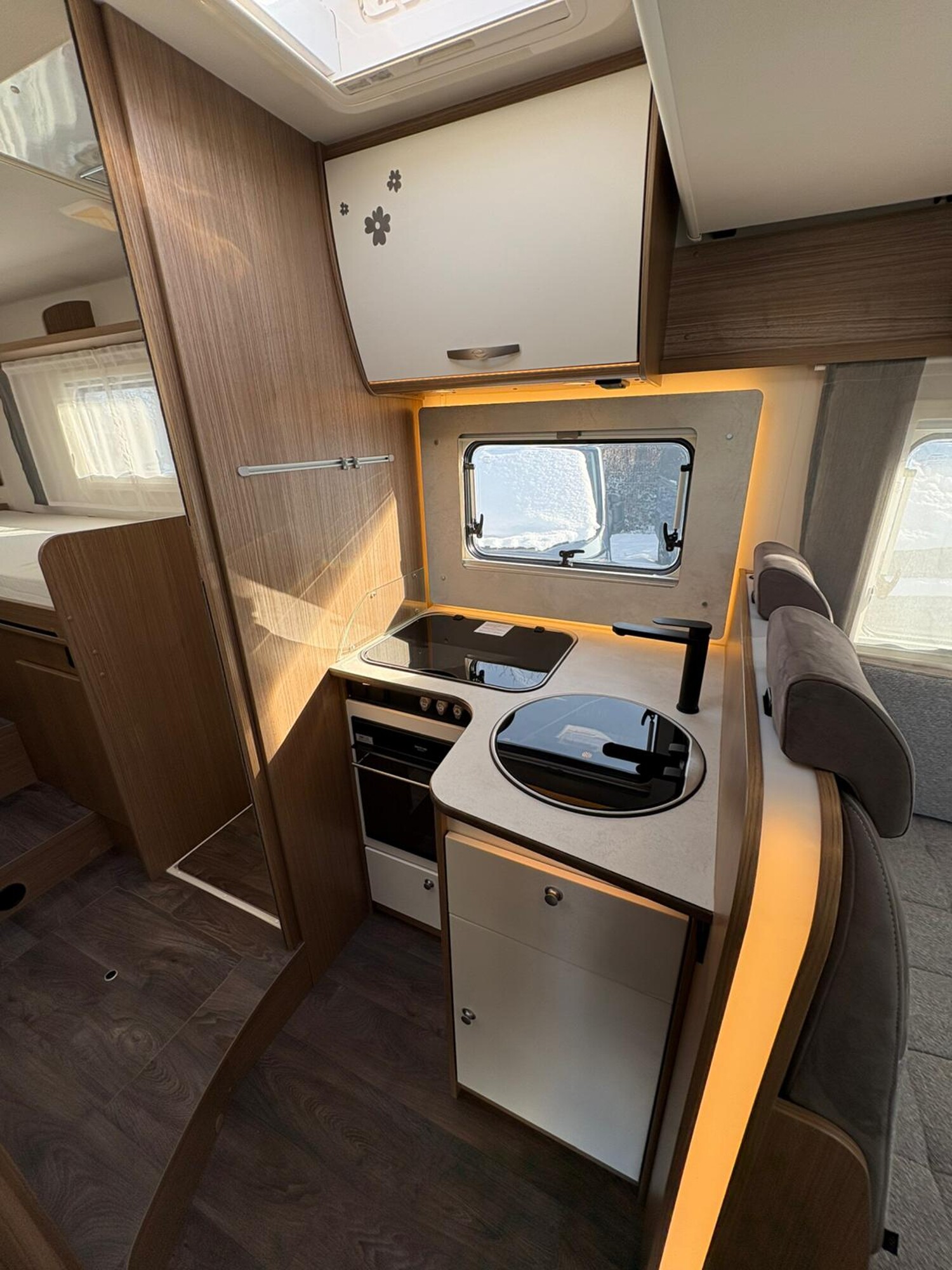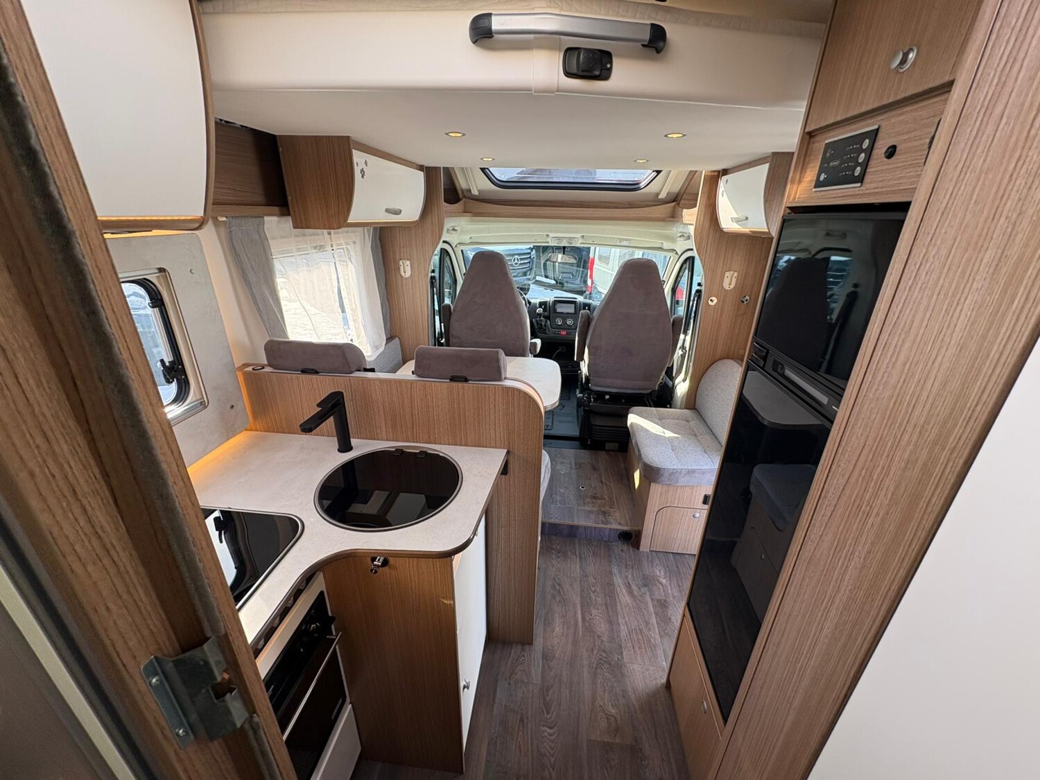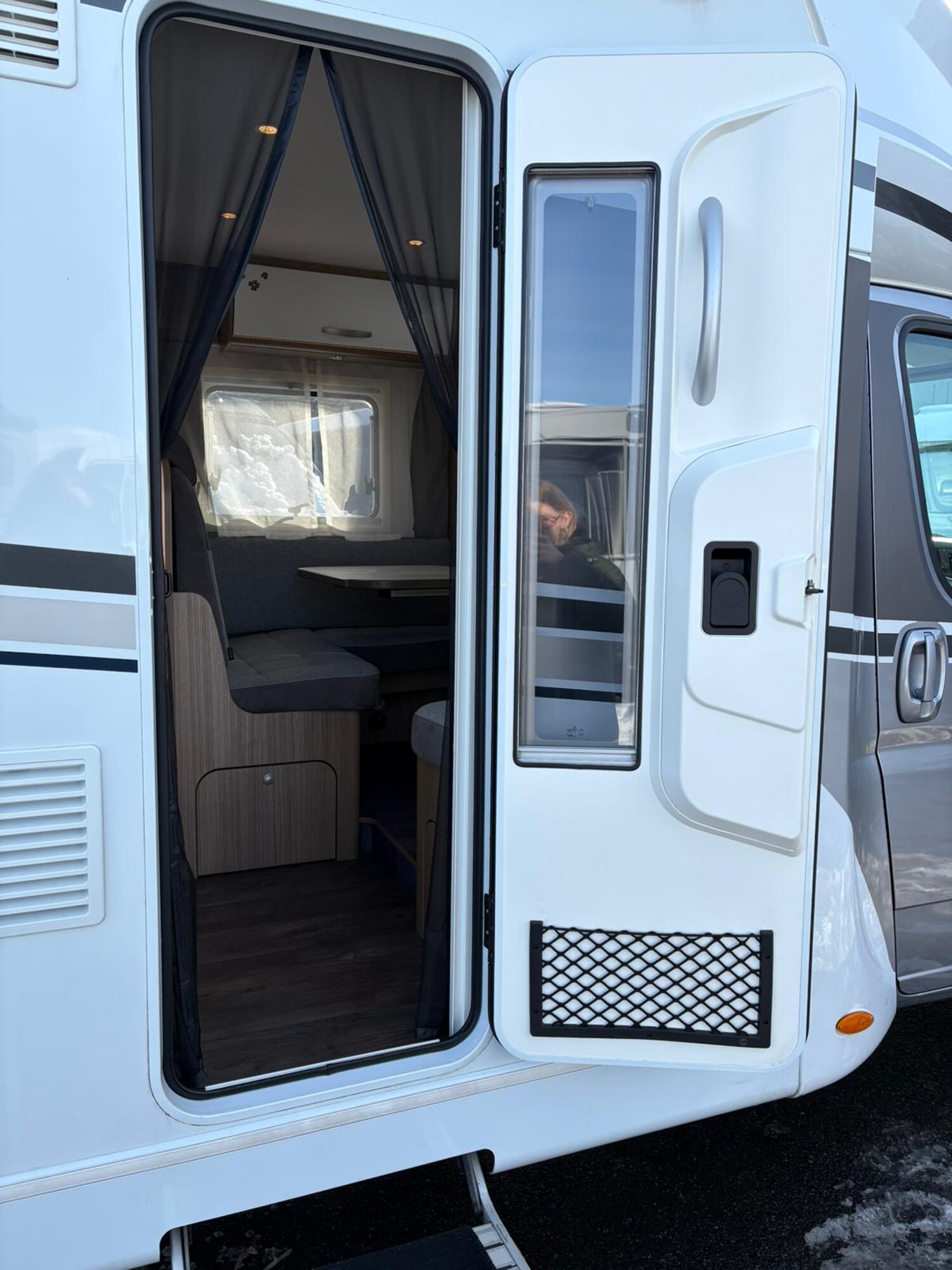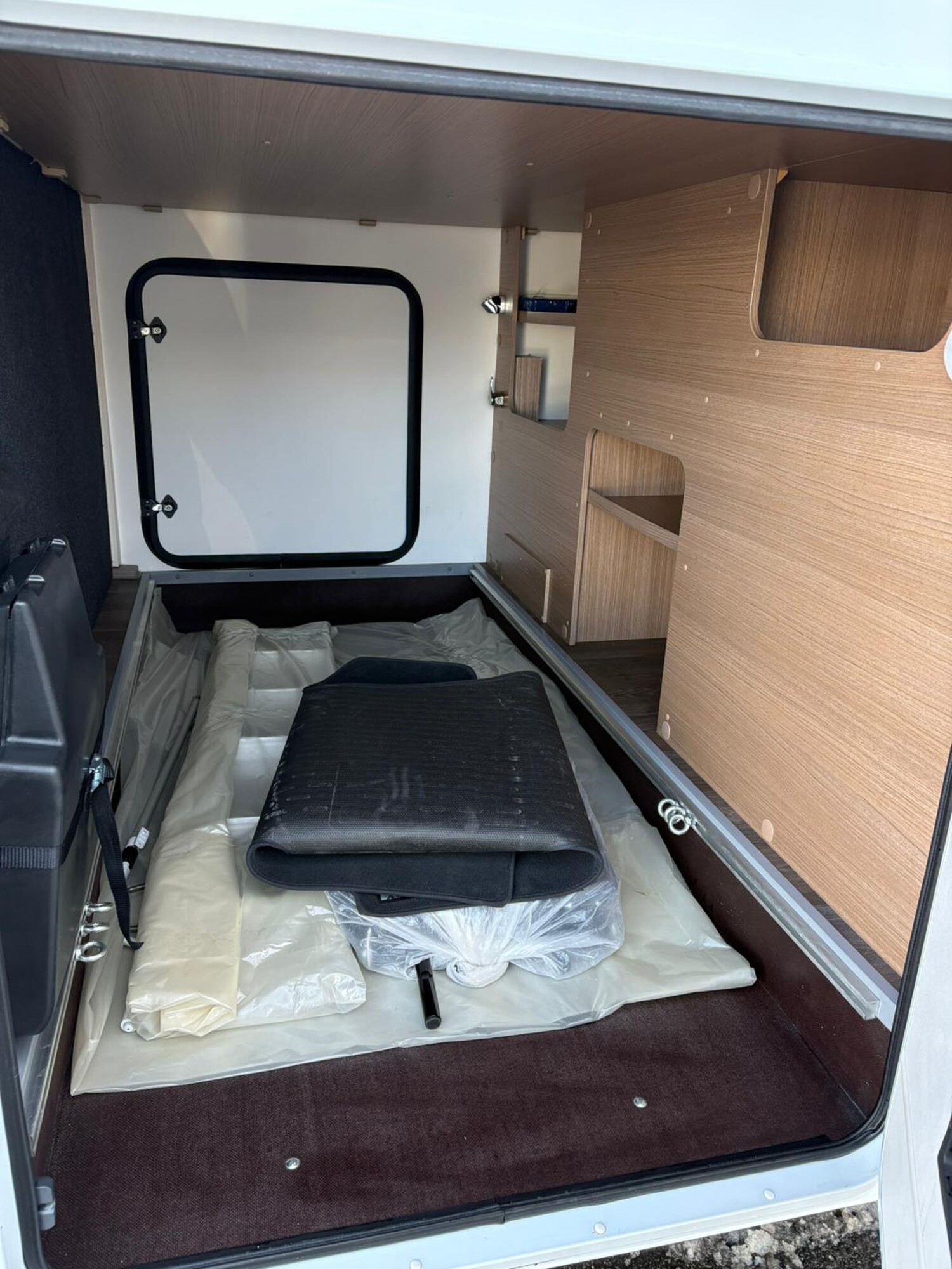 - Basic Paket (Außenspiegel elektrisch und beheizt, Radiovorbereitung mit Lautsprechern, DAB Antenne integriert im Außenspiegel, Beifahrersitz höhenverstellbar, Panormadachhaube über Sitzgruppe, Klarglasdachhaube 40 x 40 cm, Duschraumverkleidung, Spiegel mit indirekter Beleuchtung und Garderobenhaken, Captain Chair mit Bezügen, Zusätzliche Steckdose im Dachschrank über dem Küchenblock, Steckdose in der Garage)
