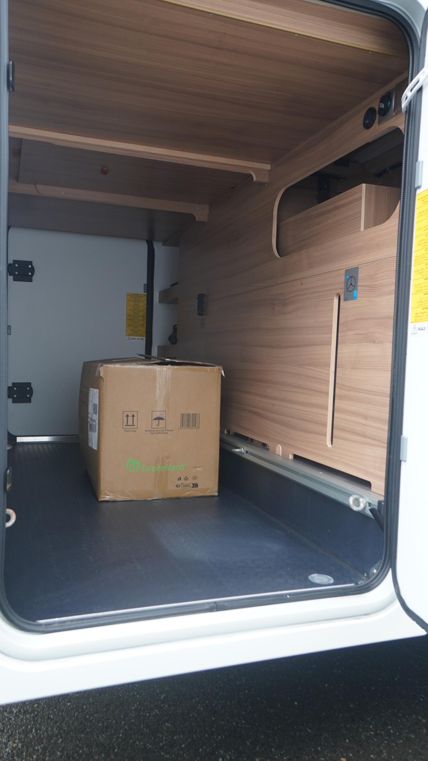 - Aufbautür mit Abfalleimer, Fenster inkl. Verdunkelungsplissee und Fliegenschutztür