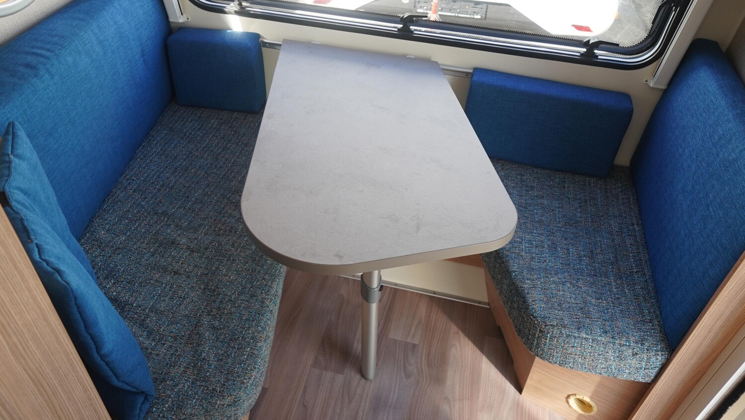 - Face2Face-Sitzgruppe mit einem verstellbaren Tisch und Seitenfenstern in Bullaugenoptik, umbaubar zur Liegefläche