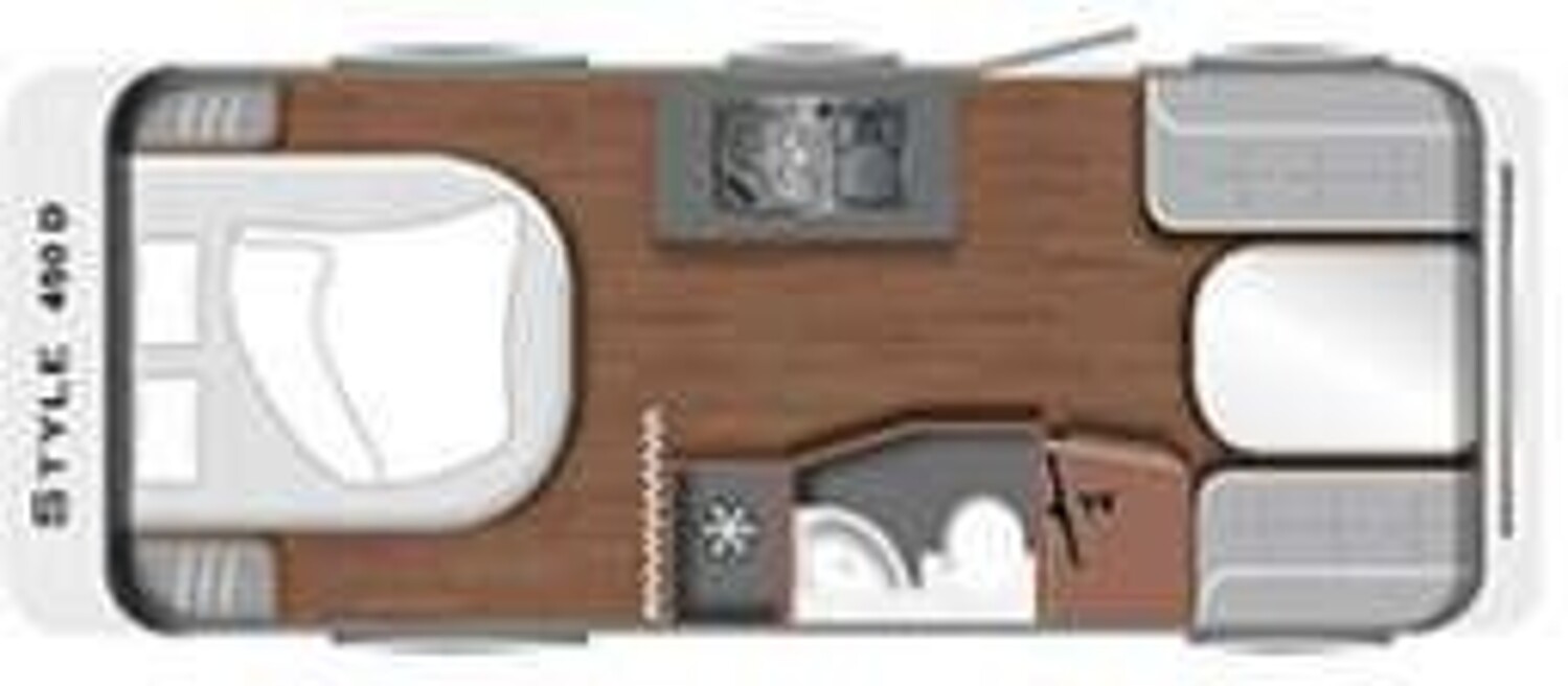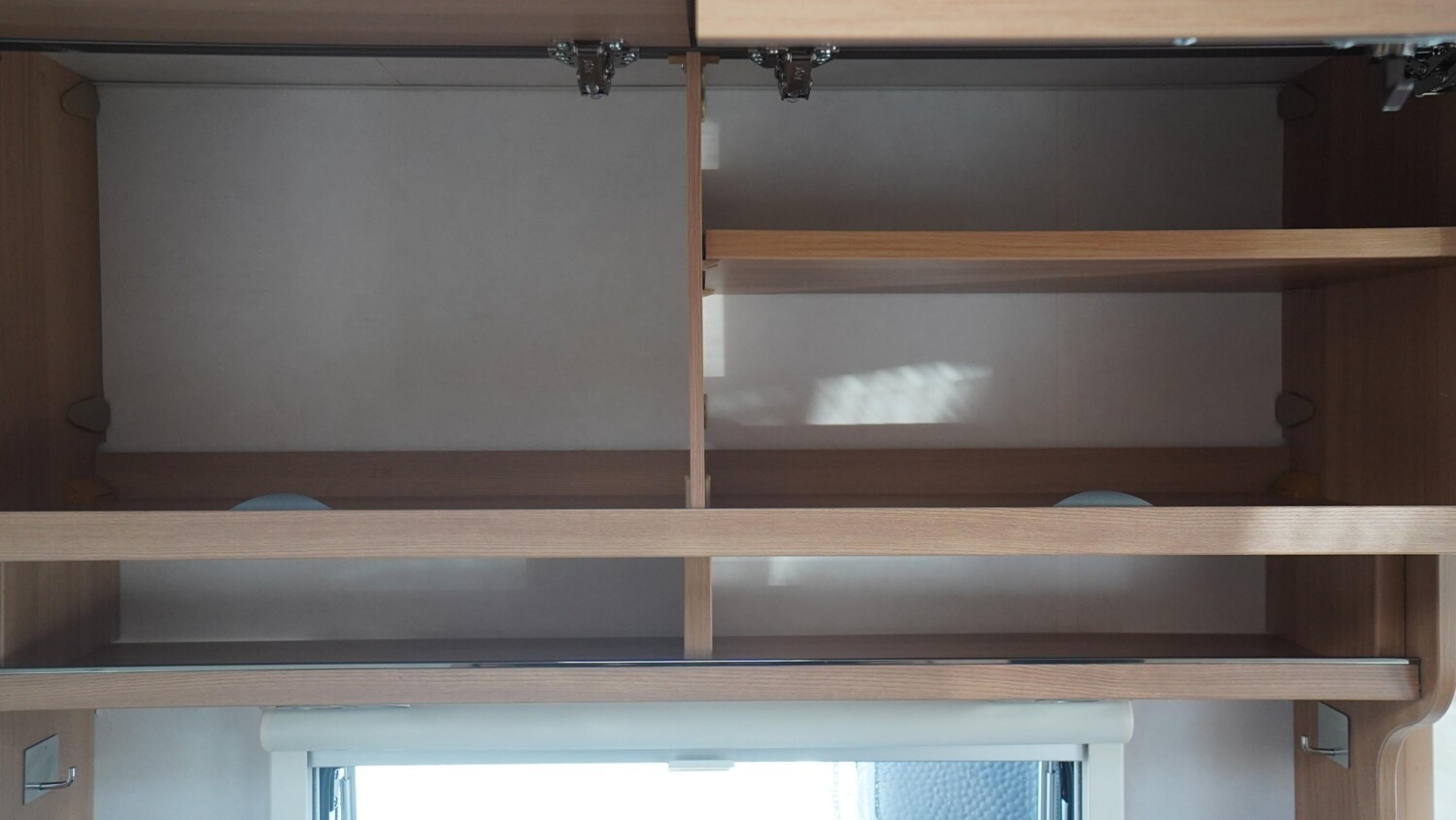 - Küchenzeile mit einem 3-Flammenkocher und einer Spüle inkl. Glasabdeckung, Schubladen, klappbarer Arbeitsflächenerweiterung und Dachstauschränken