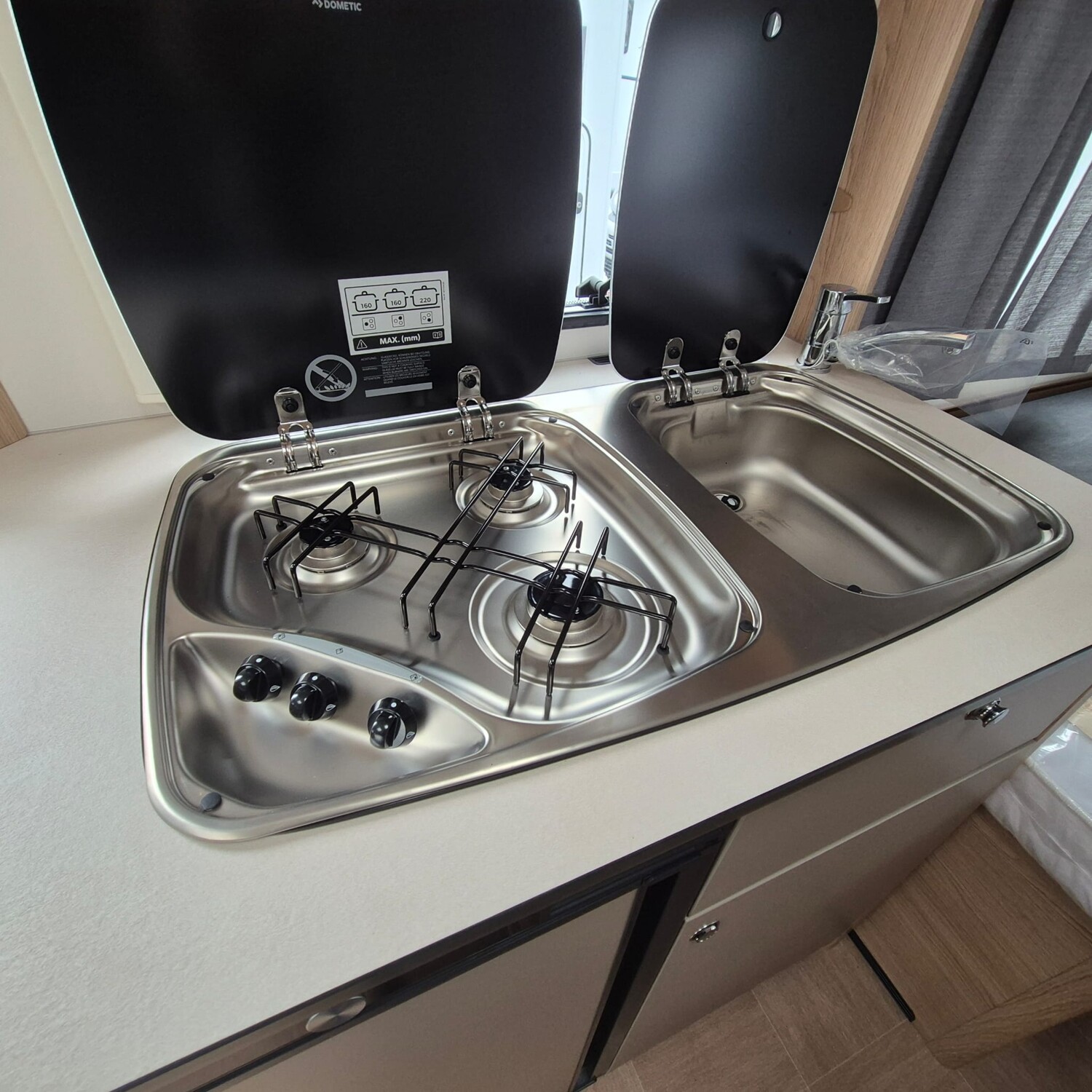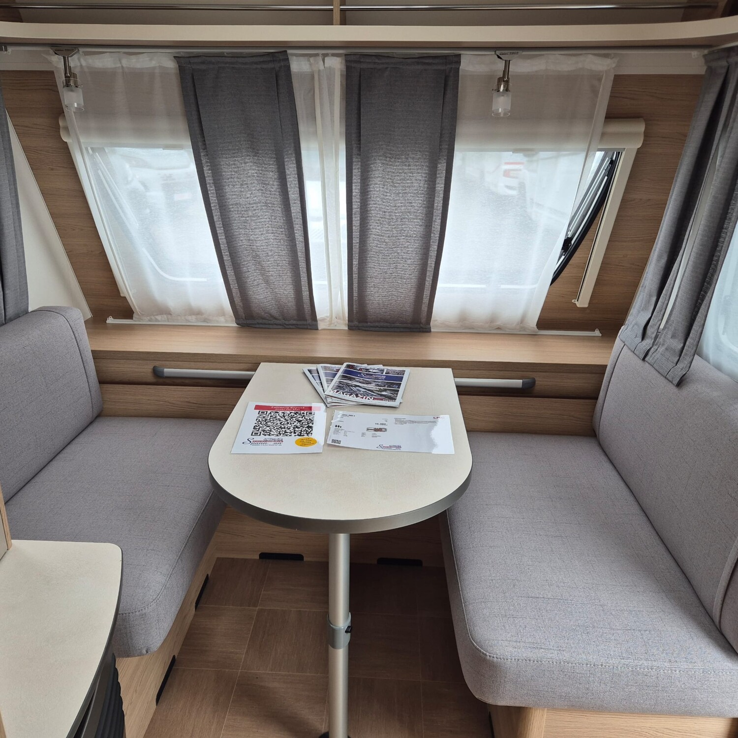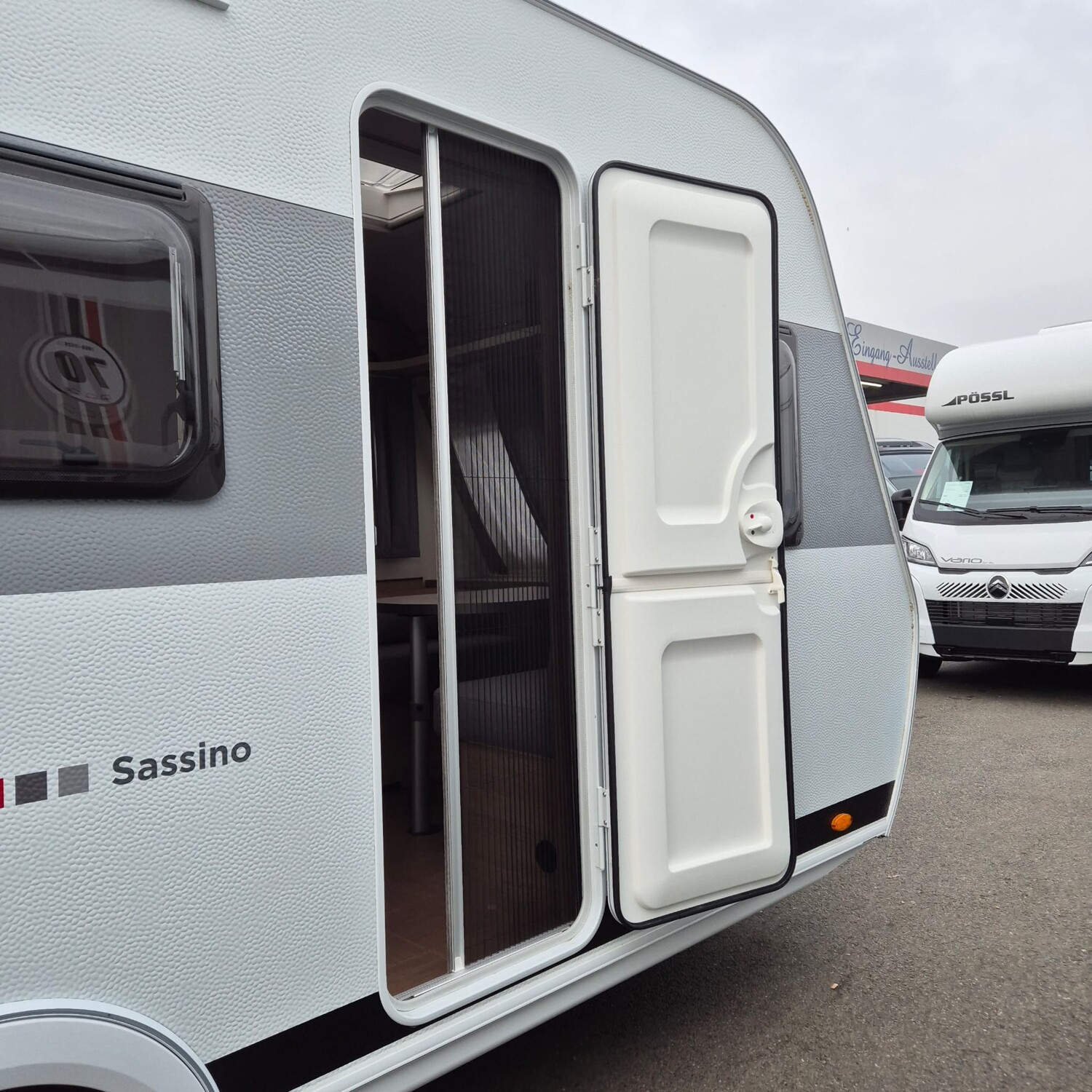 - Sassino Paket (Abwassertank 25 l rollbar, Reserveradhalterung im Flaschenkasten, Frischwassertank 44 l, Fliegenschutztür, Therme für Warmwasserversorgung, Umluftanlage 230 V, Dachfenster 700 x 500 mm, Vorbereitung TV-Platz, zusätzliche Beleuchtung (Stromschiene inkl. Spots), Dachverstärkung inkl. Vorbereitung für Klimaanlage, 2x USB-Steckdose für Stromschiene, Teller für Kurbelstützen, Stützrad mit Stützlastanzeige)