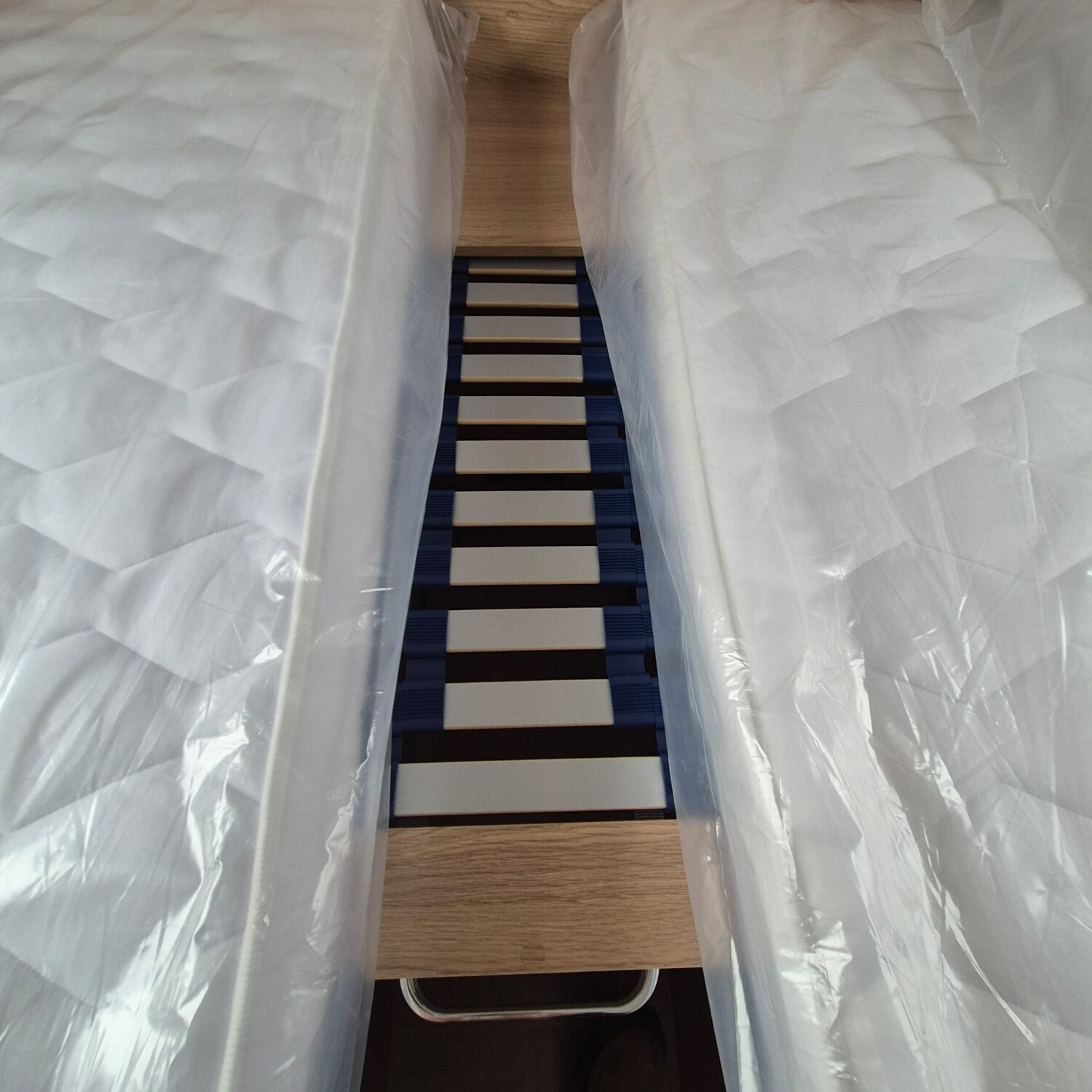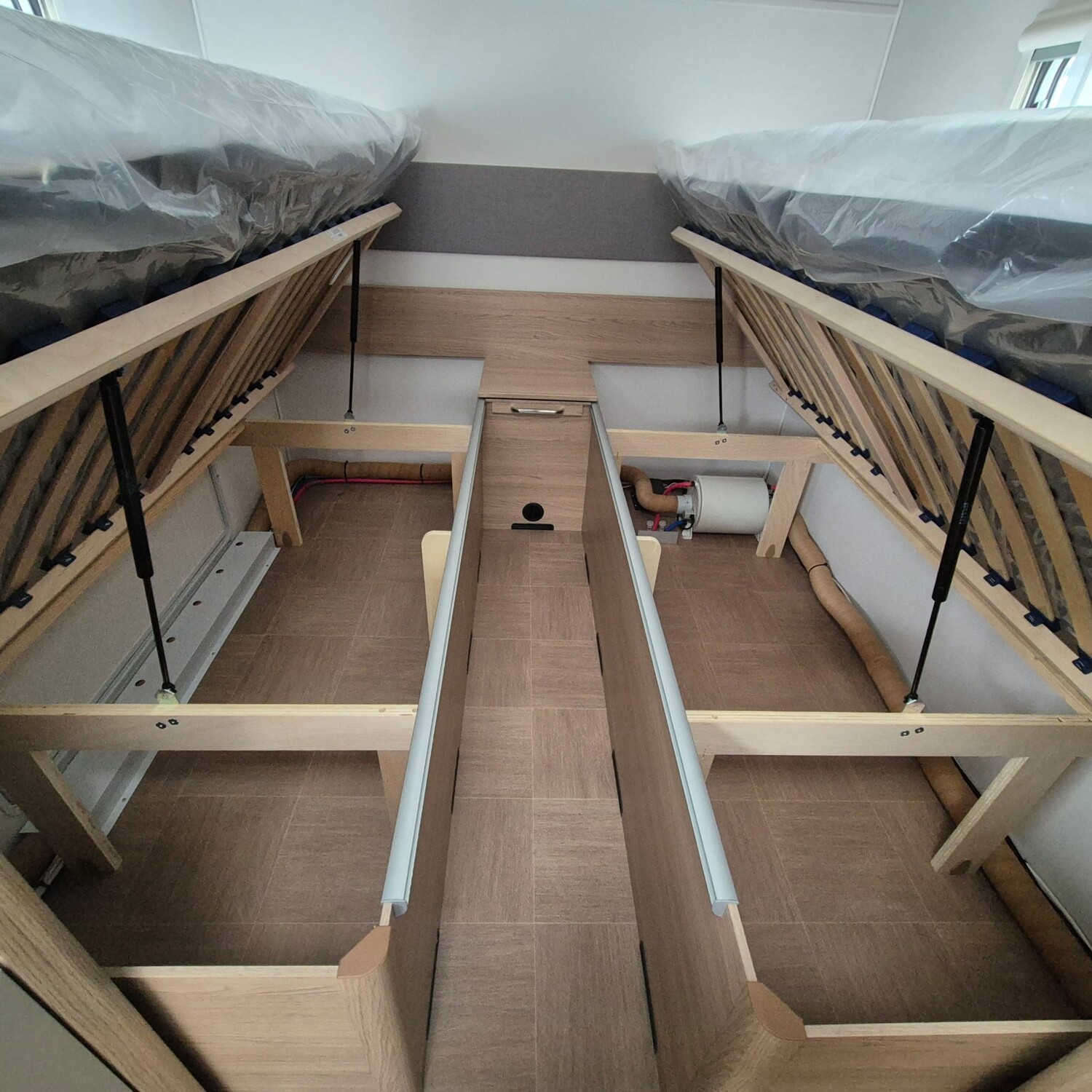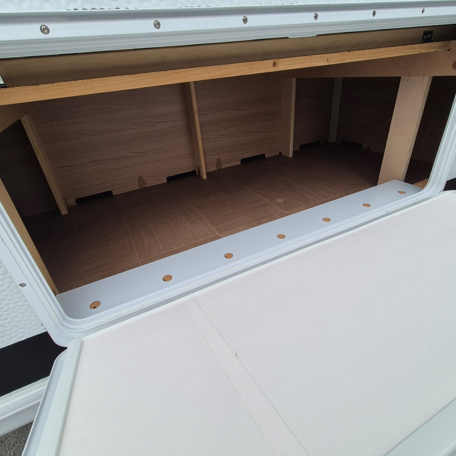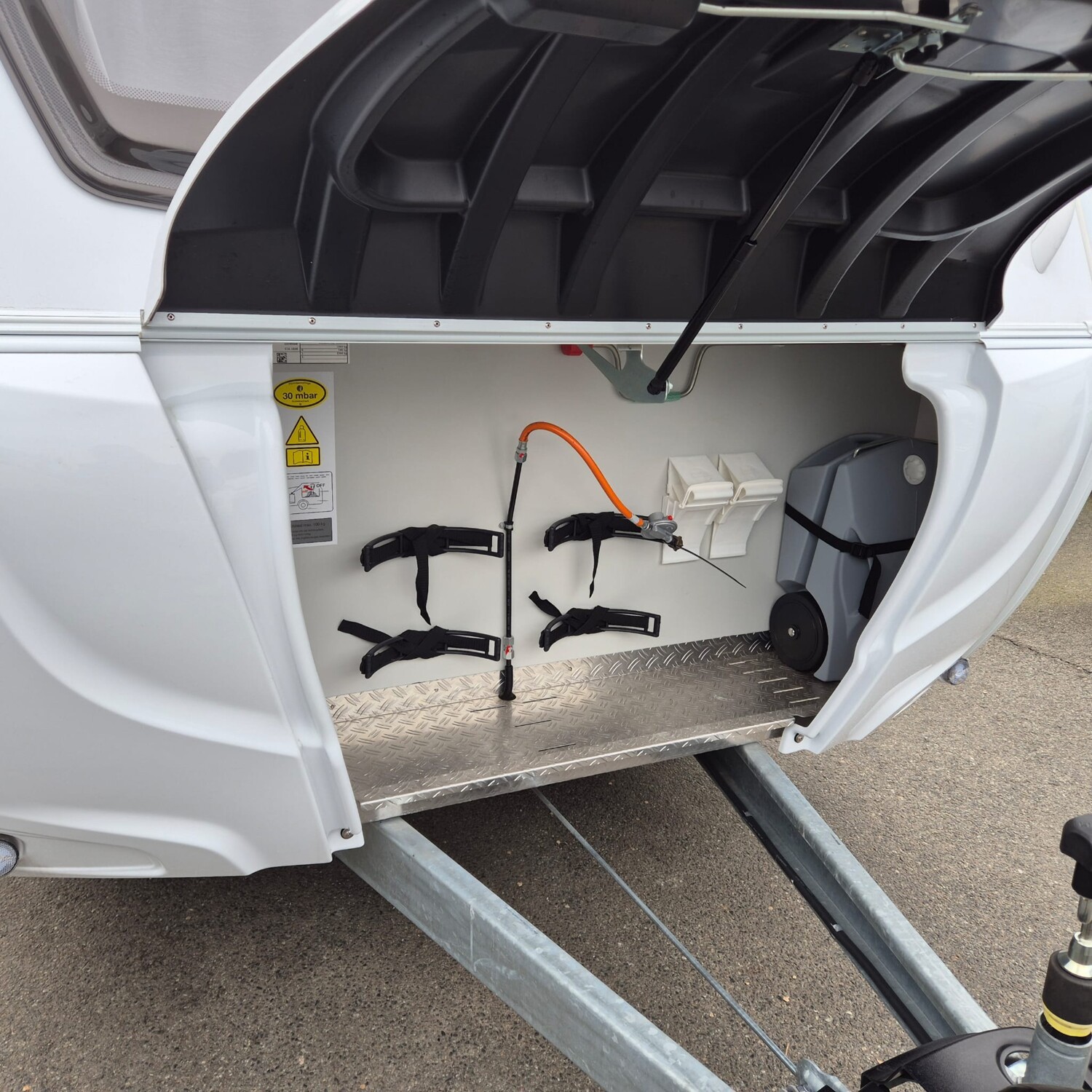 - Sassino Paket (Abwassertank 25 l rollbar, Reserveradhalterung im Flaschenkasten, Frischwassertank 44 l, Fliegenschutztür, Therme für Warmwasserversorgung, Umluftanlage 230 V, Dachfenster 700 x 500 mm, Vorbereitung TV-Platz, zusätzliche Beleuchtung (Stromschiene inkl. Spots), Dachverstärkung inkl. Vorbereitung für Klimaanlage, 2x USB-Steckdose für Stromschiene, Teller für Kurbelstützen, Stützrad mit Stützlastanzeige)