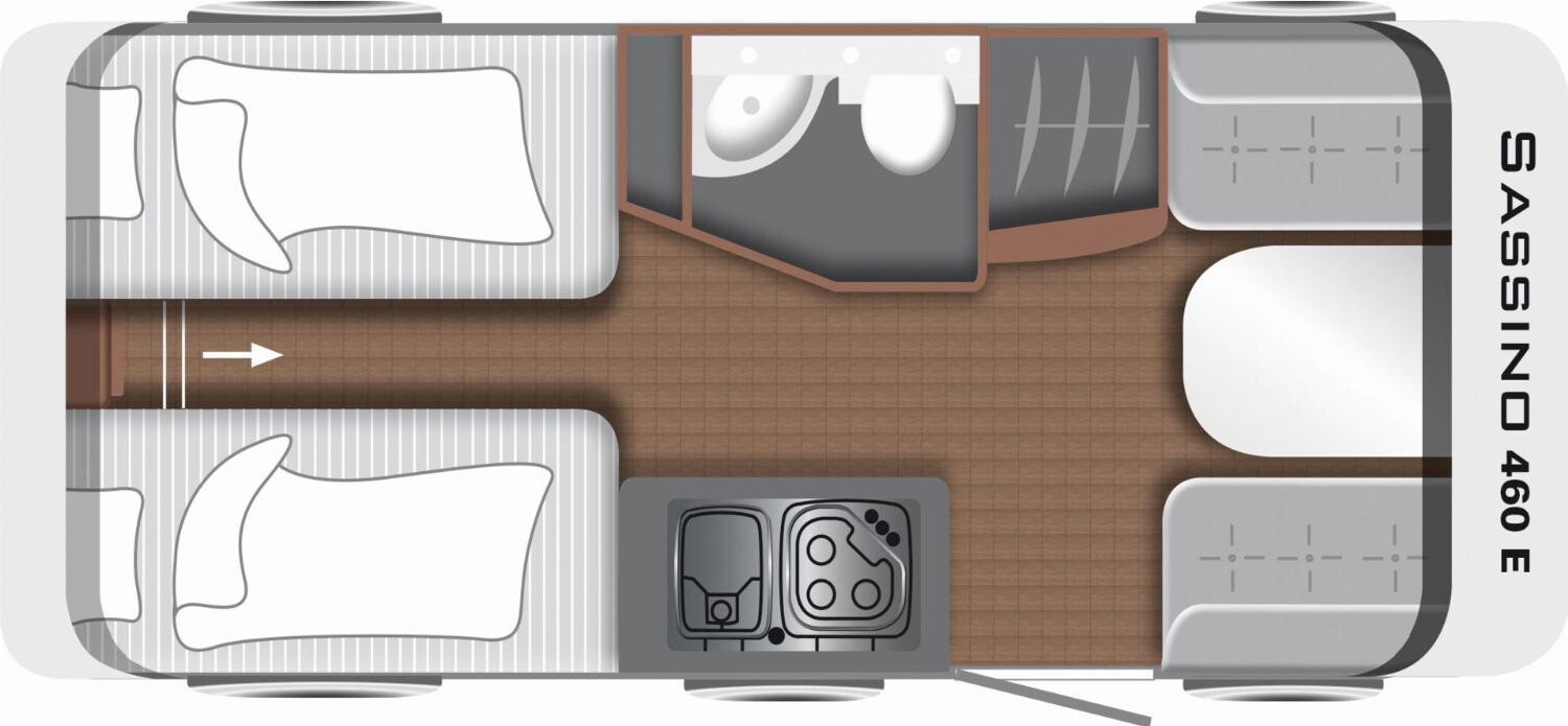 - Sassino Paket (Abwassertank 25 l rollbar, Reserveradhalterung im Flaschenkasten, Frischwassertank 44 l, Fliegenschutztür, Therme für Warmwasserversorgung, Umluftanlage 230 V, Dachfenster 700 x 500 mm, Vorbereitung TV-Platz, Zusätzliche Beleuchtung (Stromschiene inkl. Spots), Dachverstärkung inkl. Vorbereitung für Klimaanlage, 2x USB-Steckdose für Stromschiene, Tellerfüße für Kurbelstützen, Stützrad mit Stützlastanzeige)