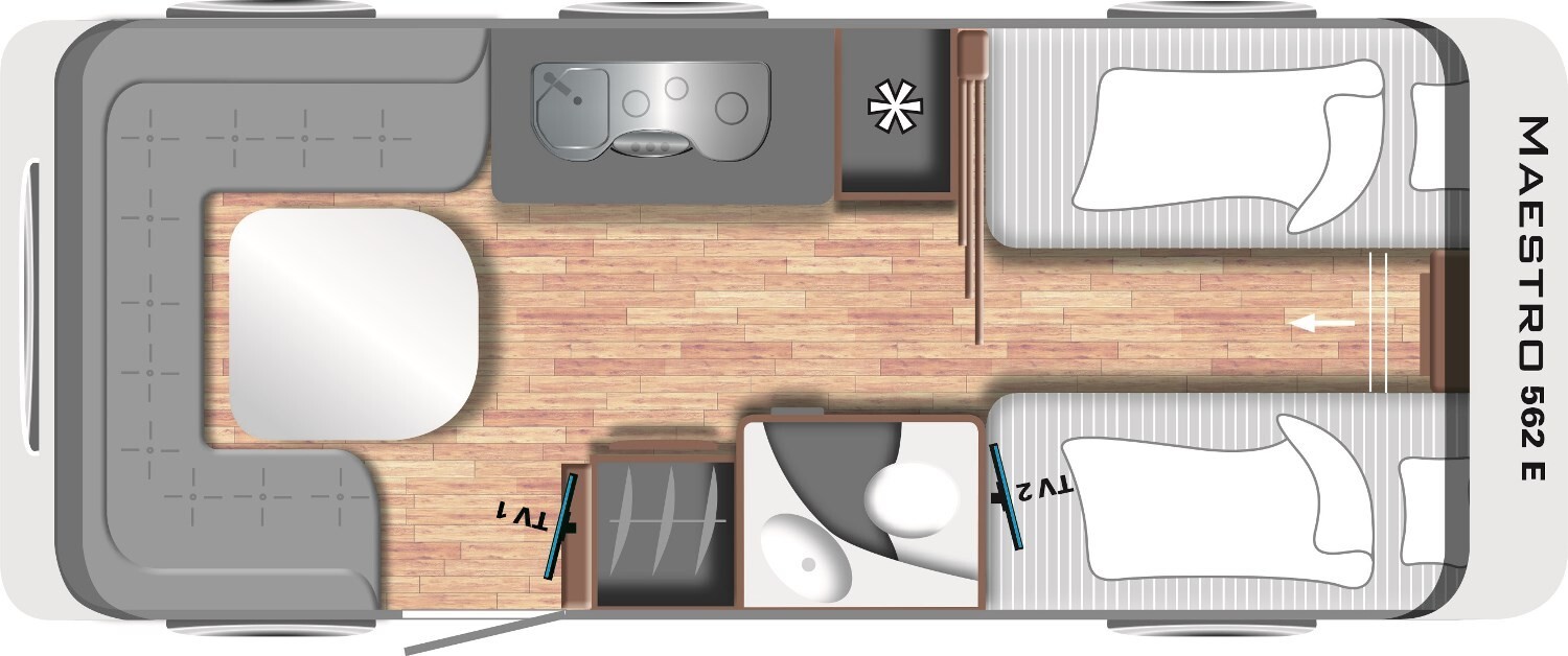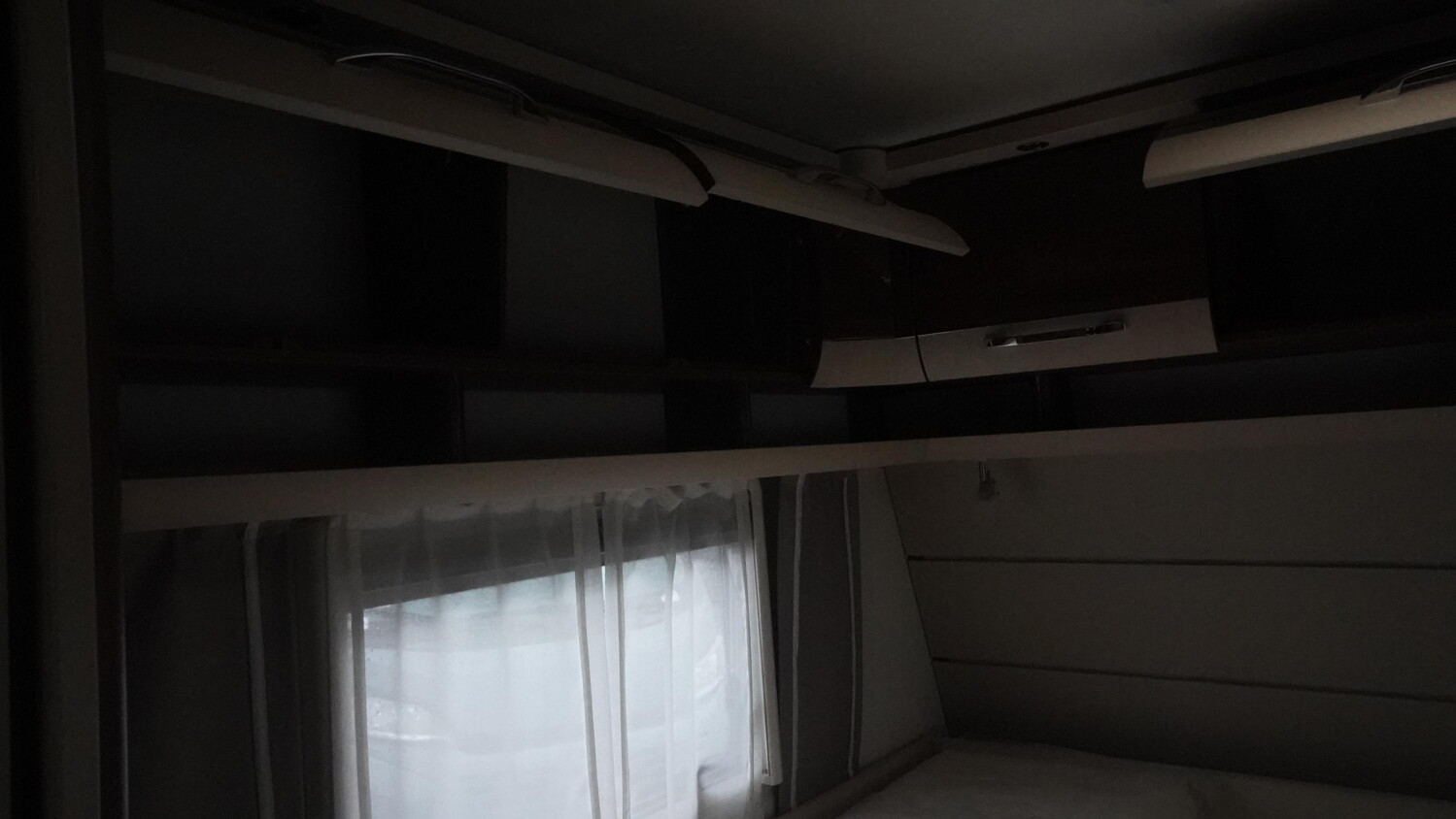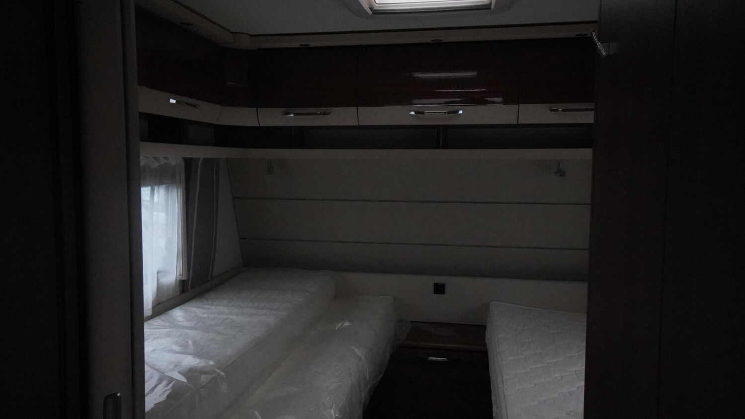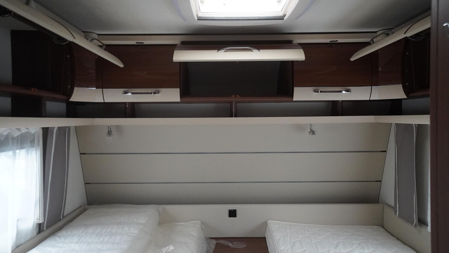 - Einzelbetten im Bug mit umliegenden Dachstauschränken inkl. Bettverbreiterung