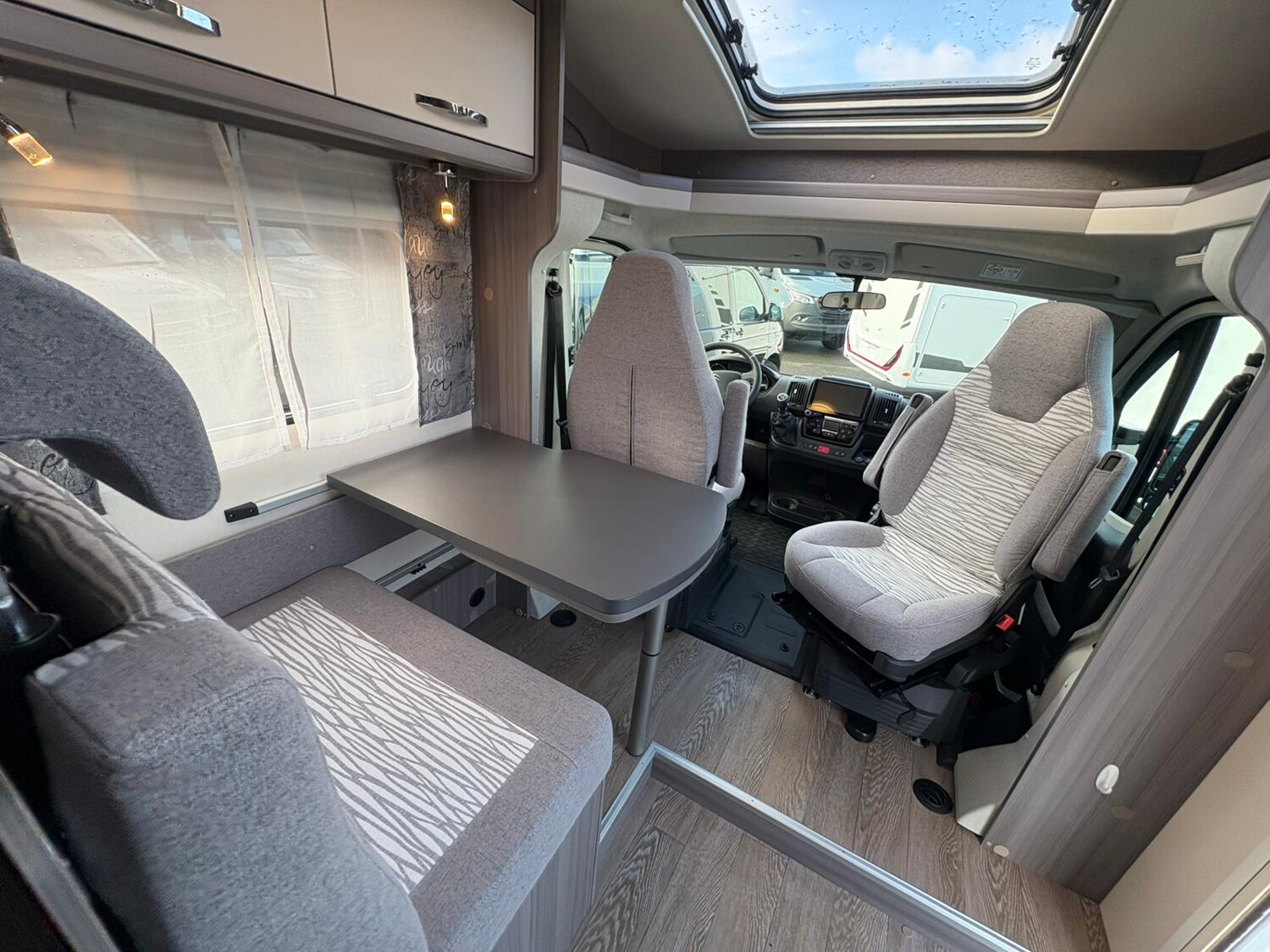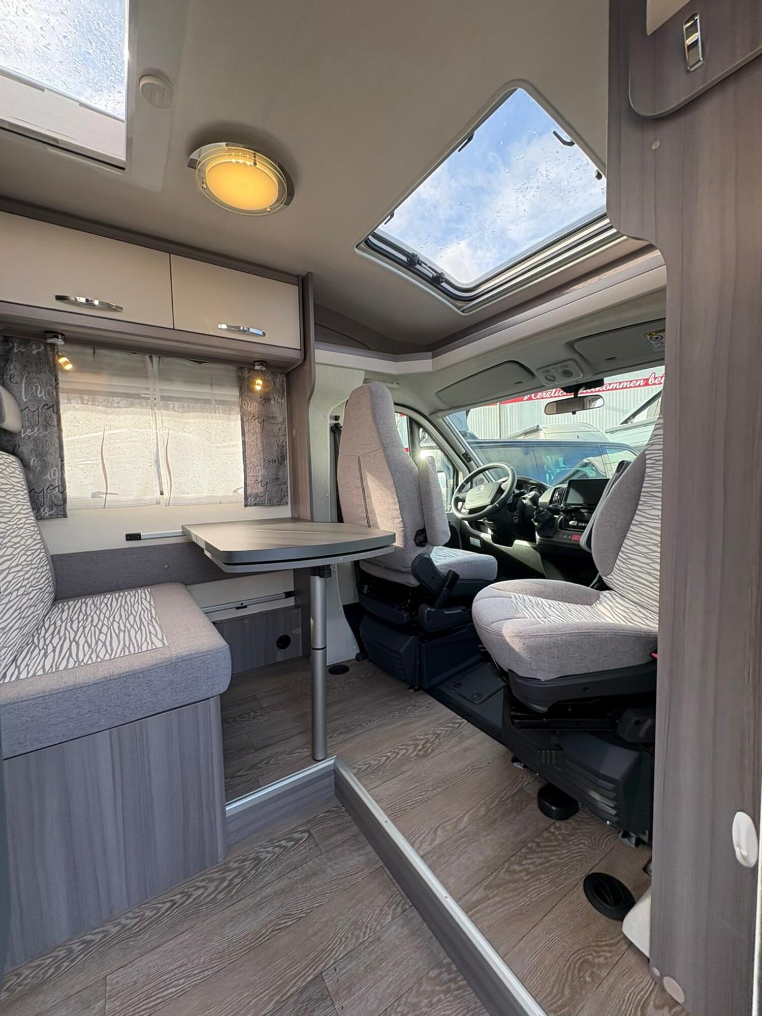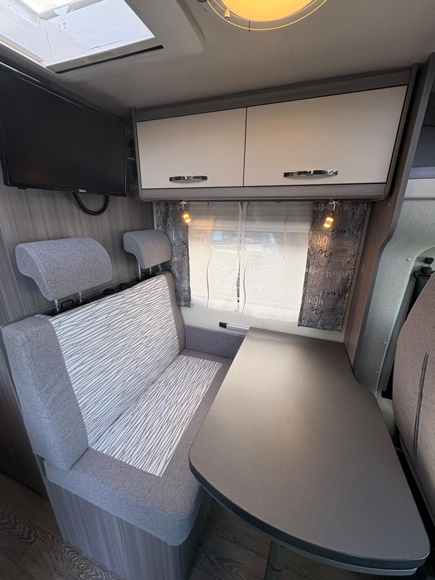 - Seitensitzgruppe mit drehbarer Tischerweiterung, Leselampen, Zusatzpolster für eine weitere Schlafmöglichkeit