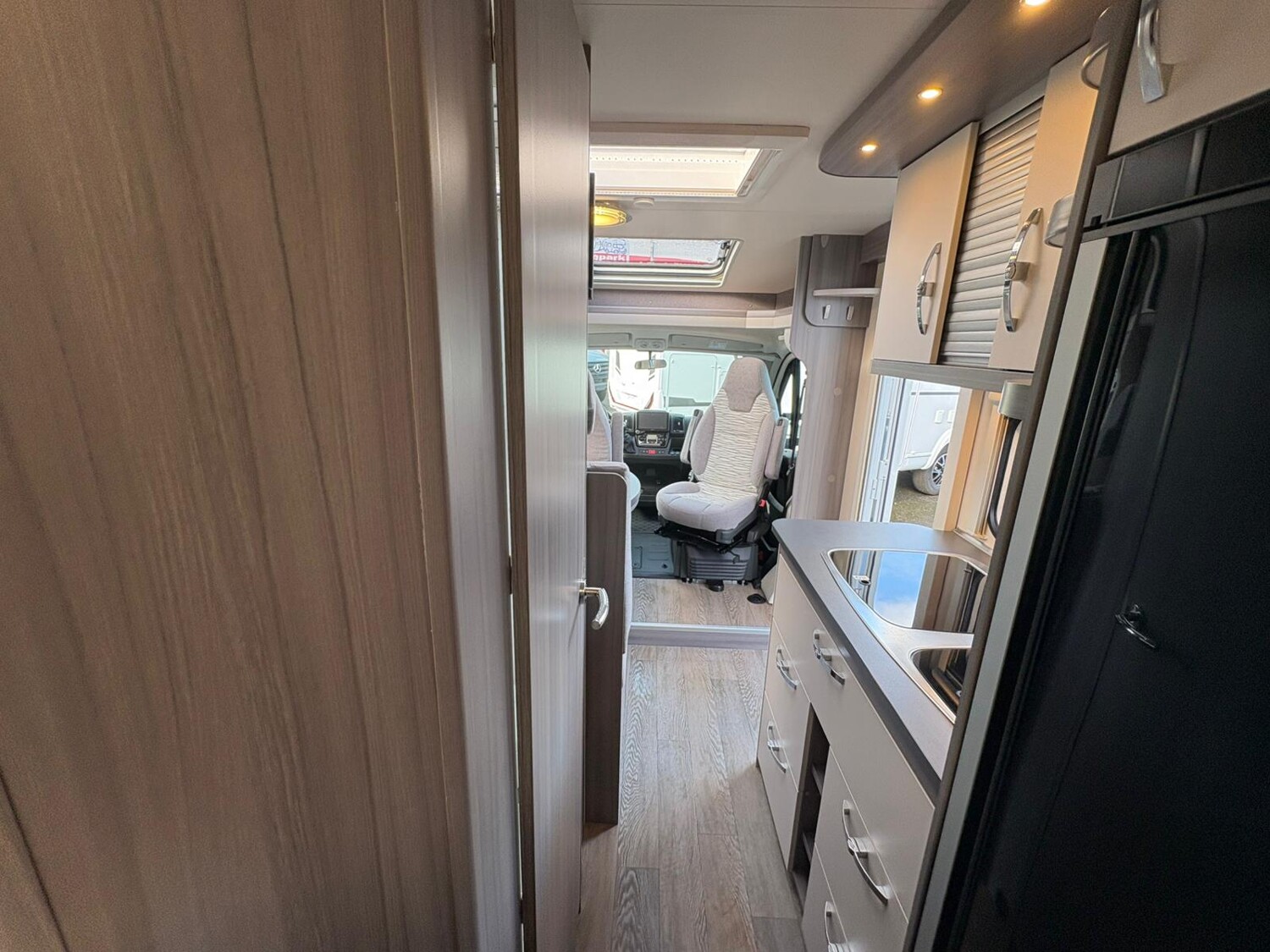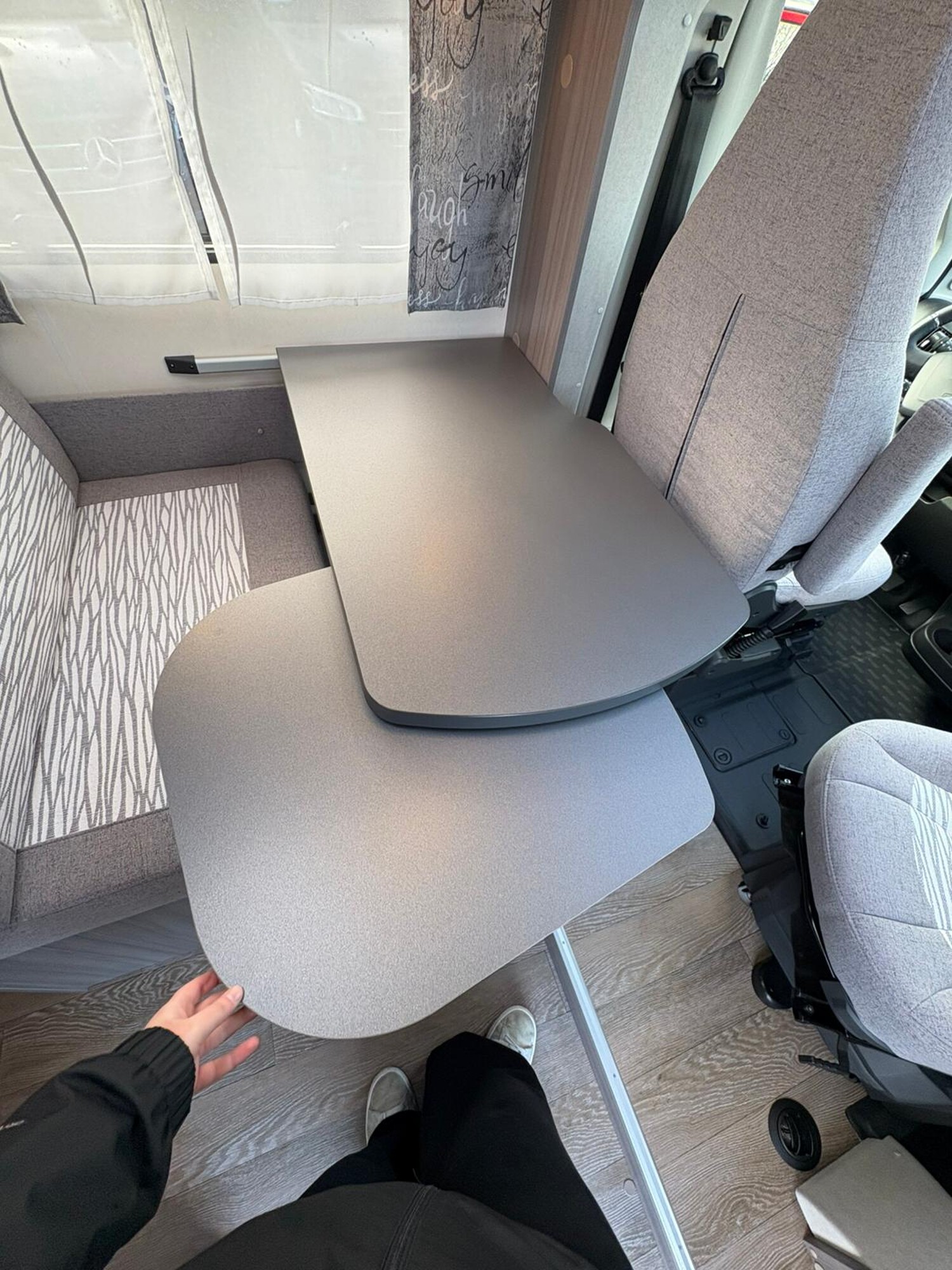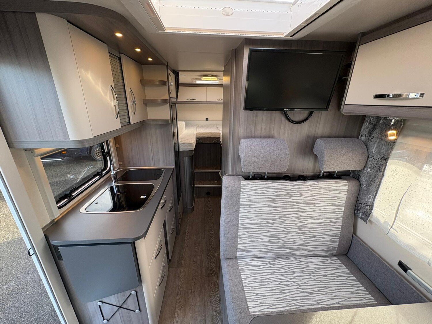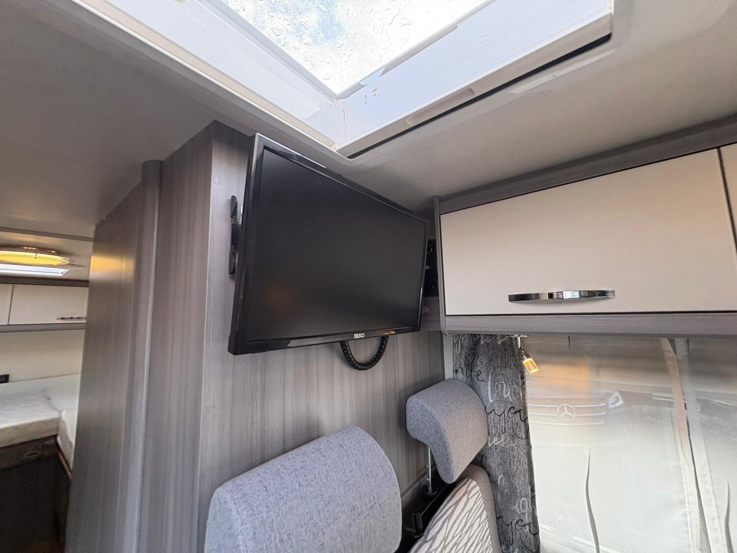 - Seitensitzgruppe mit drehbarer Tischerweiterung, Leselampen, Zusatzpolster für eine weitere Schlafmöglichkeit