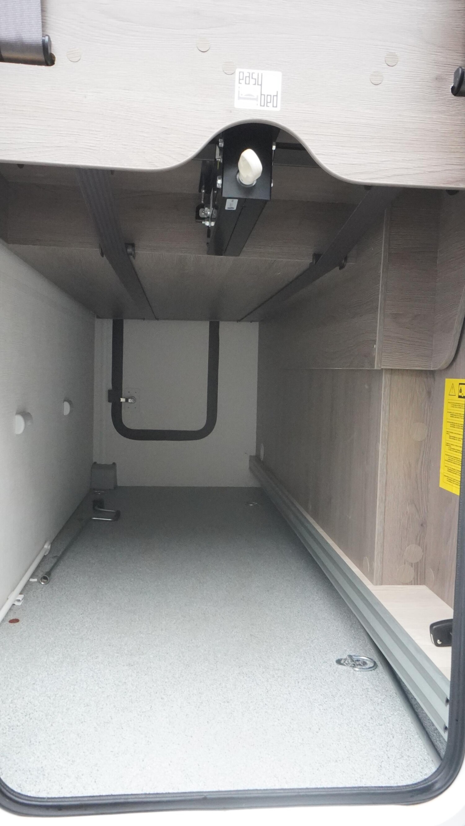 - Etagenbetten im Heck mit Staufläche darunter, Kleiderschrank neben dem Bett