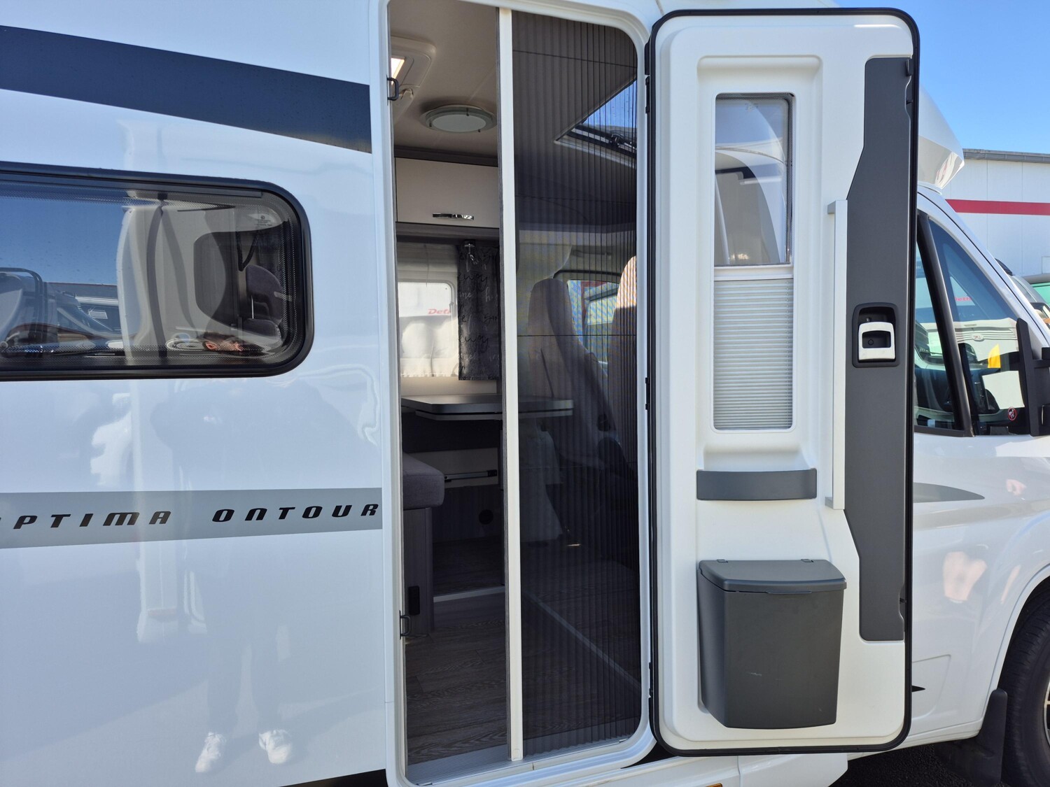 - Aufbautür inkl. einem Fliegengitter, einem Fenster inkl. Plissee und einem Abfalleimer