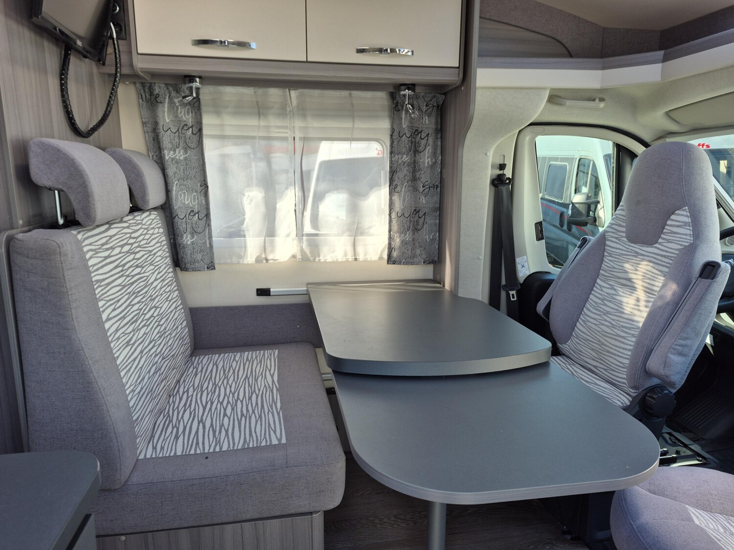 - Seitensitzgruppe mit einem Tisch inkl. Tischplattenerweiterung, Leselampen und Stauschränken